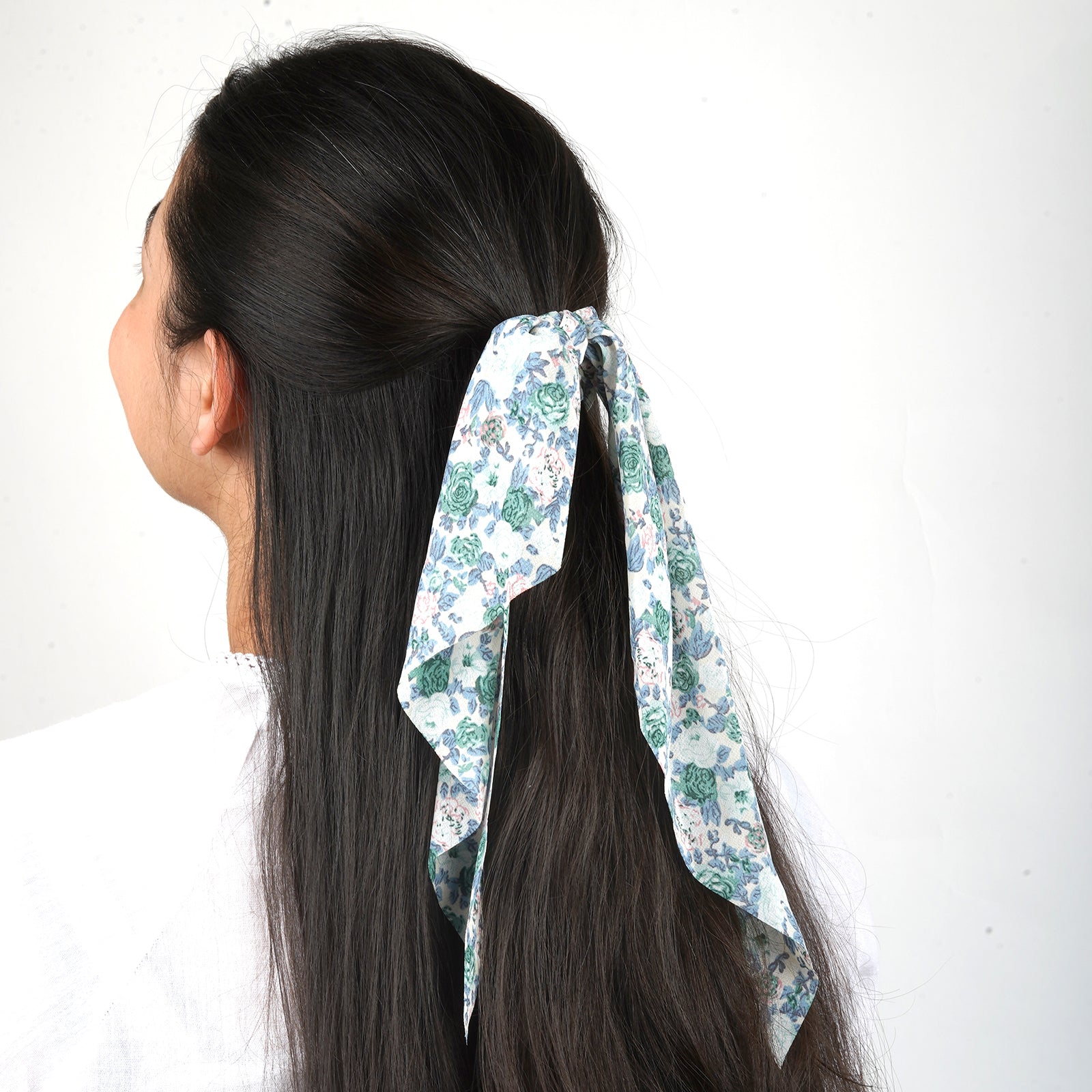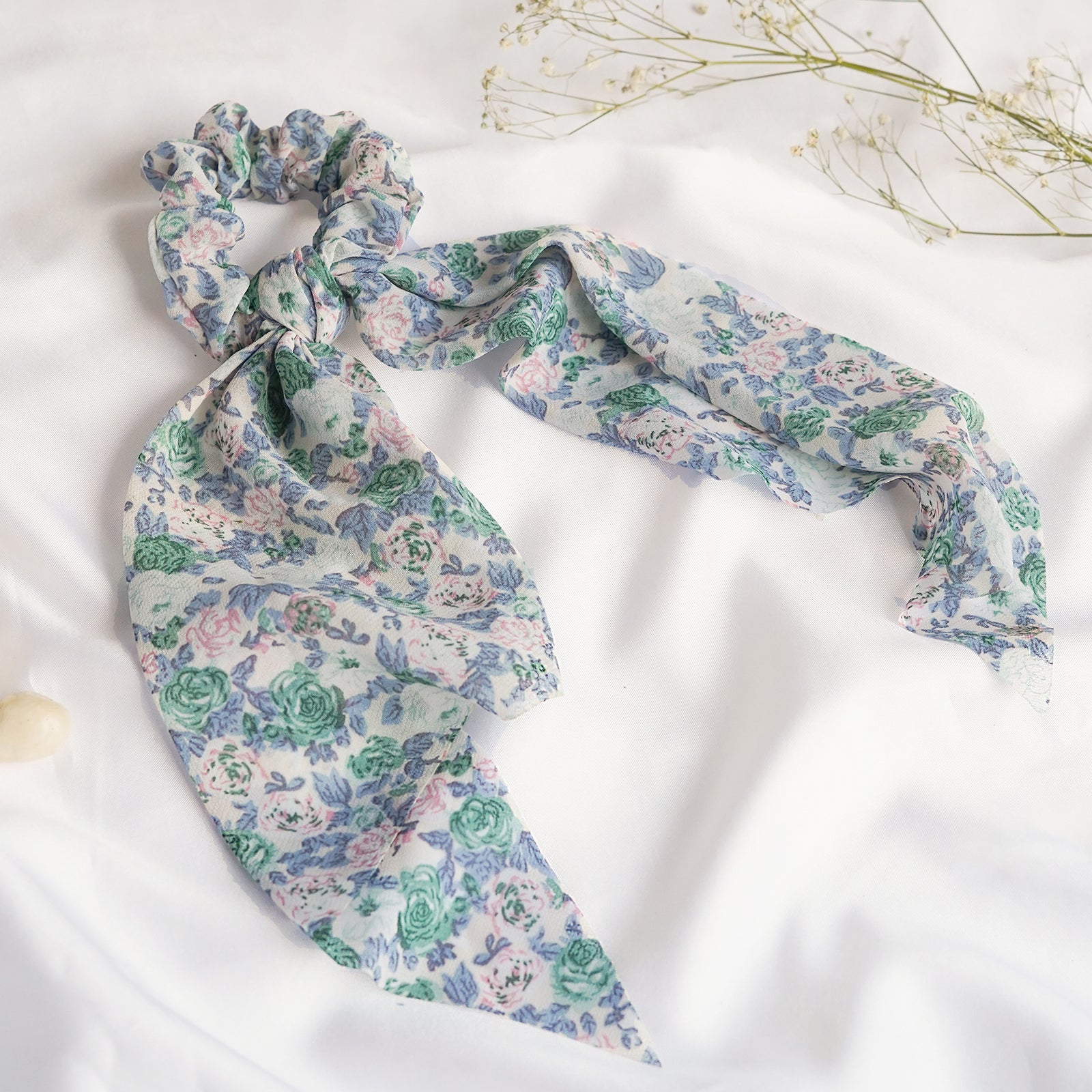 Audra Blue Floral Scarf Scrunchie