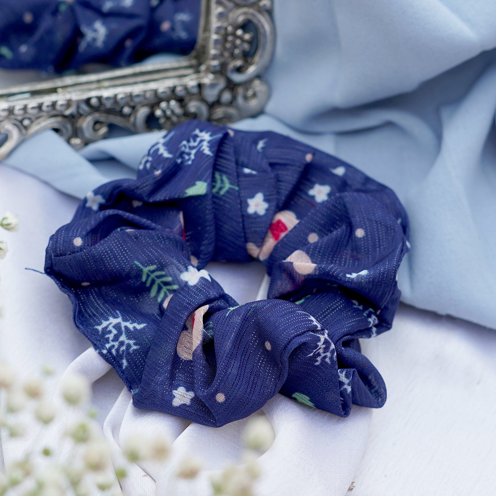 �Íí_Like basically every other gigantic trend from the '90s, scrunchies have come back in full force. Our Beso Chiffon Blue Scrunchie with pretty summer florals provides you best chance to shine even on your normal days. We love the idea of stacking them on wrist with watch or bracelets.