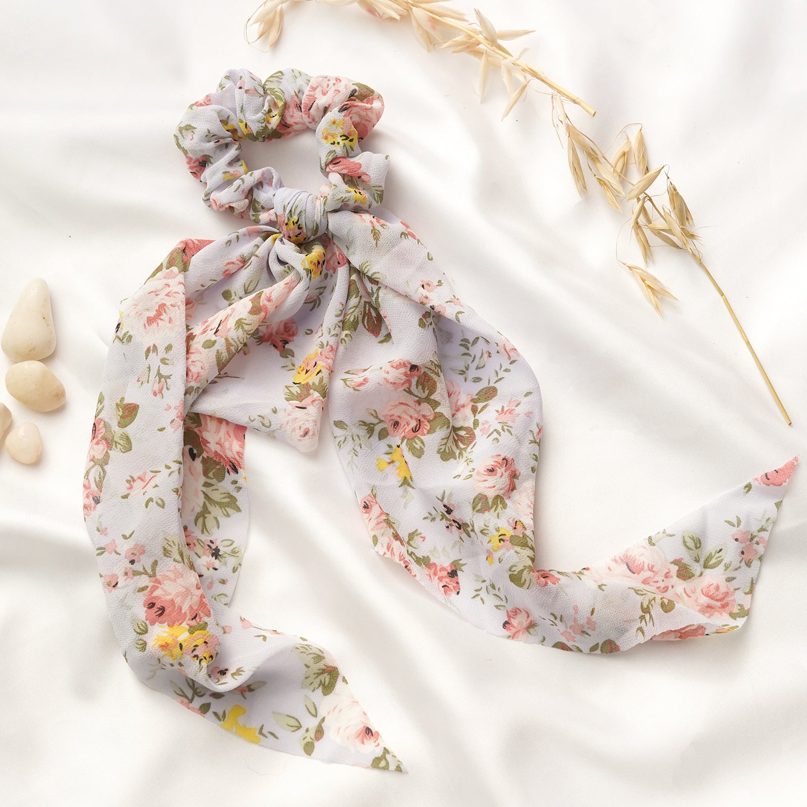 Wear your hair up with this classic scarf style hair scrunchie. Perfect for putting your hair up in a ponytail, around your wrist, and more. Don it with quirky casual for a fresh and fun look.