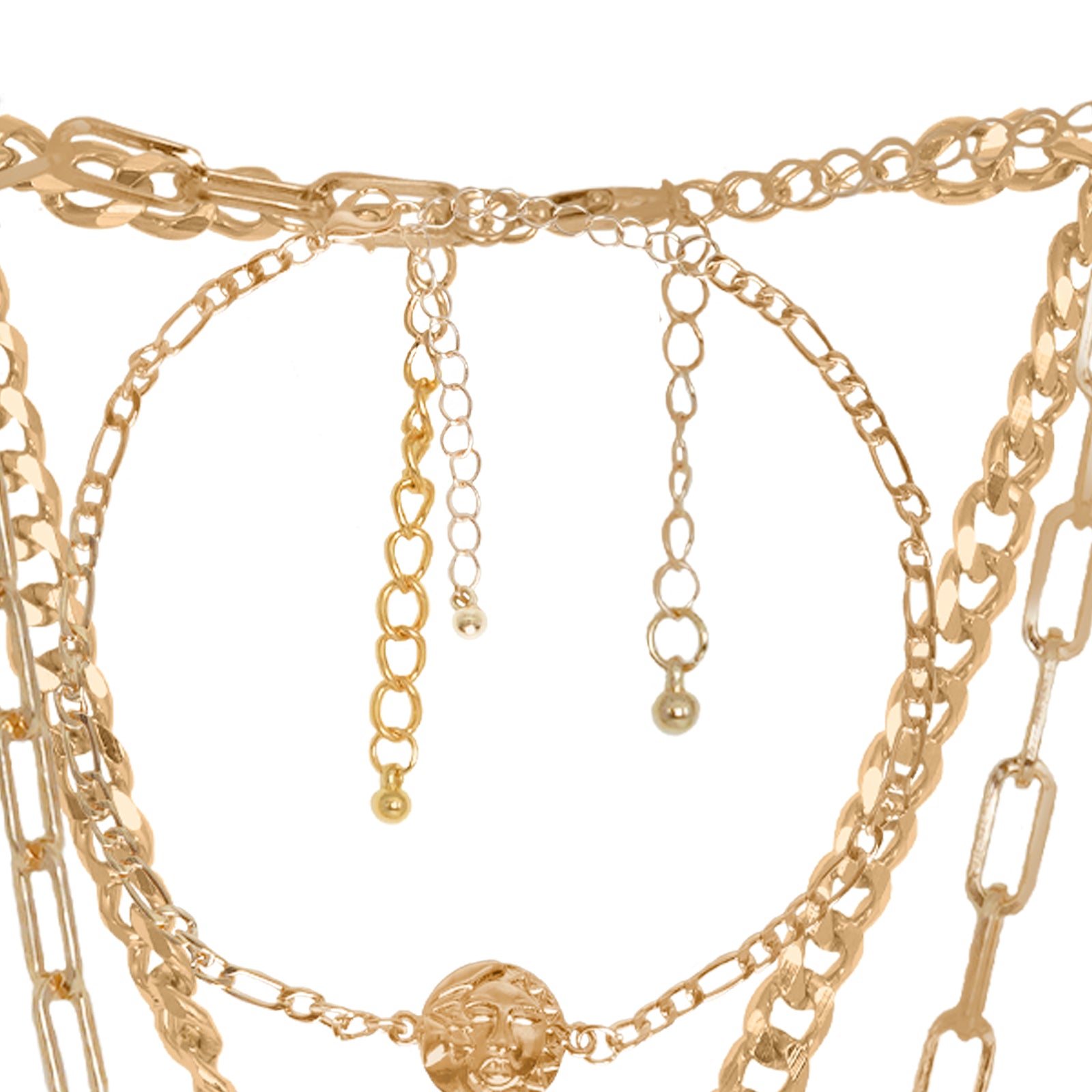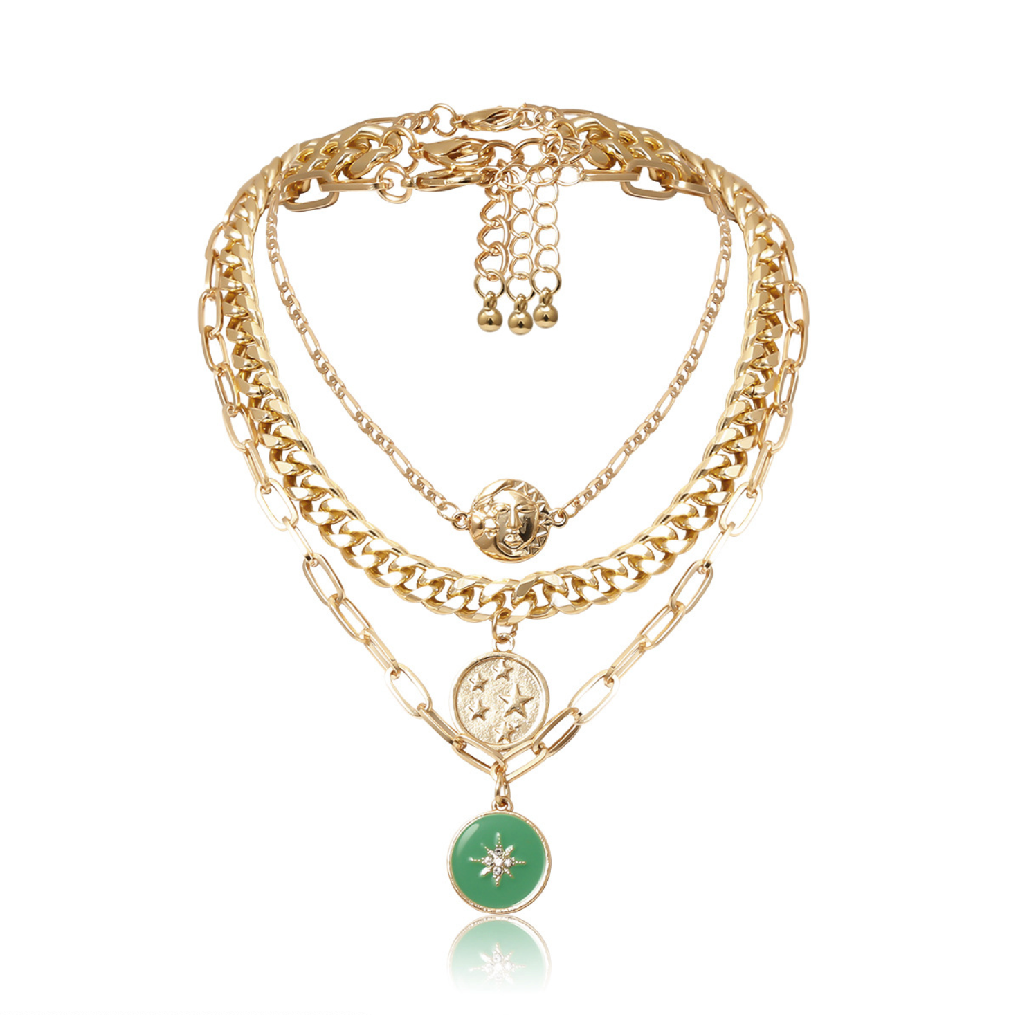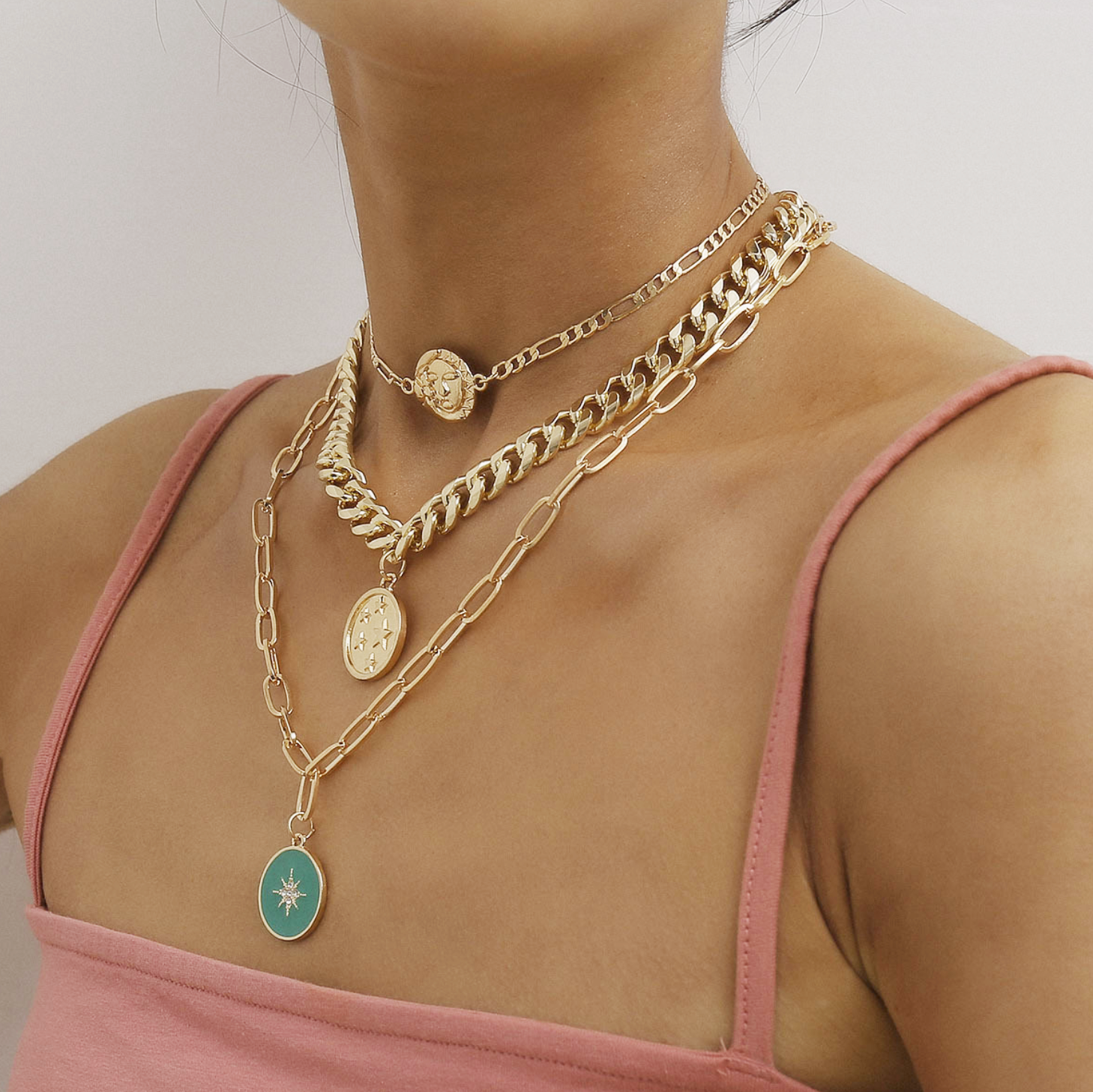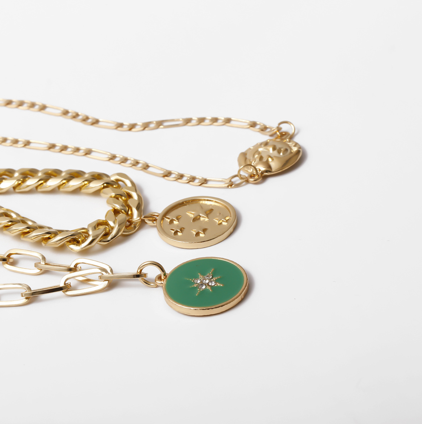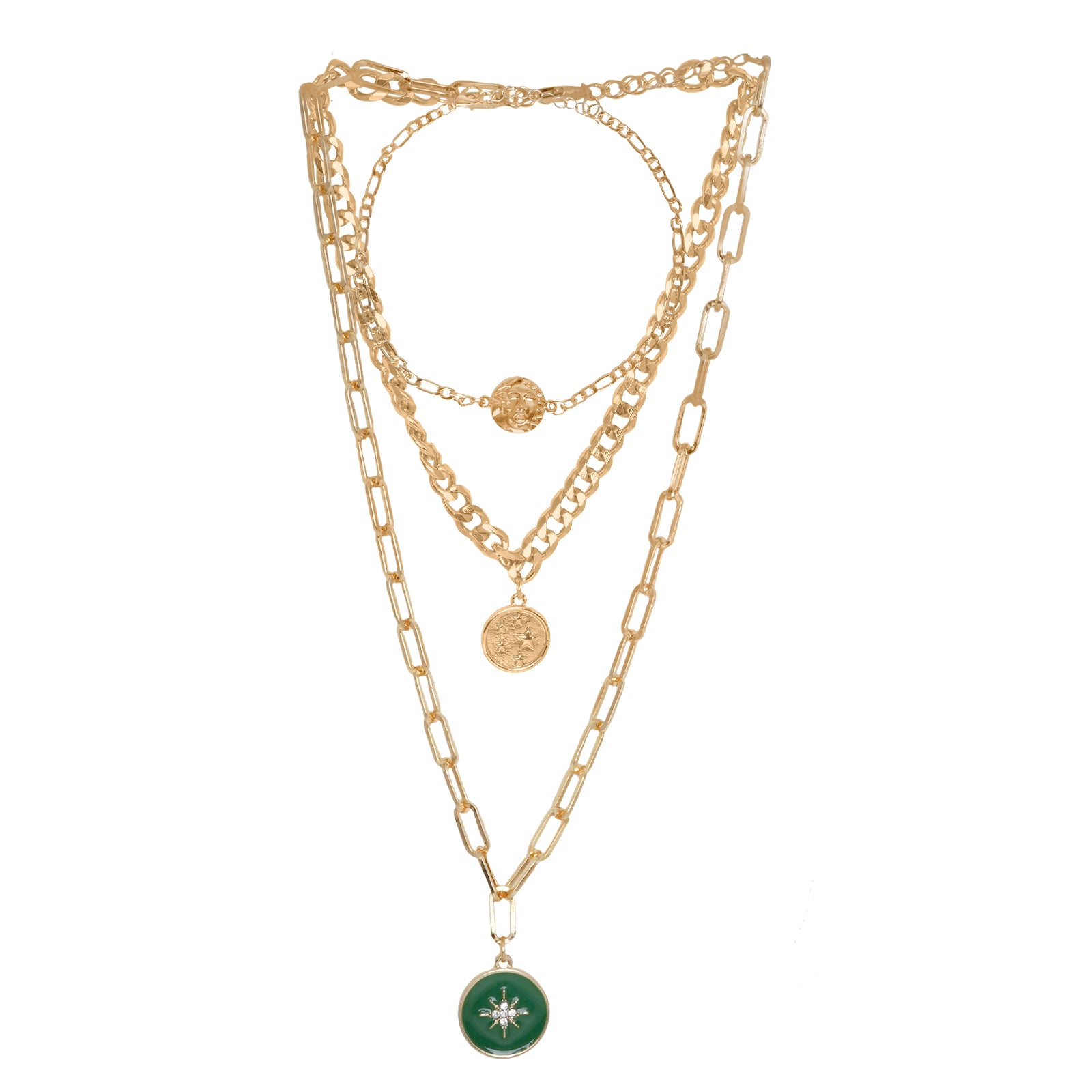 | Suit up for the season with the Teal Charm Link Gold Layered Necklace. This layered necklace is a stunner that features a gilded palette and each layer is different from the other. Ideally worn alone or with a pair of the gold hoop, we just know you'll have this piece on heavy rotation. |