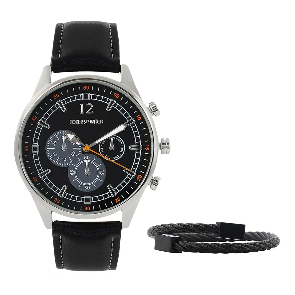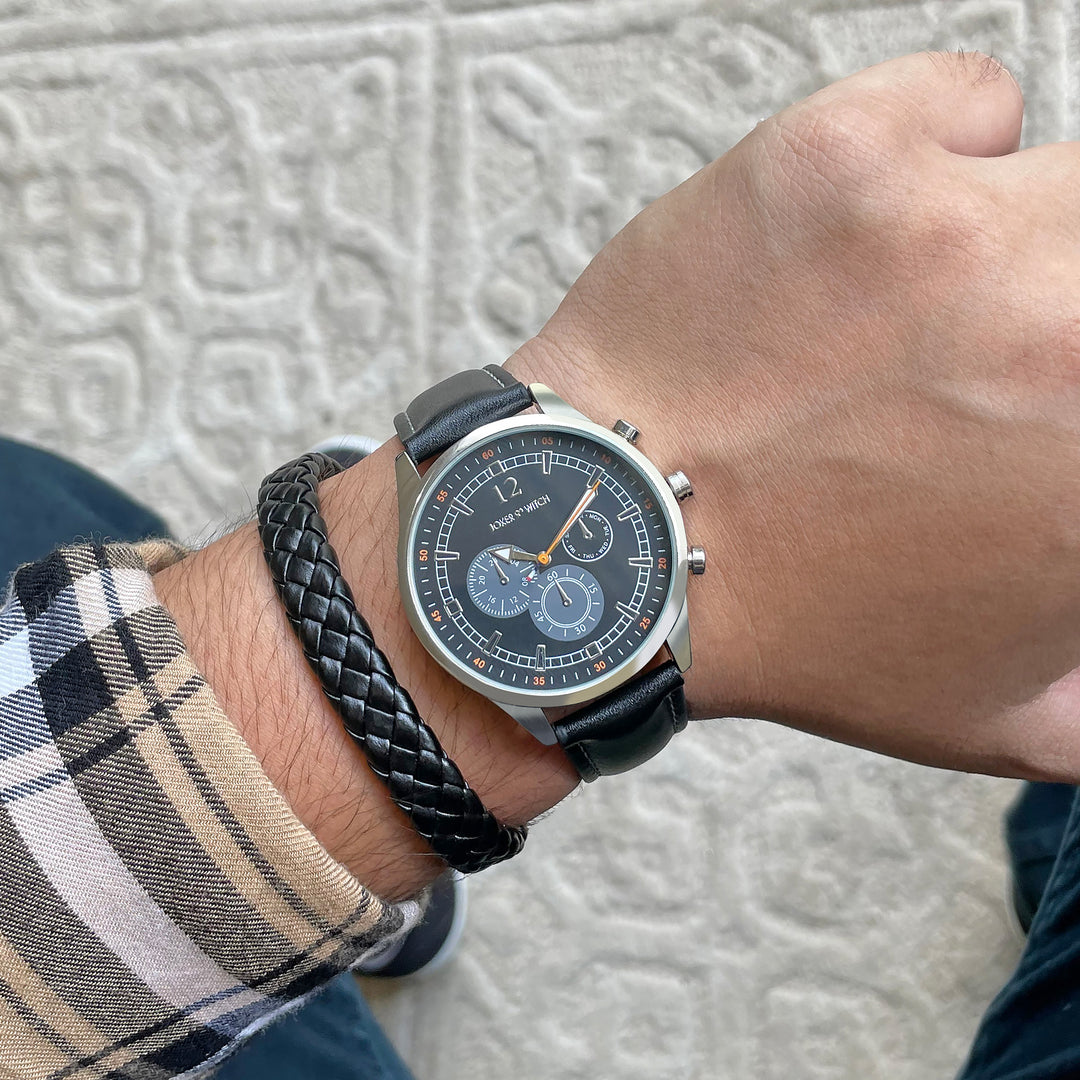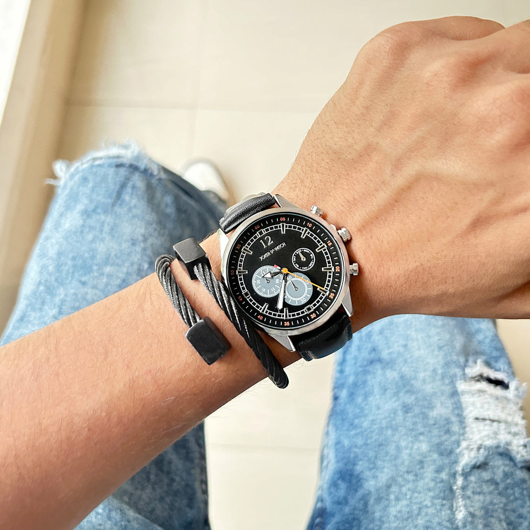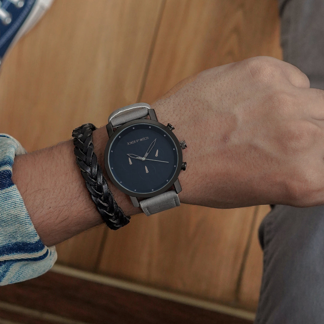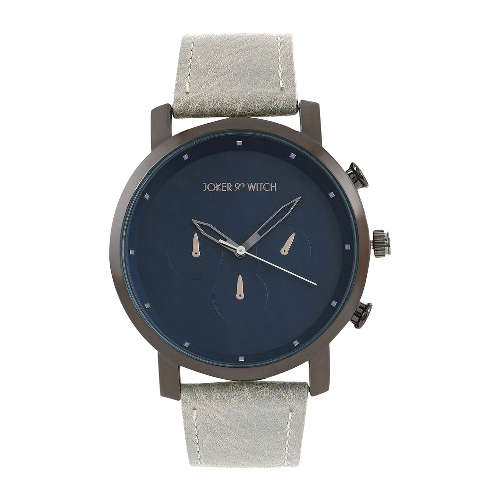 Beetle Black Large Dial Grey PU Strap Men's Watch