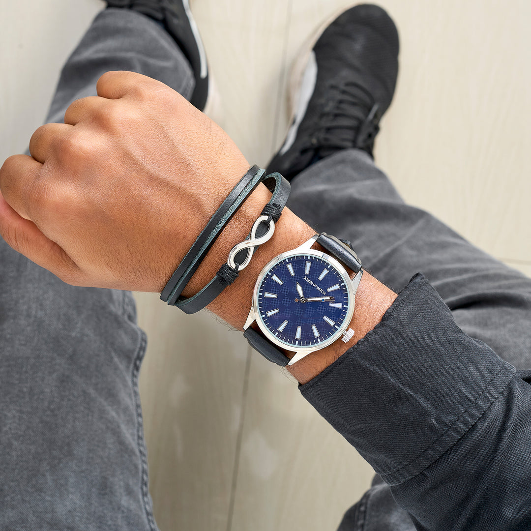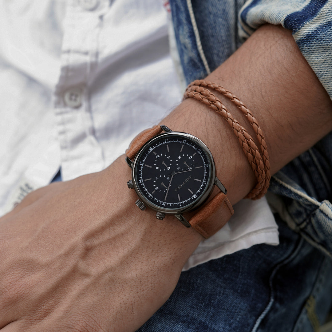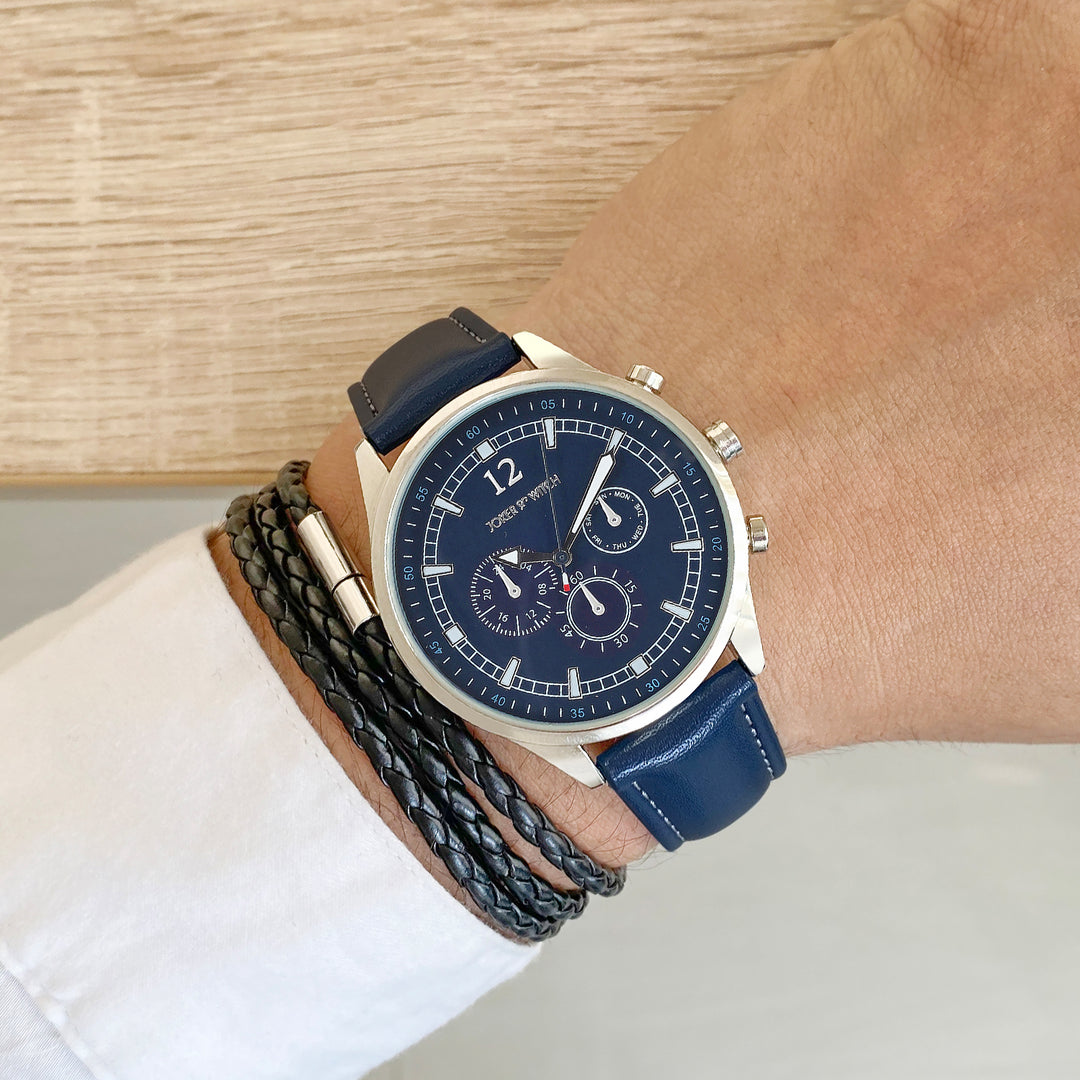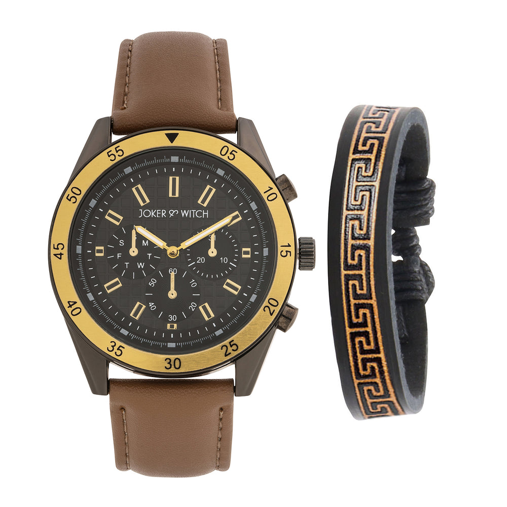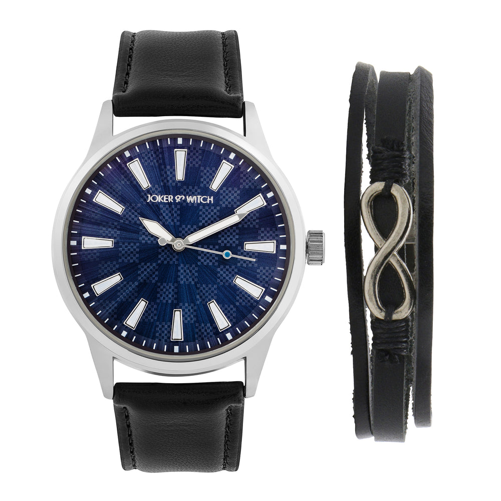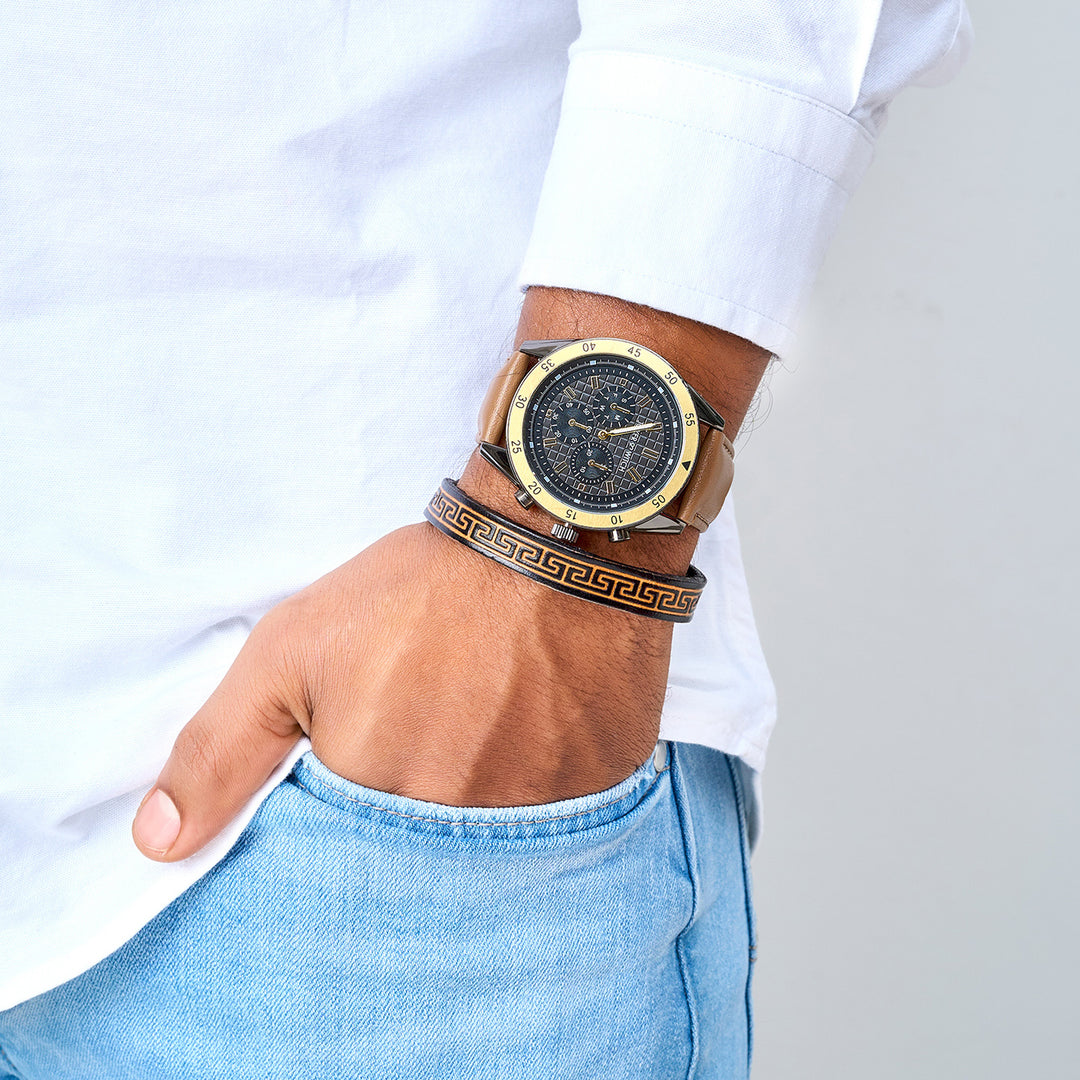 Beetle Black Large Dial Grey PU Strap Men's Watch