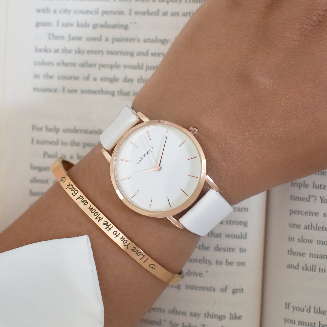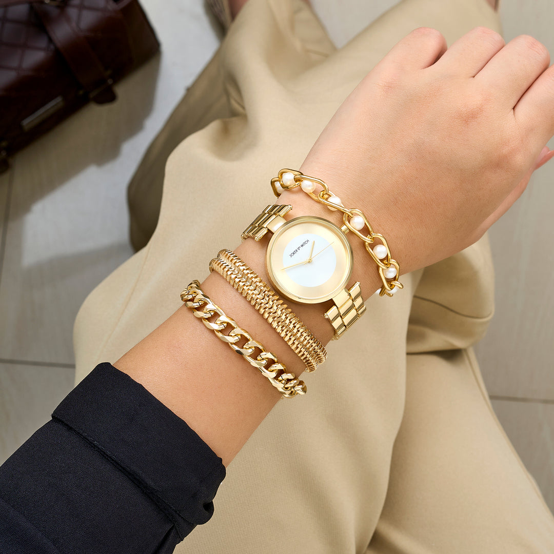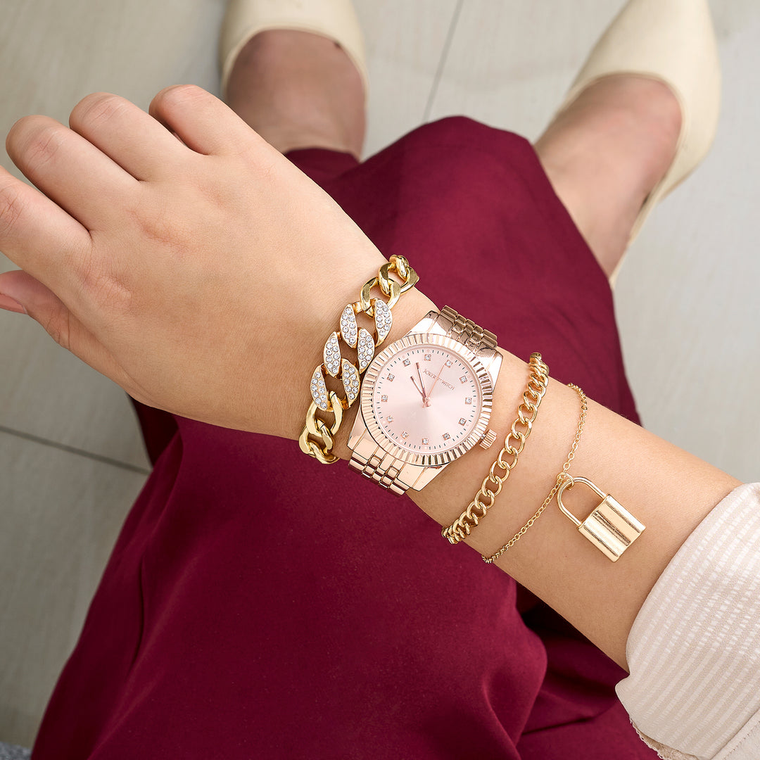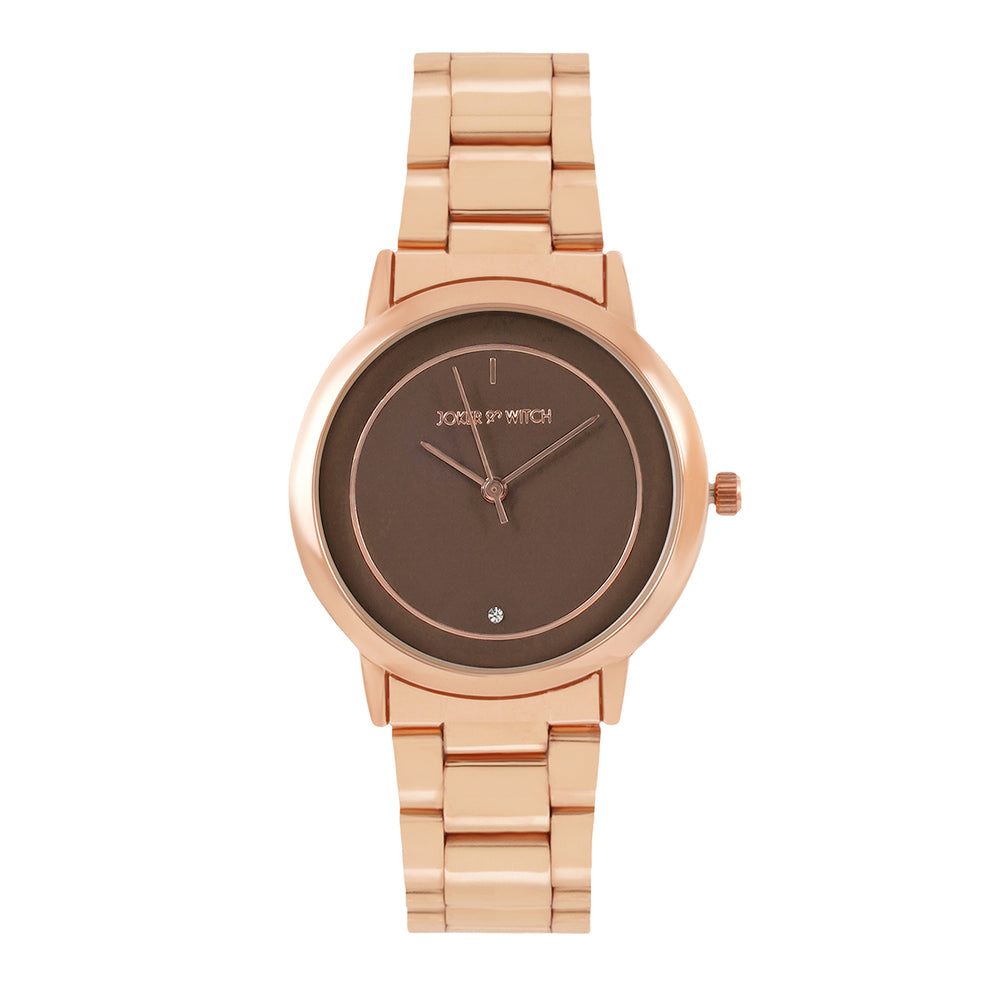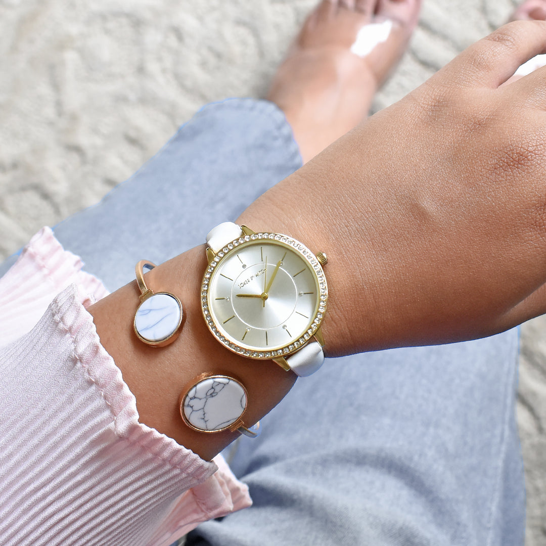 Suzanne White Large Rhinestone Dial Taupe Ceramic Linked Chain Strap Women's Watch