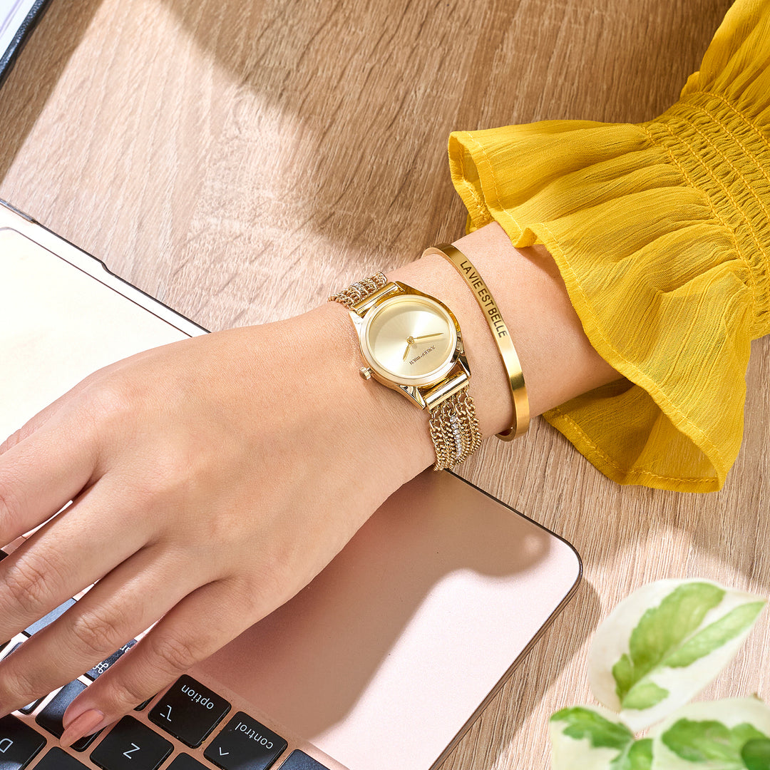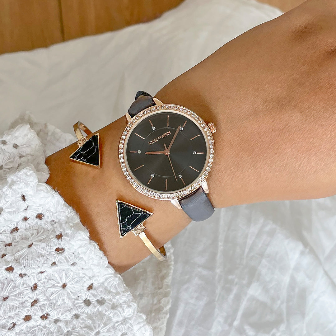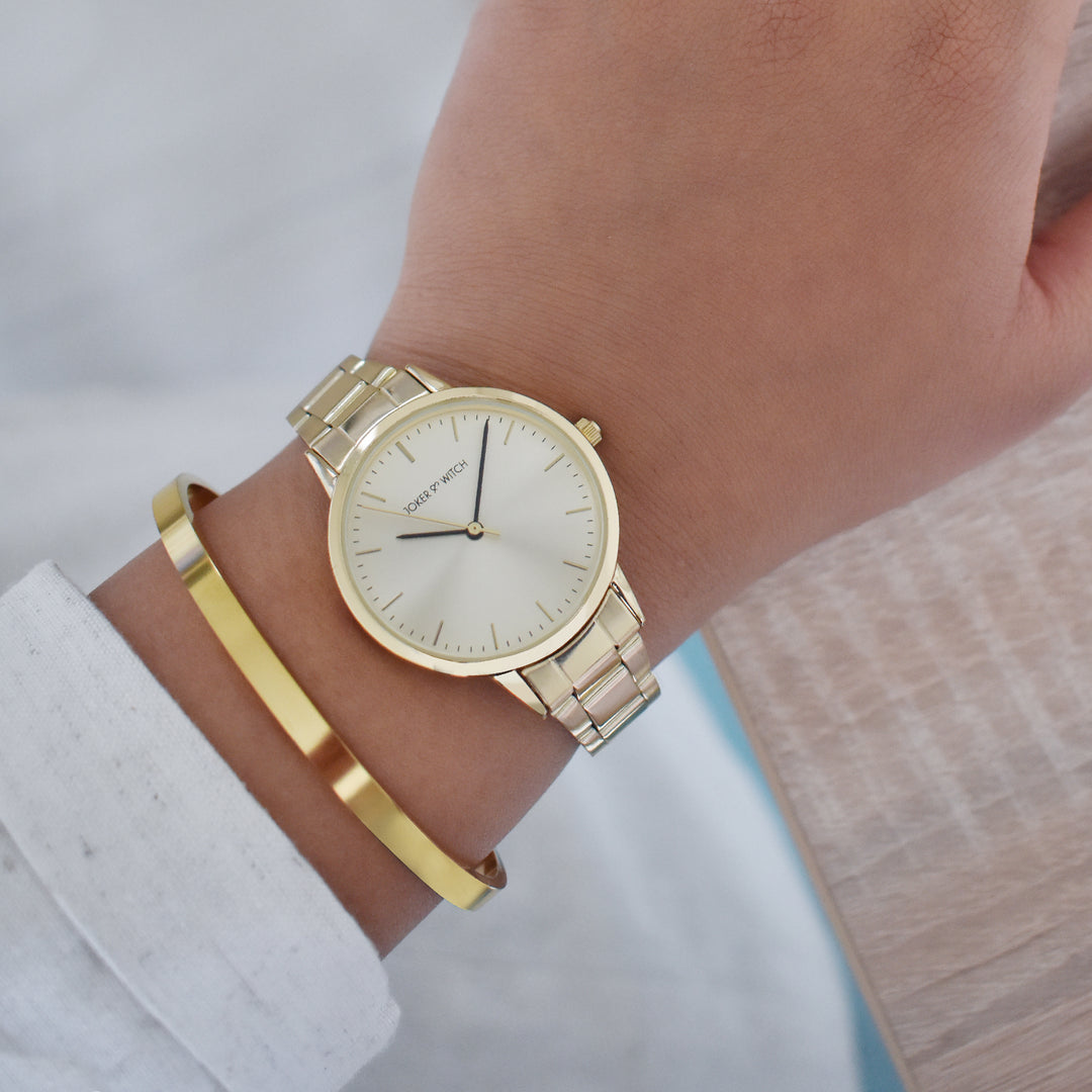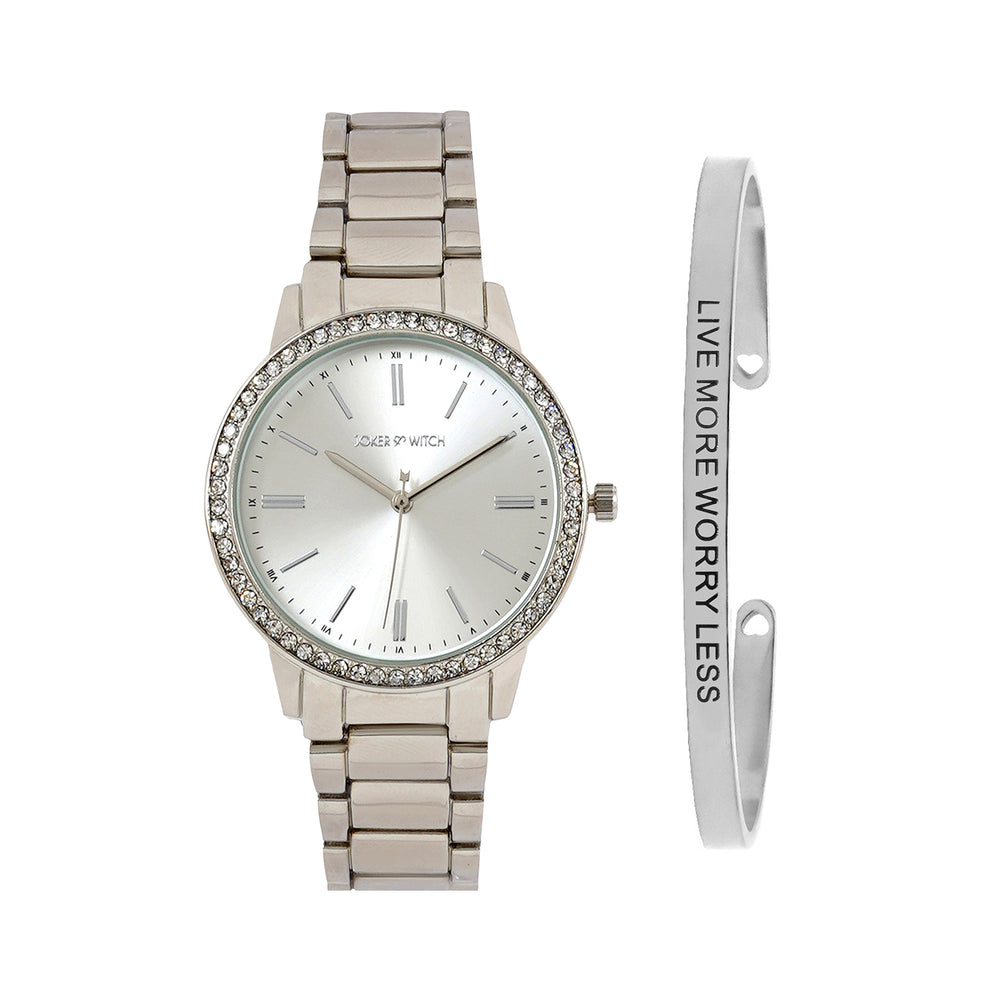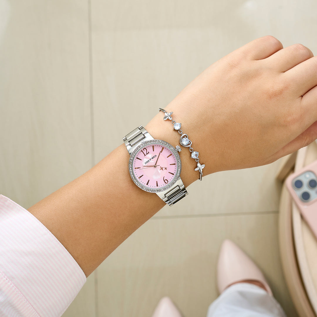Suzanne White Large Rhinestone Dial Taupe Ceramic Linked Chain Strap Women's Watch
