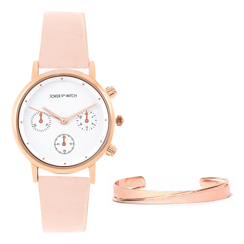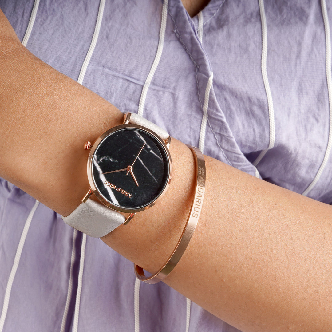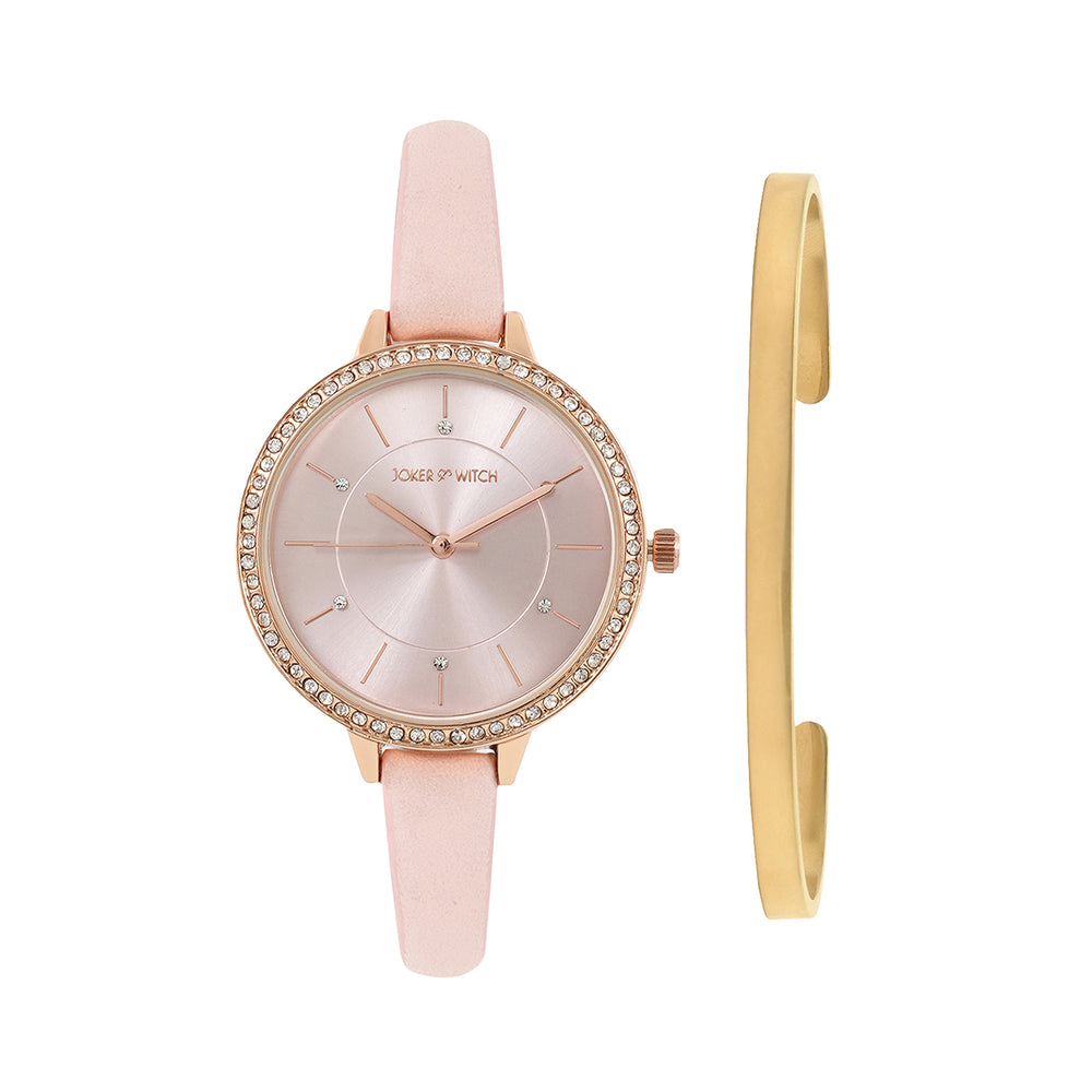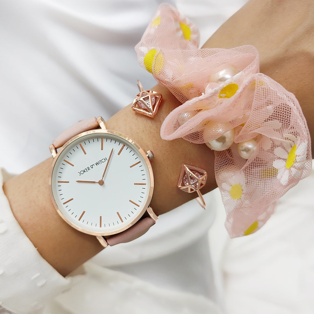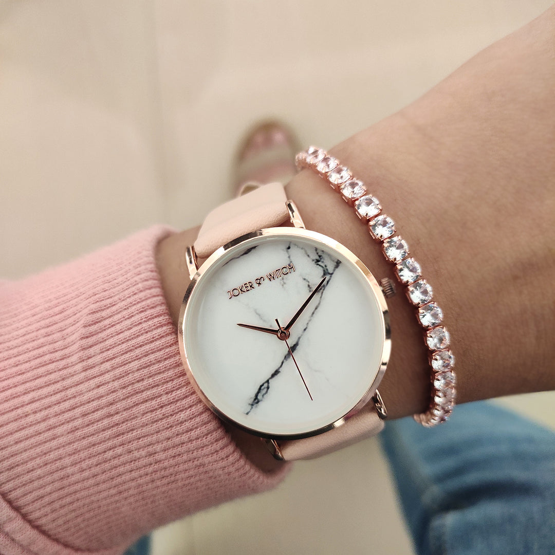 Suzanne White Large Rhinestone Dial Taupe Ceramic Linked Chain Strap Women's Watch
