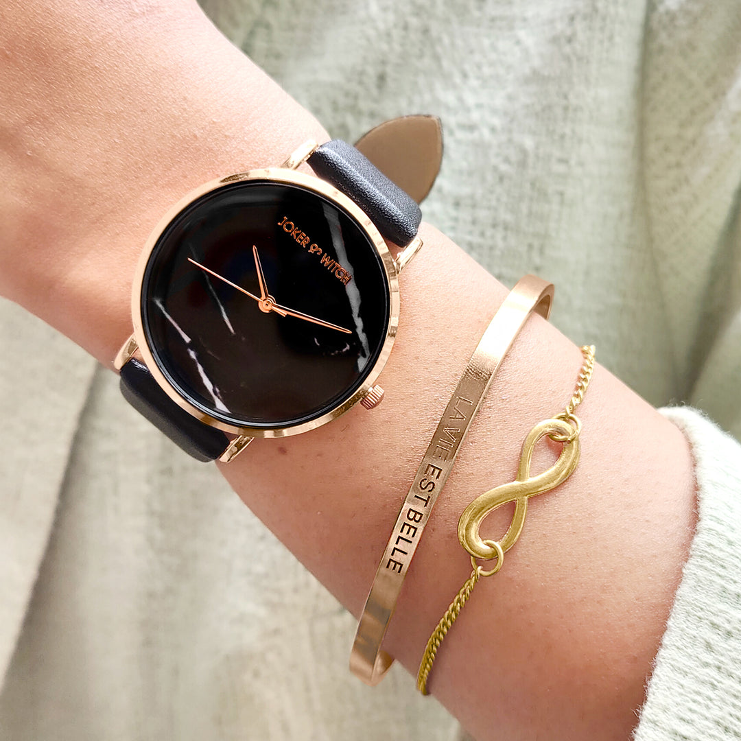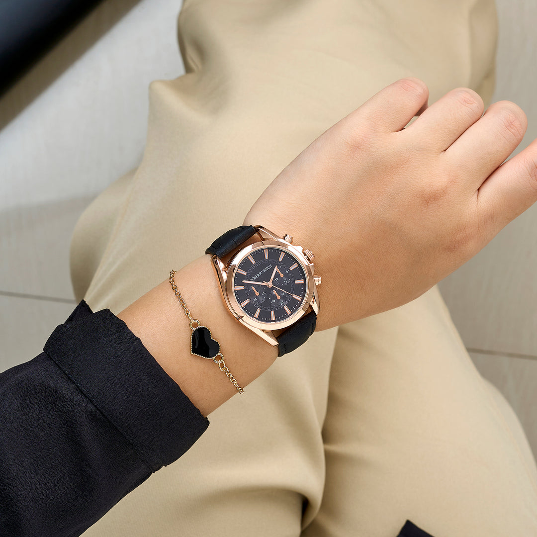 Shanghai Black Large Dial Linked Chain Strap Men's Watch