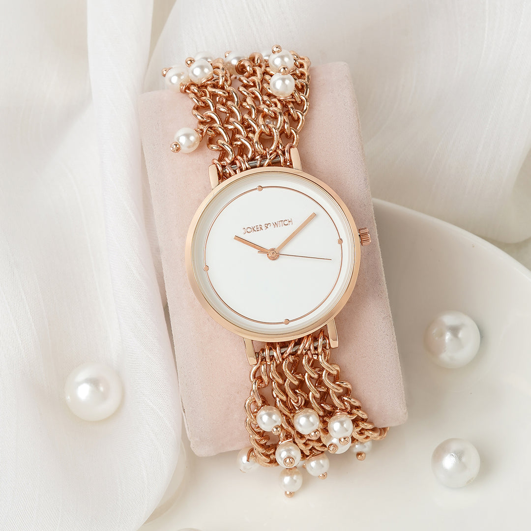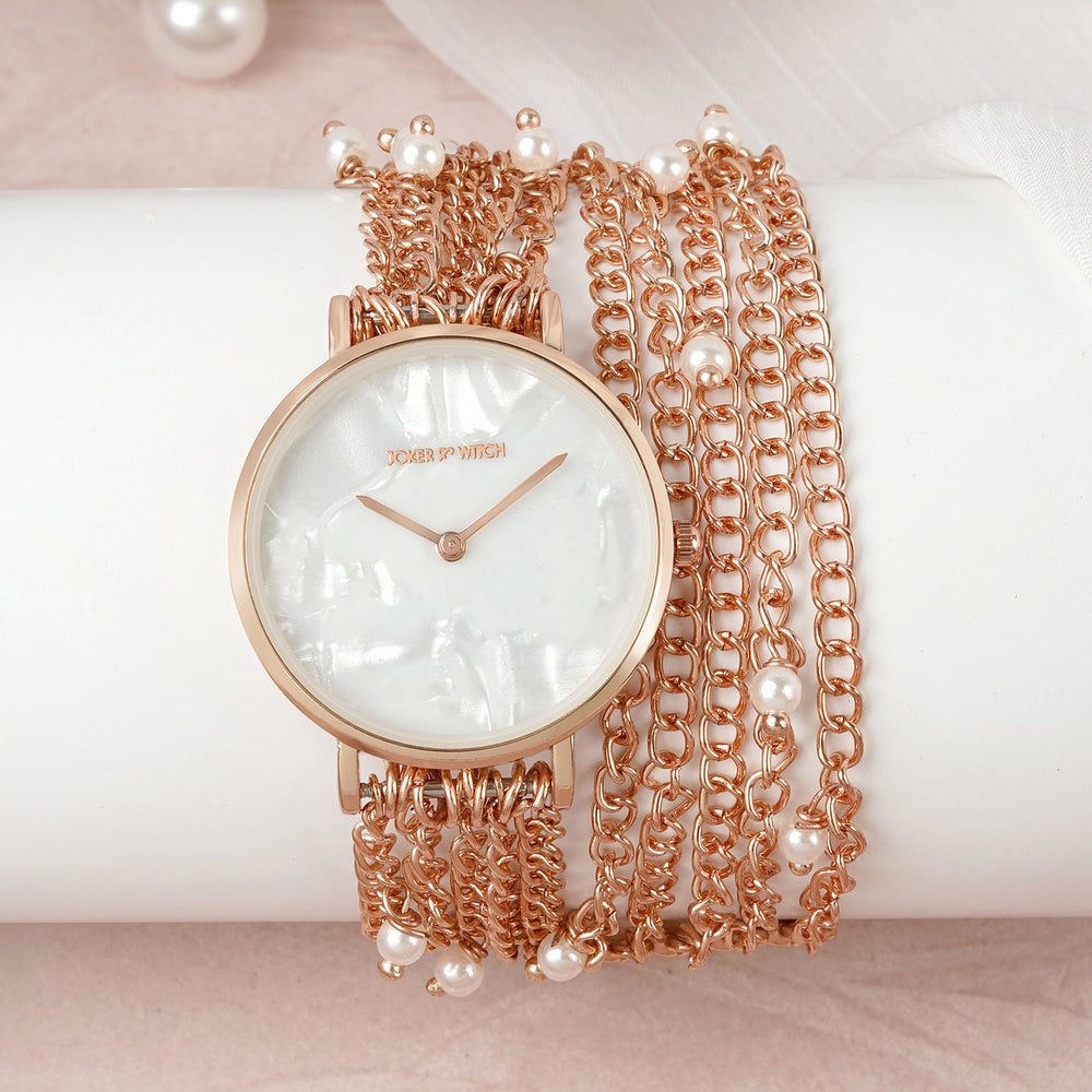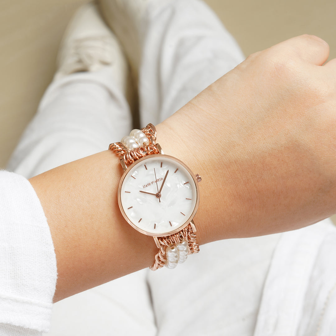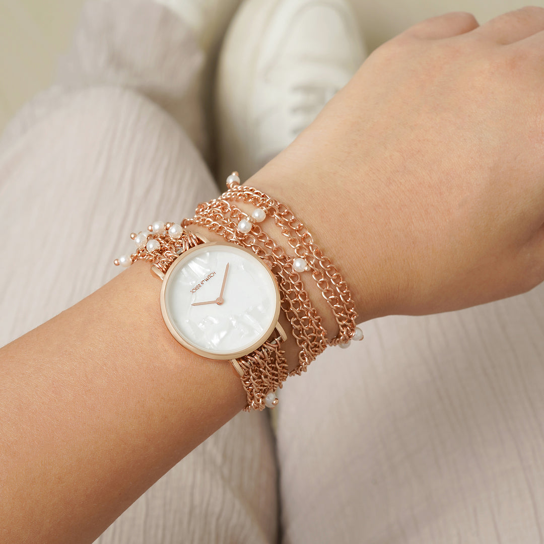 Nebula White MOP Large Dial Rose Gold Linked Chain Strap Women's Watch