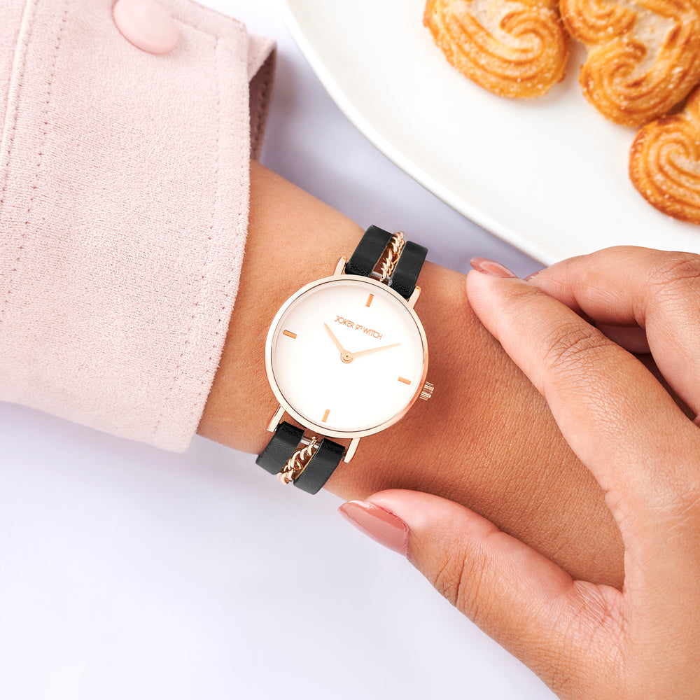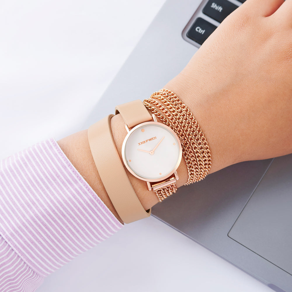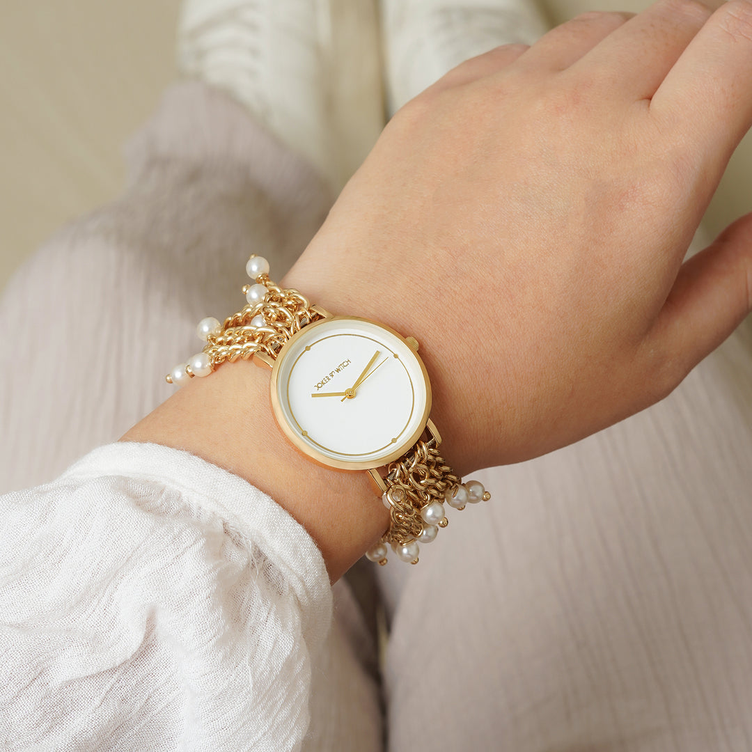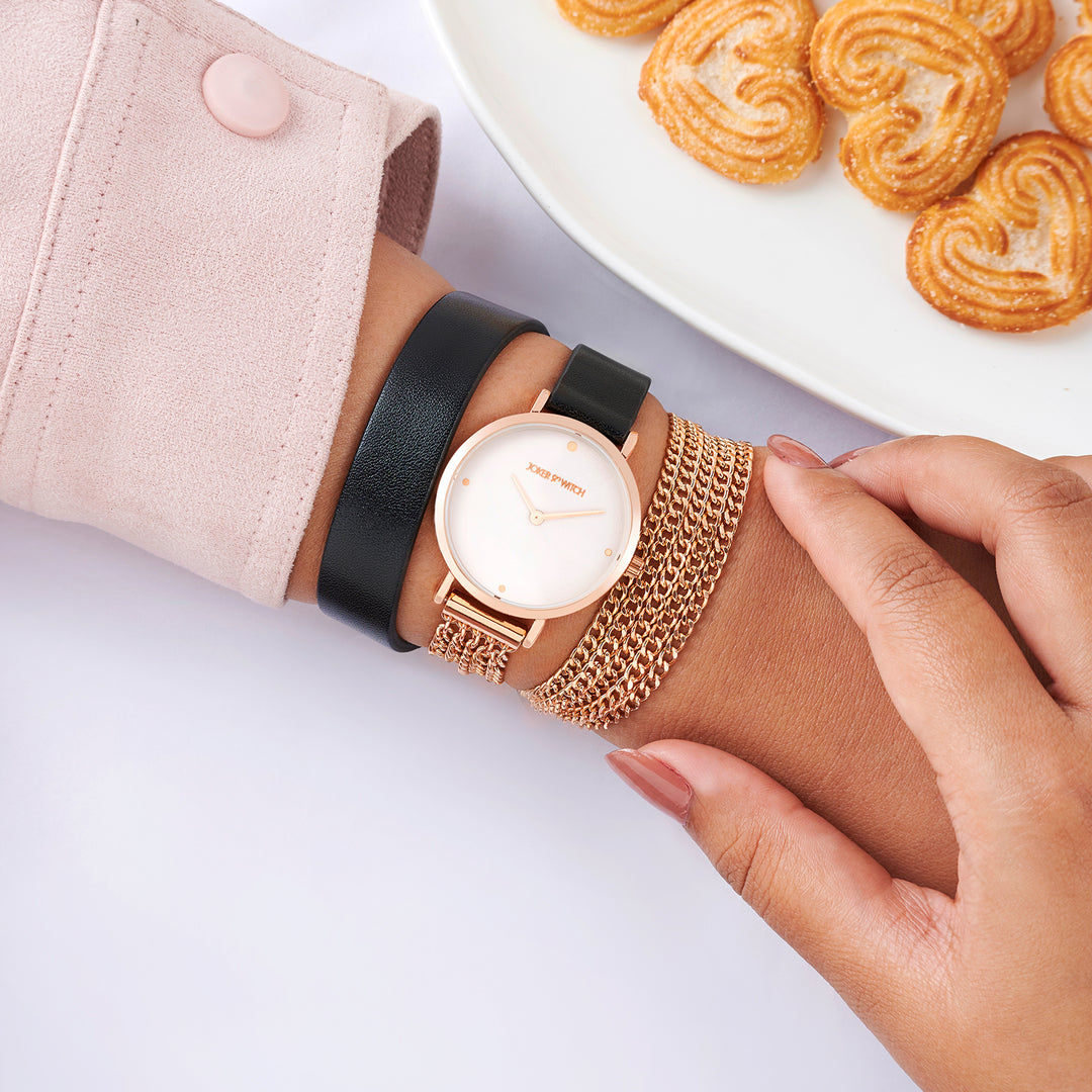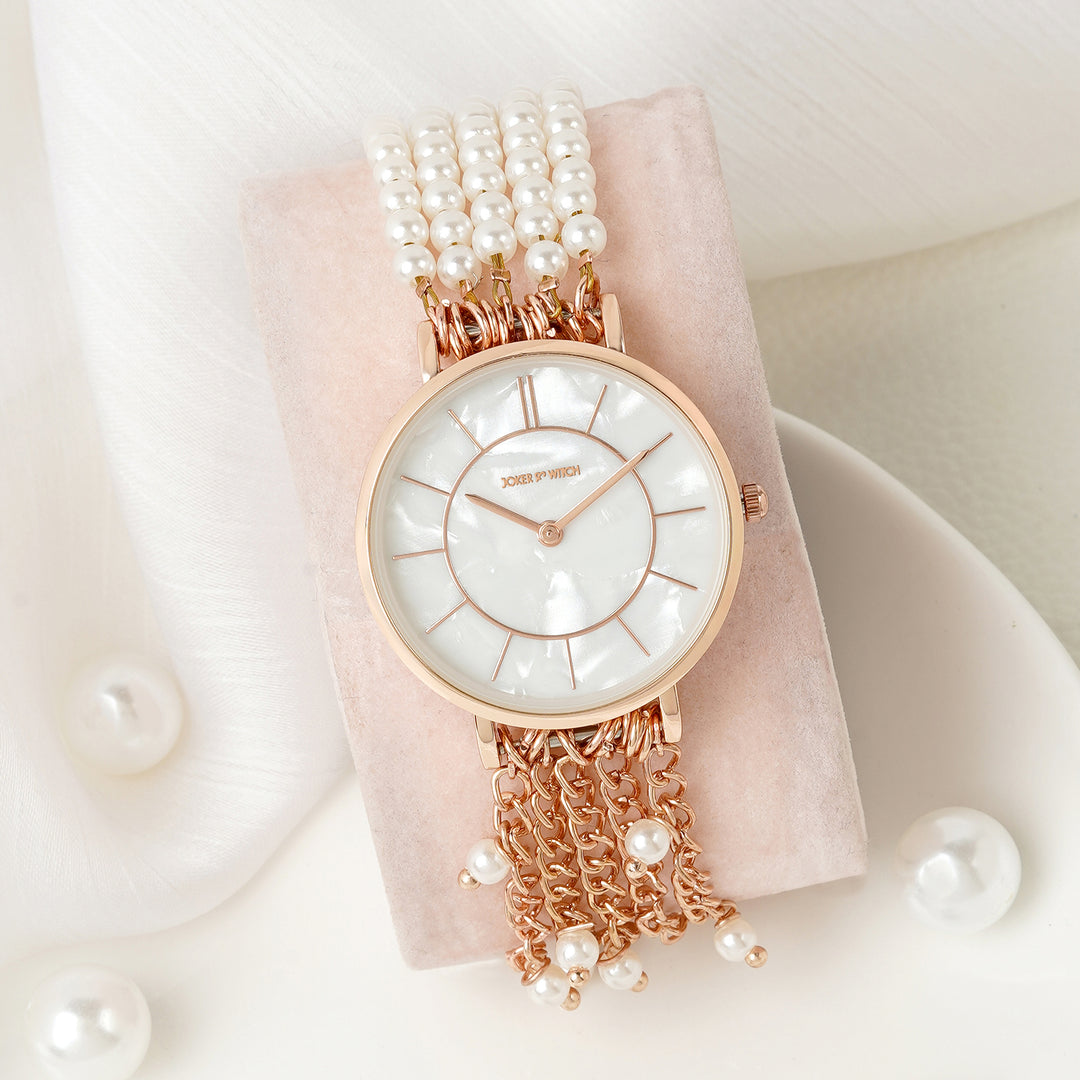 Nebula White MOP Large Dial Rose Gold Linked Chain Strap Women's Watch