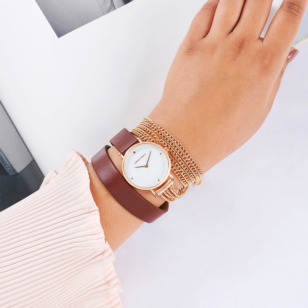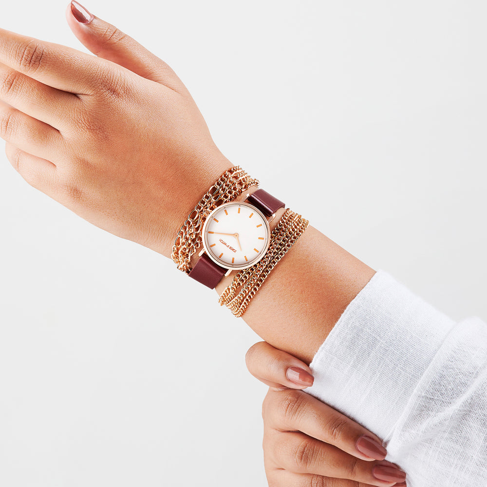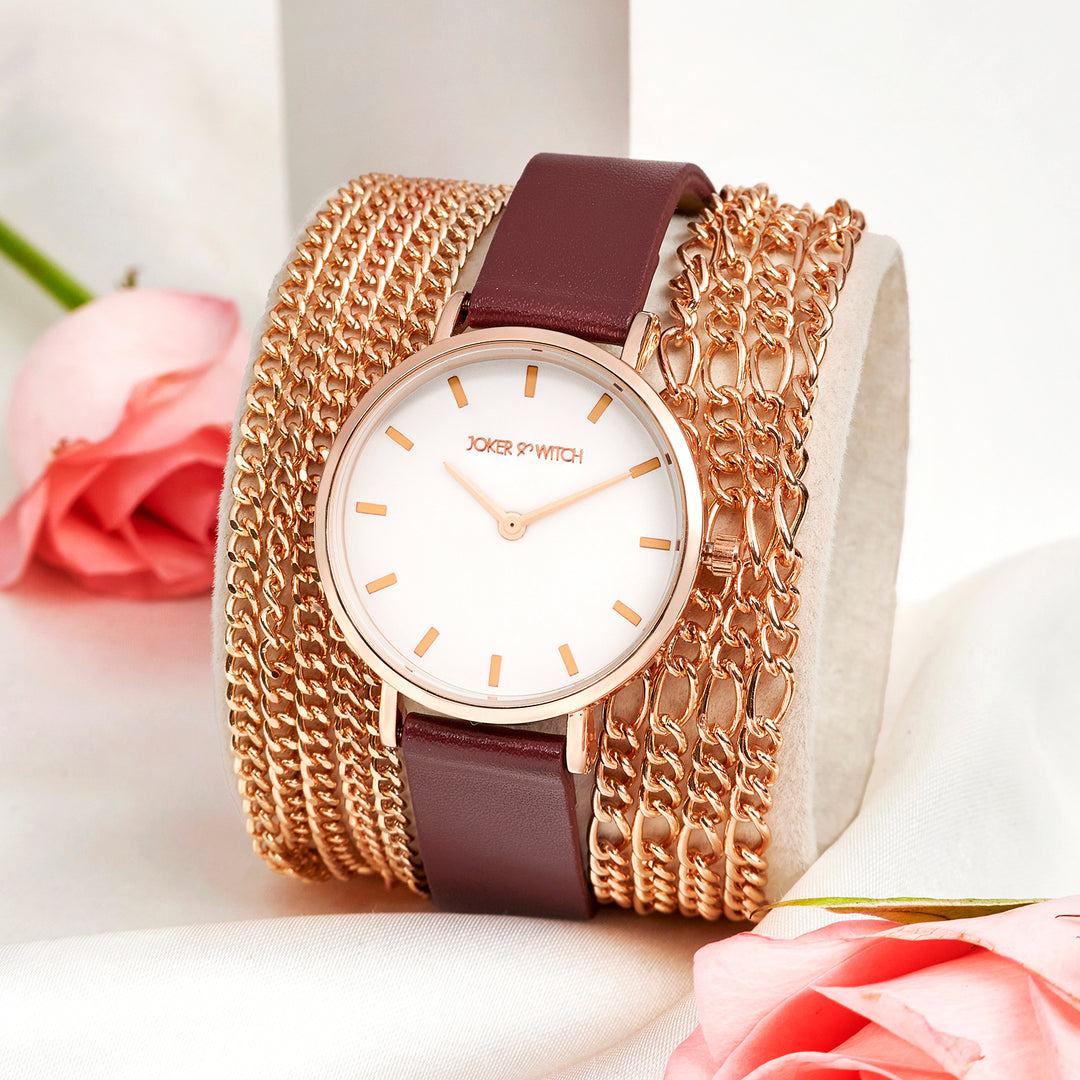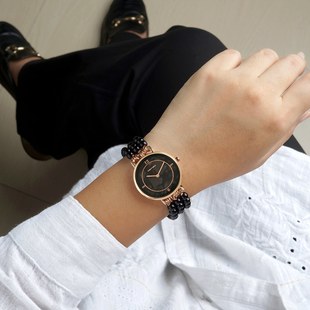 Nebula White MOP Large Dial Rose Gold Linked Chain Strap Women's Watch