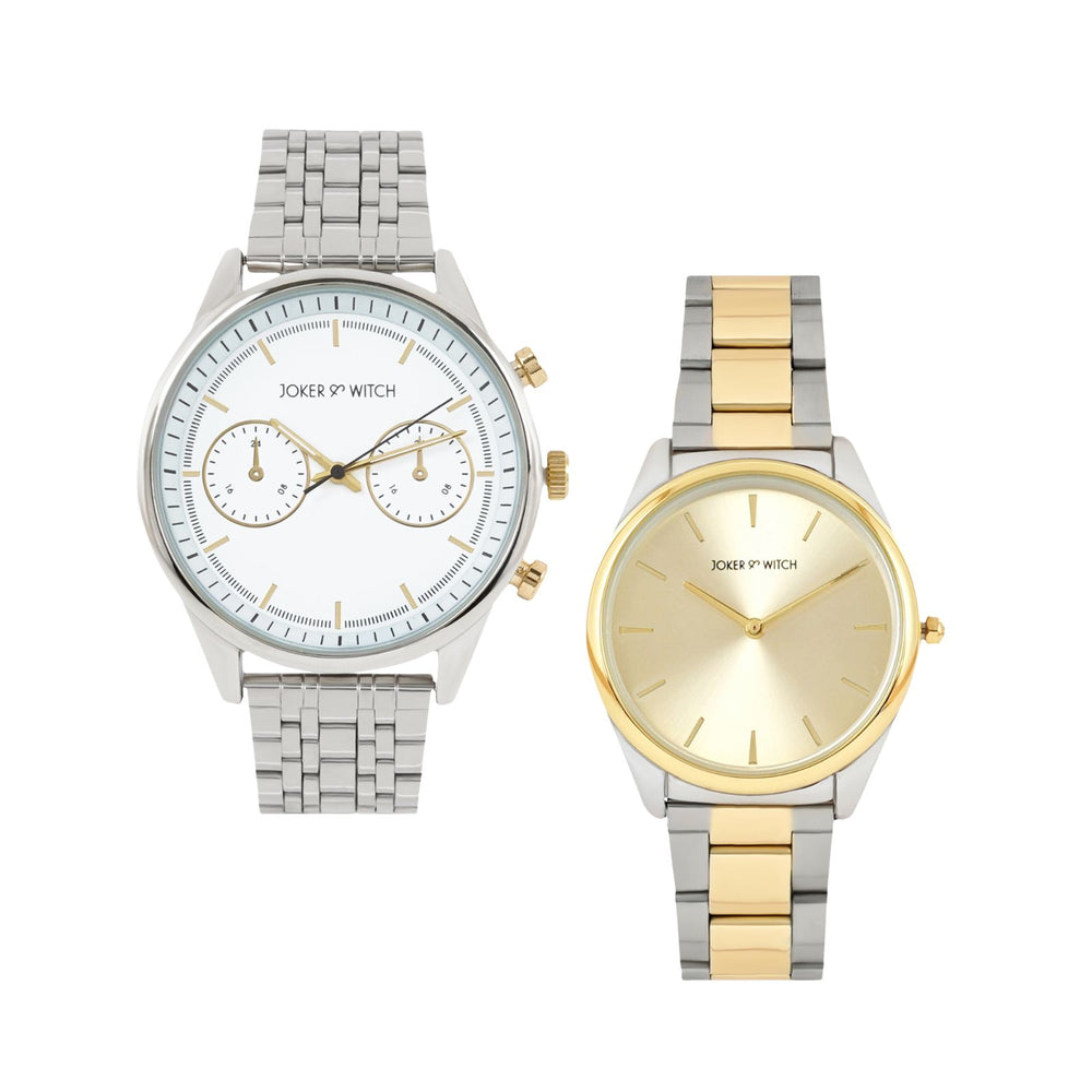 Connery White Large Dial Dual Tone Linked Chain Strap Men's Watch