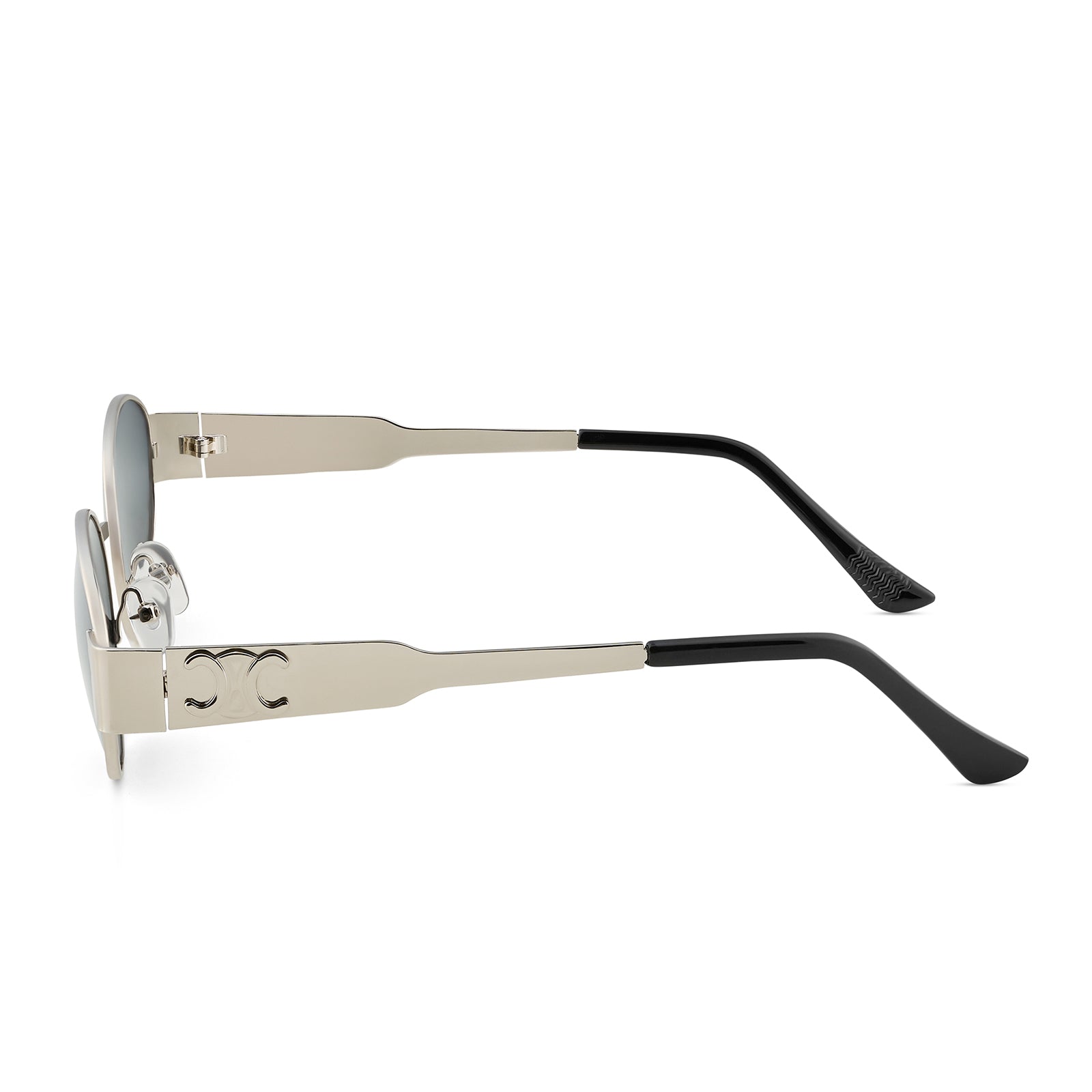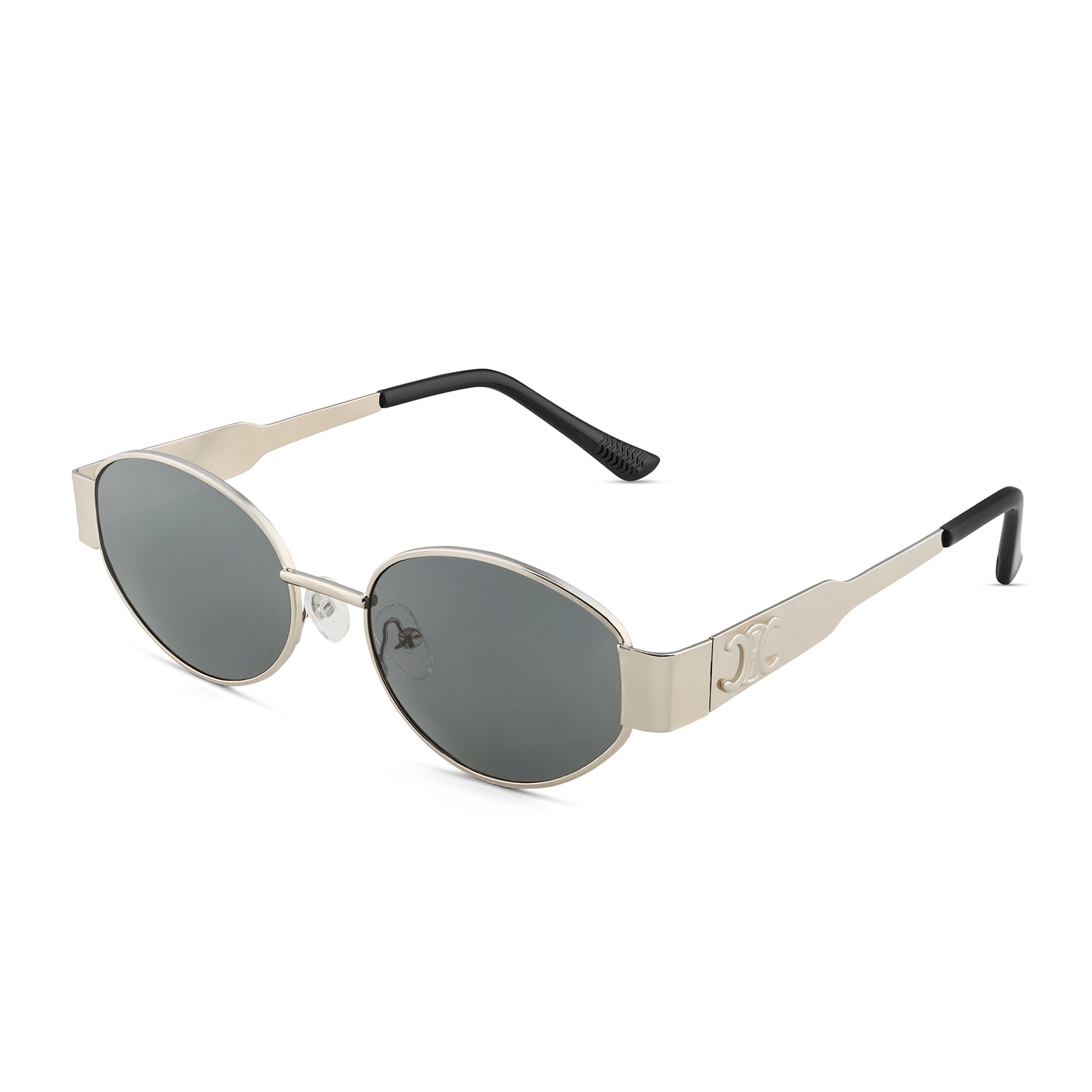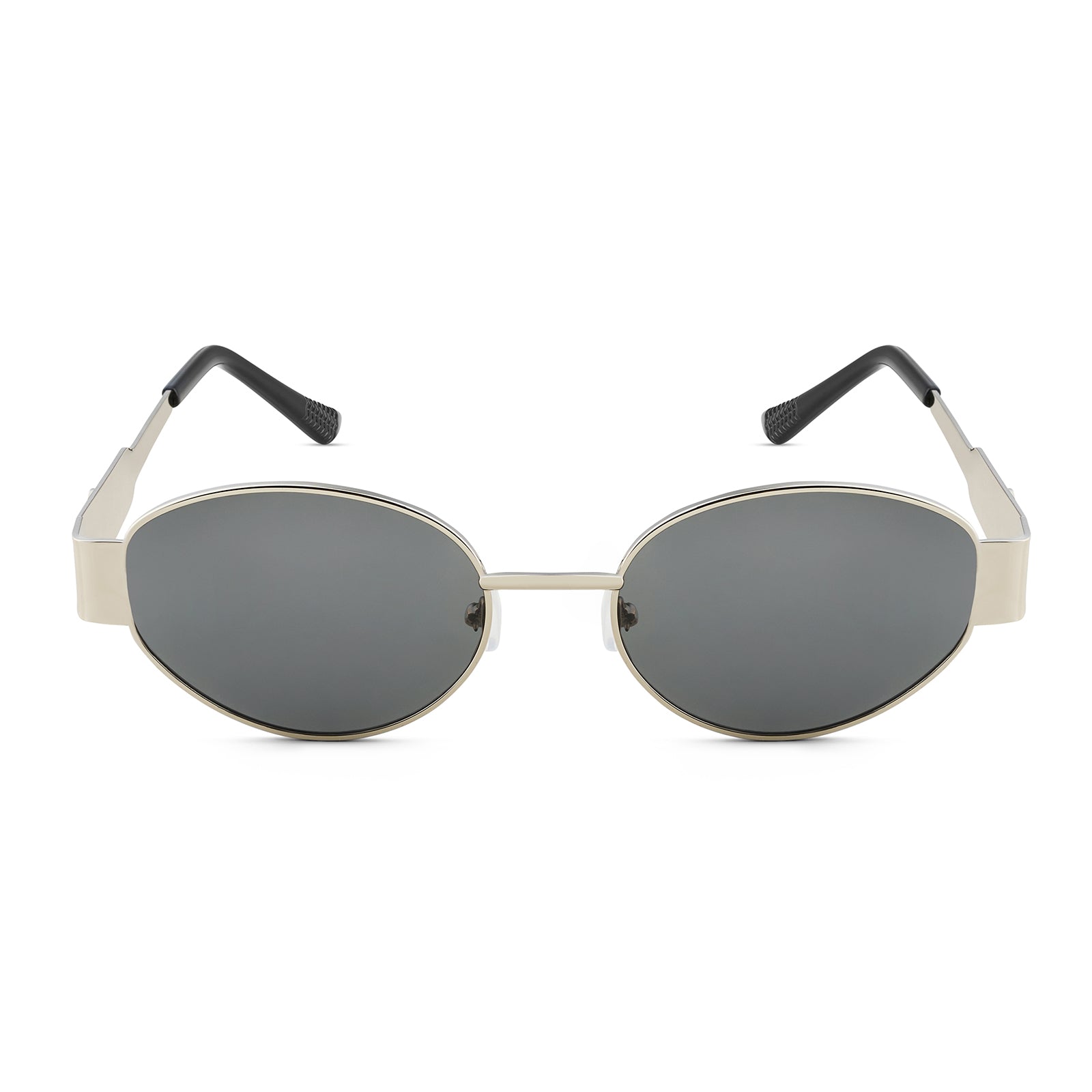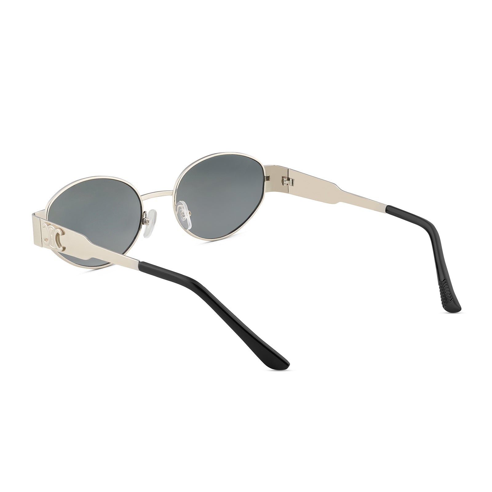 Meet your new go-to: Amber. These retro oval black lenses with a silver frame are equal parts chic and timeless. Perfect for adding a vintage vibe to any look—snap a selfie and let Amber shine!