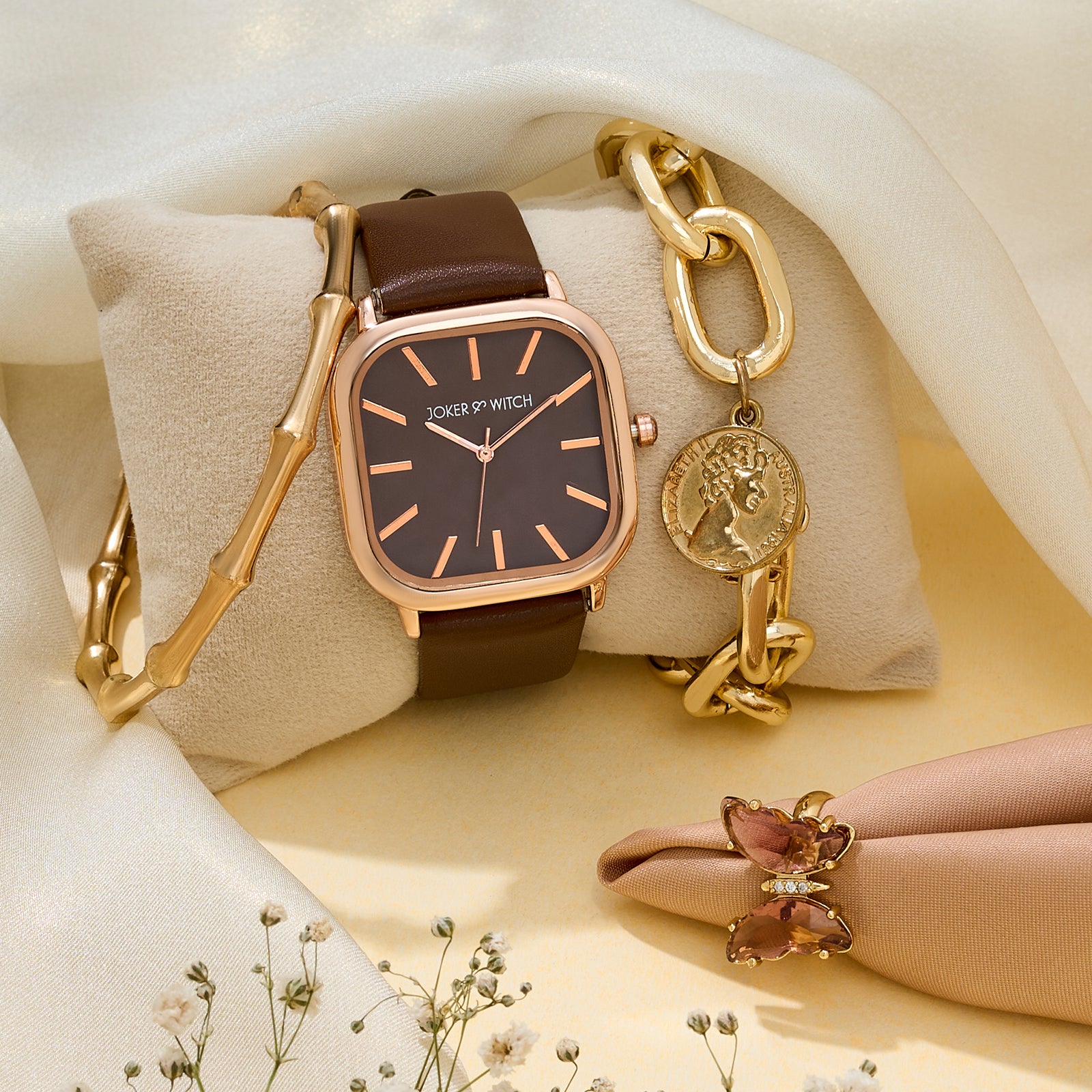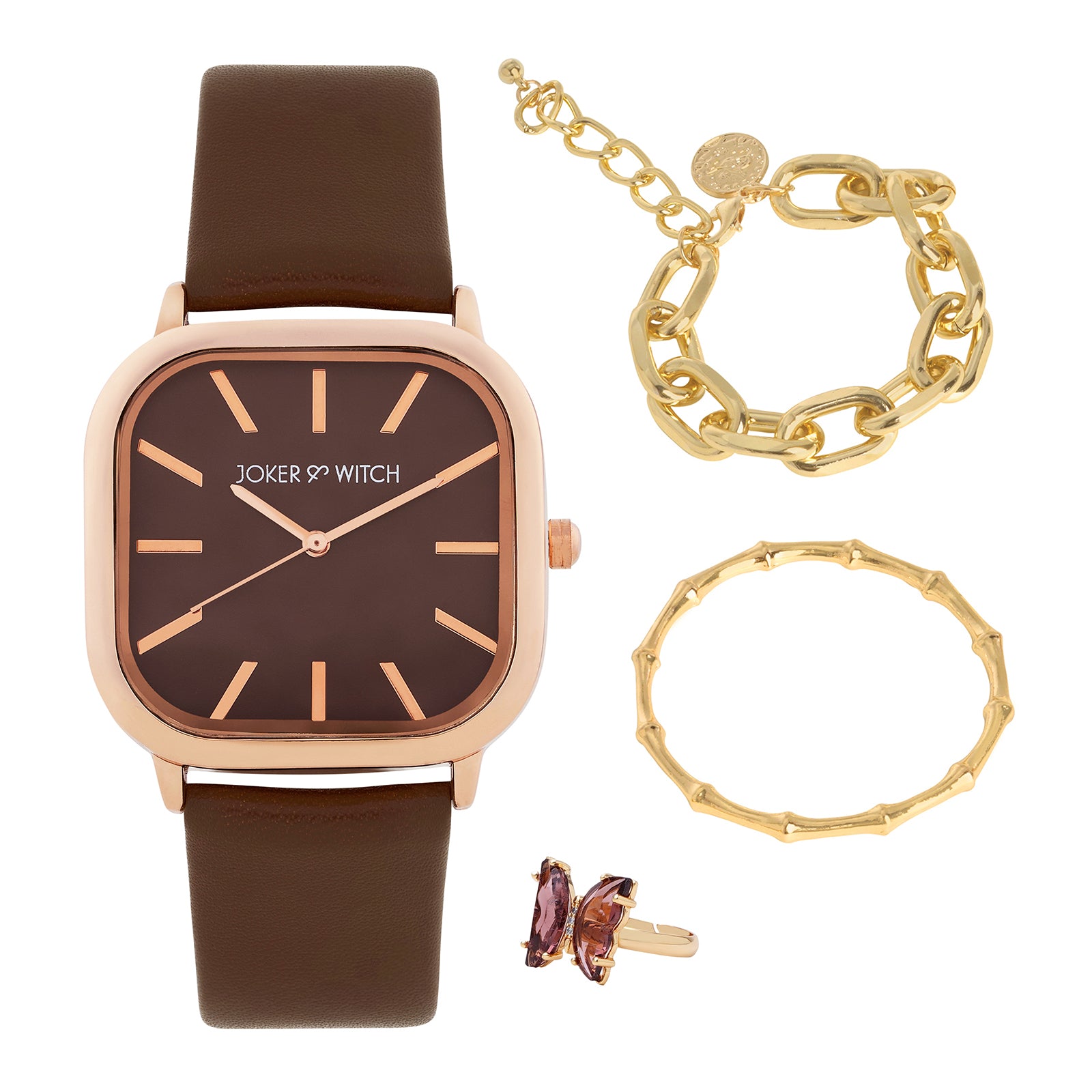 Watch | Vera Elegance Brown Square Dial Watch with an Royal Brown PU Strap |