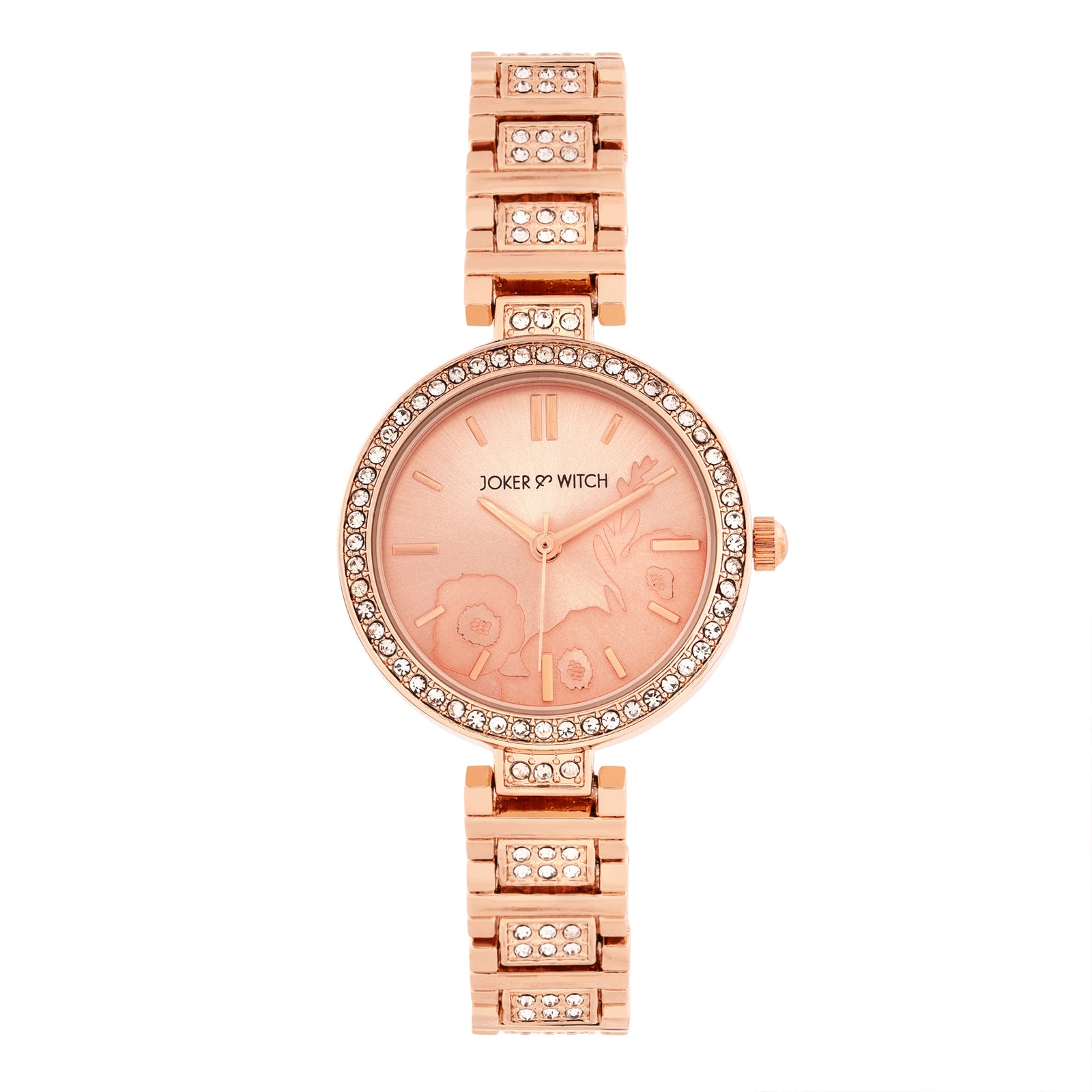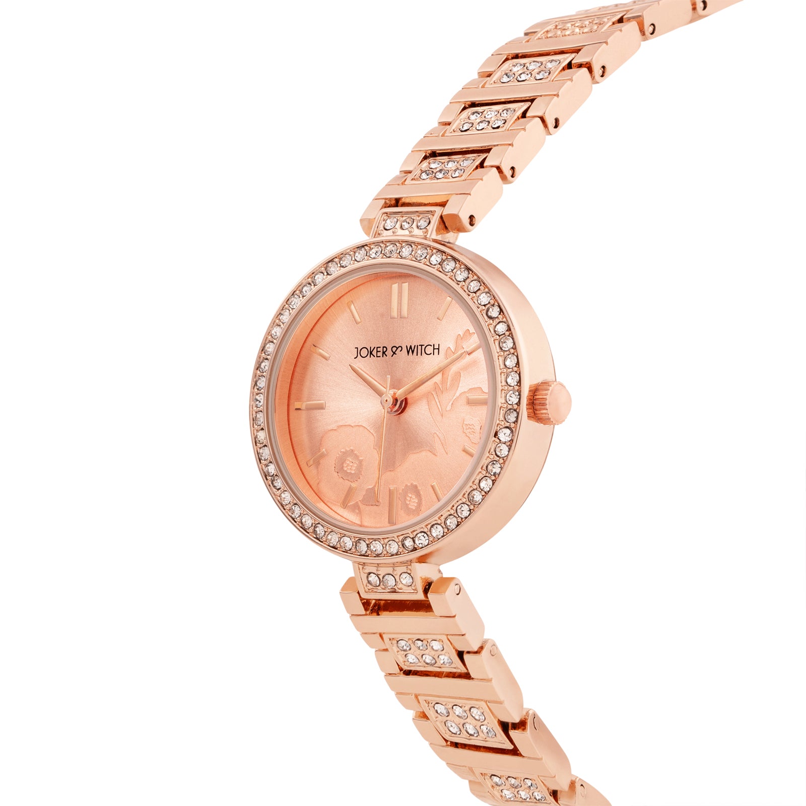 Watch | Astrielle Rosegold Watch with Rhinestone-Accented Chain Link Strap |