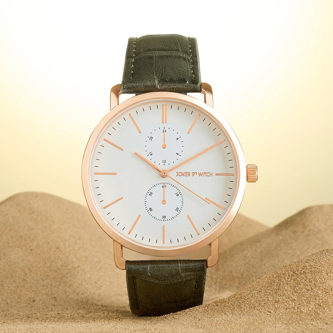 Futuristic Rose Gold Black Large Dial PU Strap Women's Watch