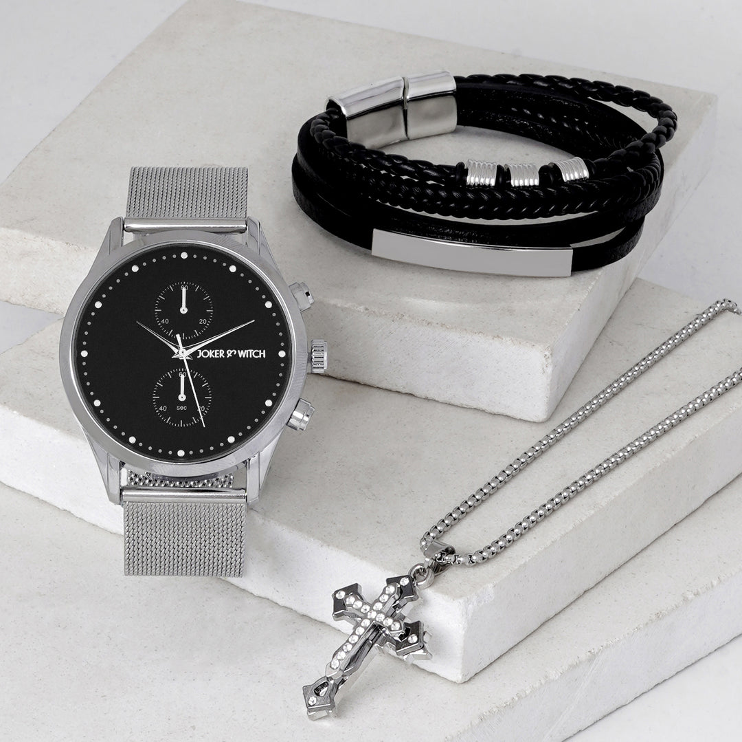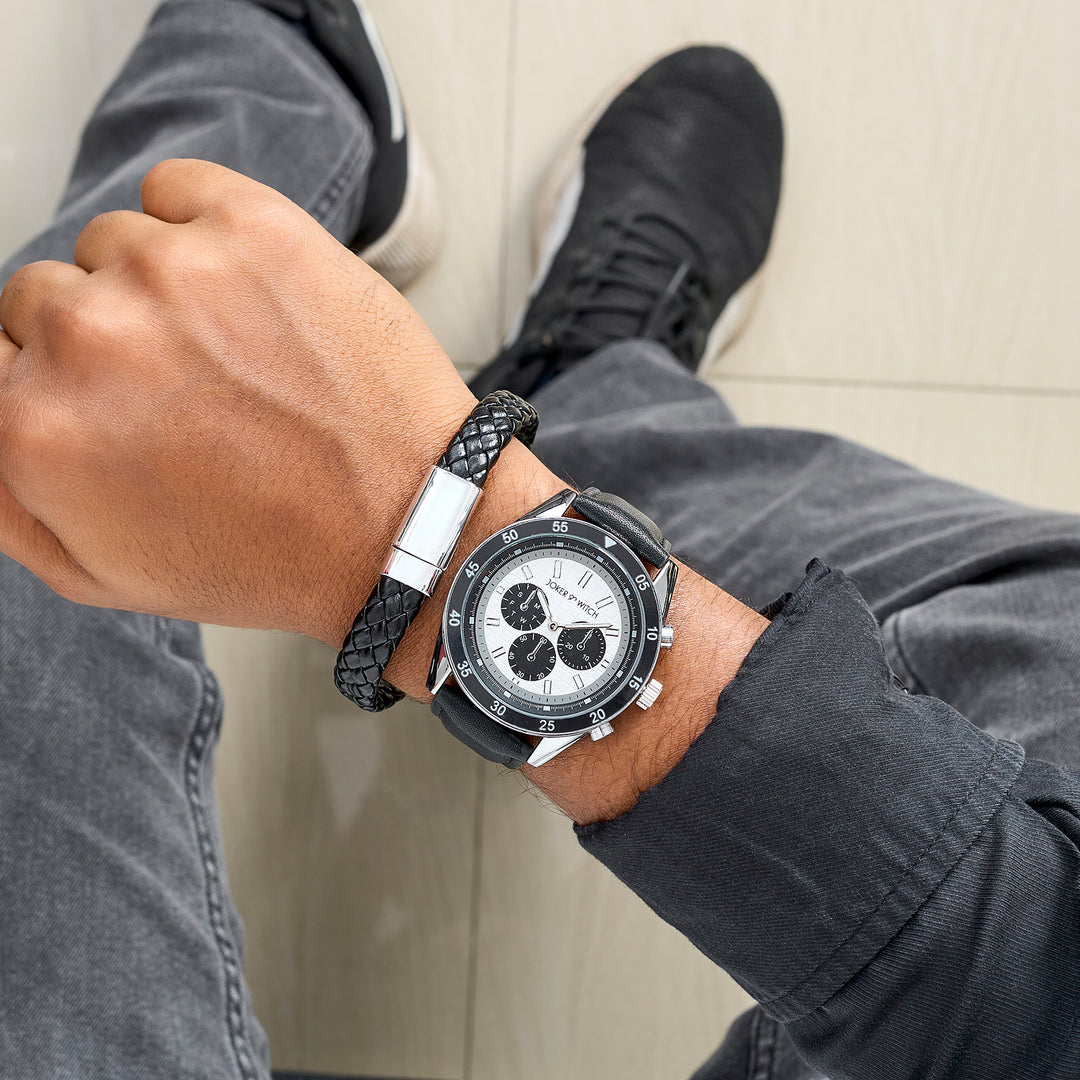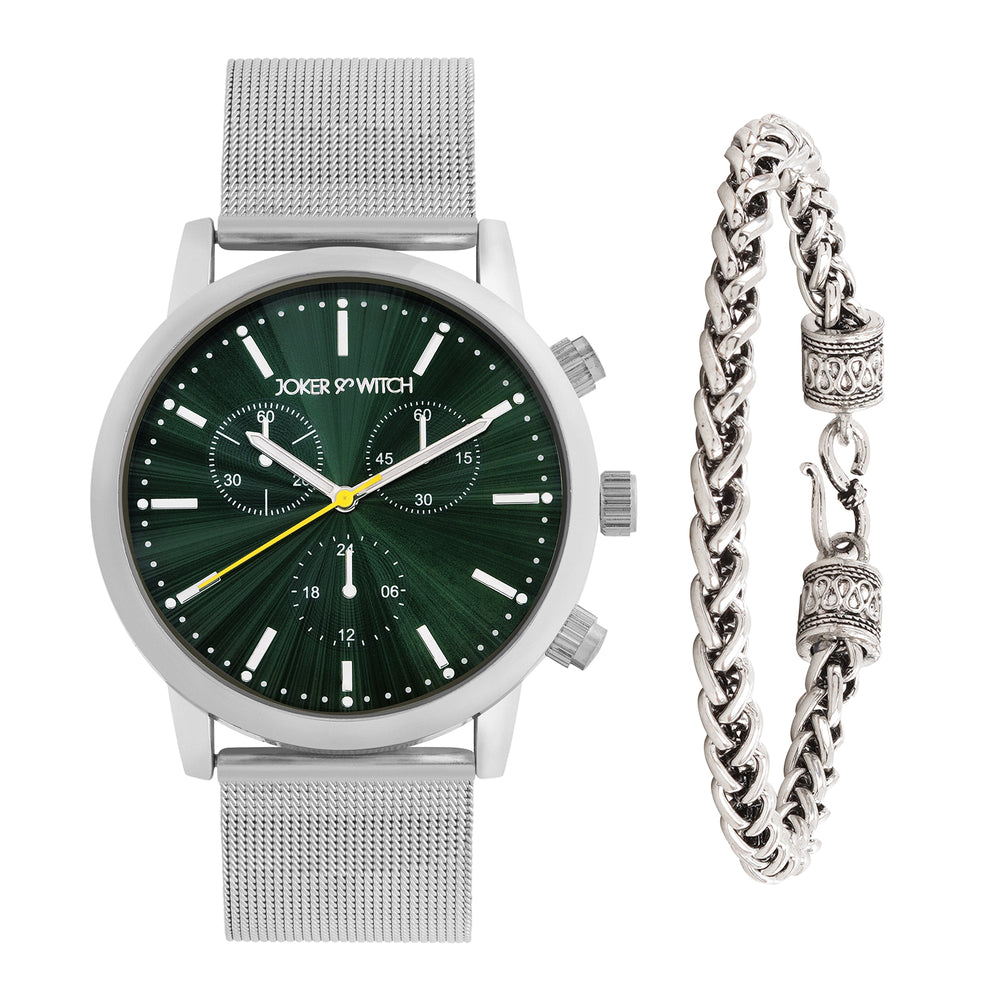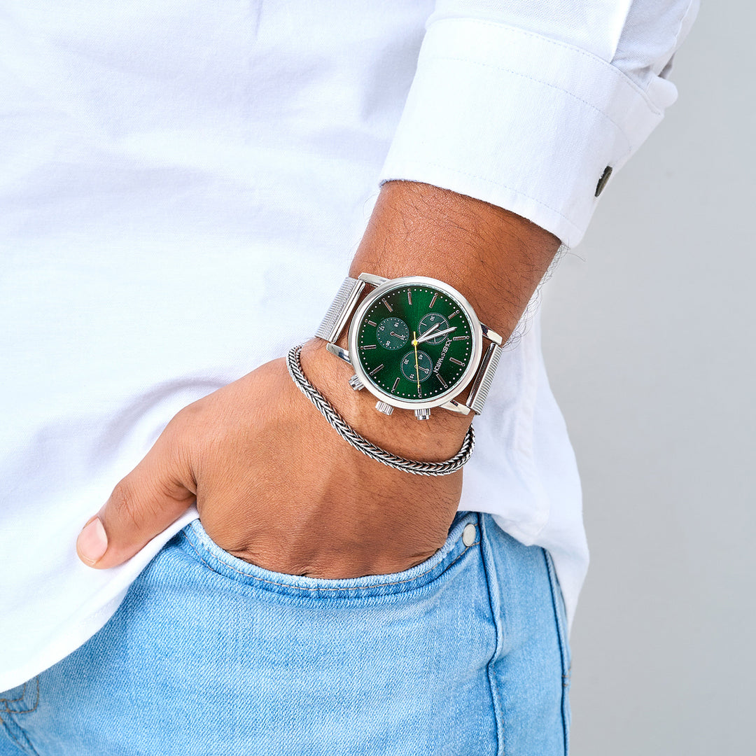 Connery Blue Large Dial Silver Linked Chain Strap Men's Watch