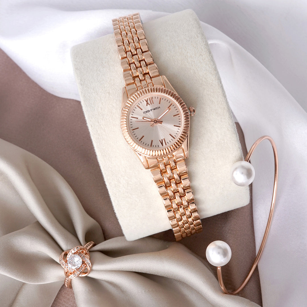 Suzanne White Large Rhinestone Dial Taupe Ceramic Linked Chain Strap Women's Watch