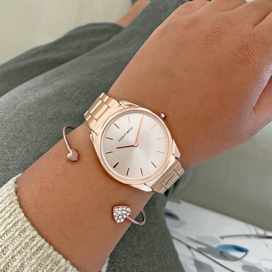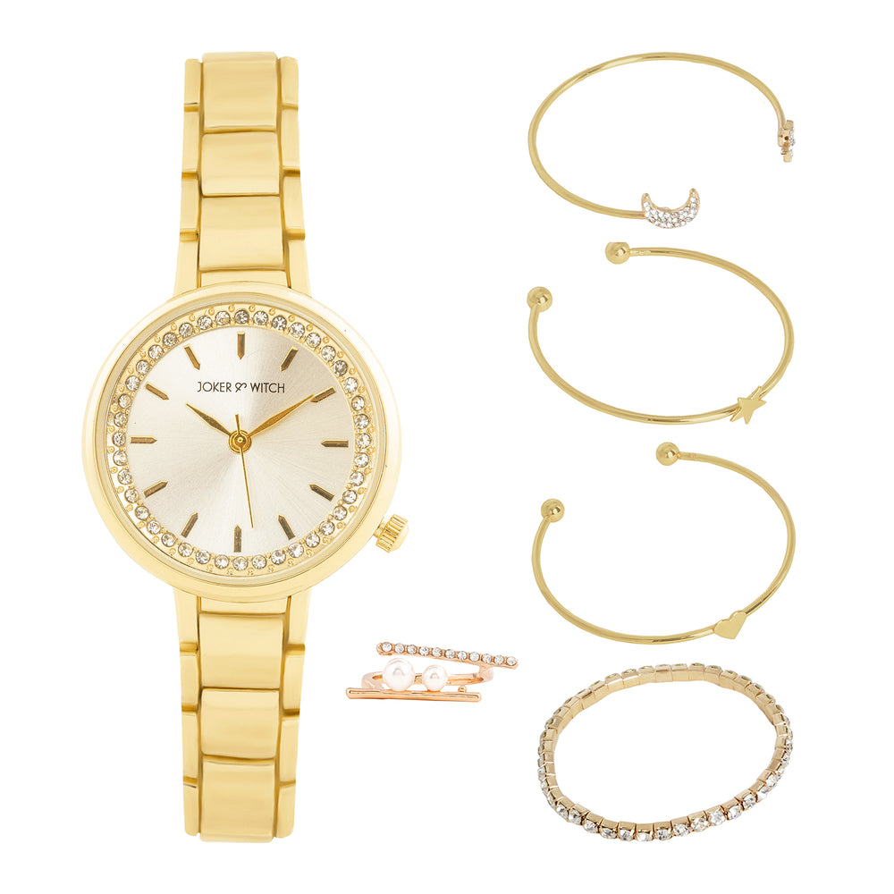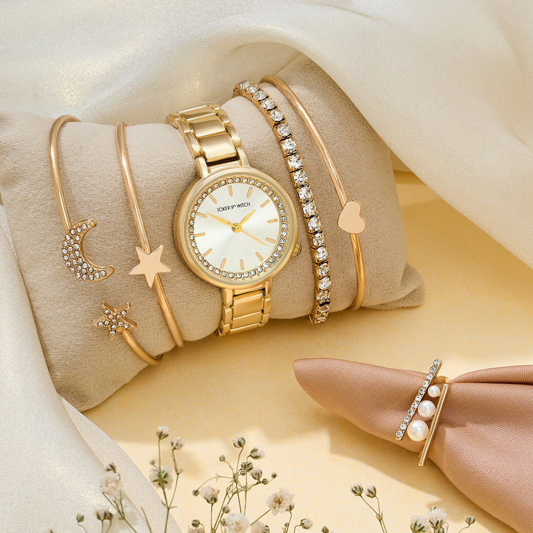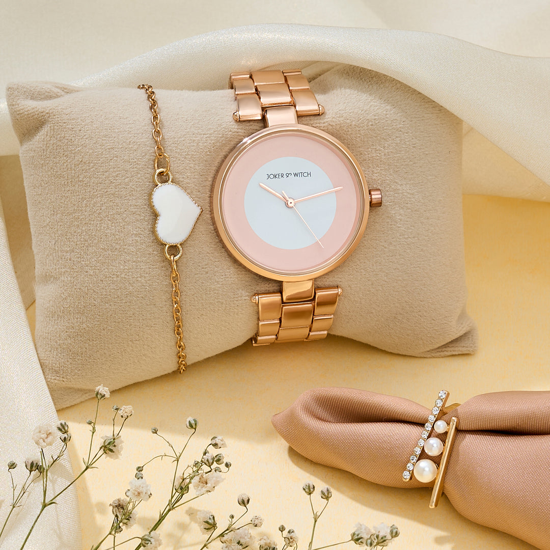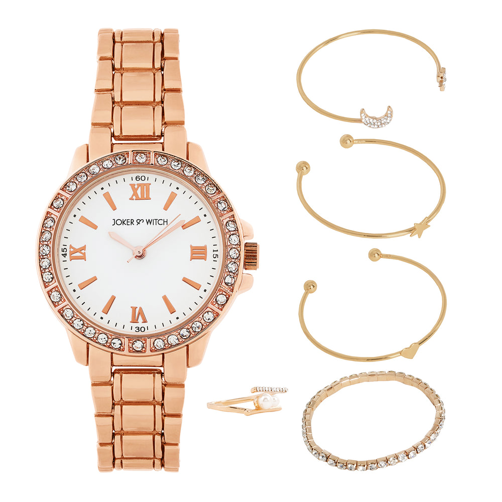 Suzanne White Large Rhinestone Dial Taupe Ceramic Linked Chain Strap Women's Watch