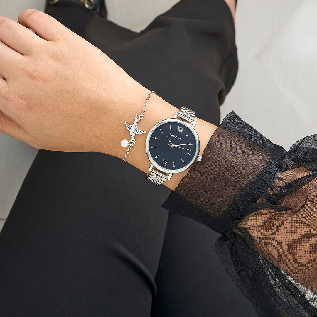 Shanghai Black Large Dial Linked Chain Strap Men's Watch