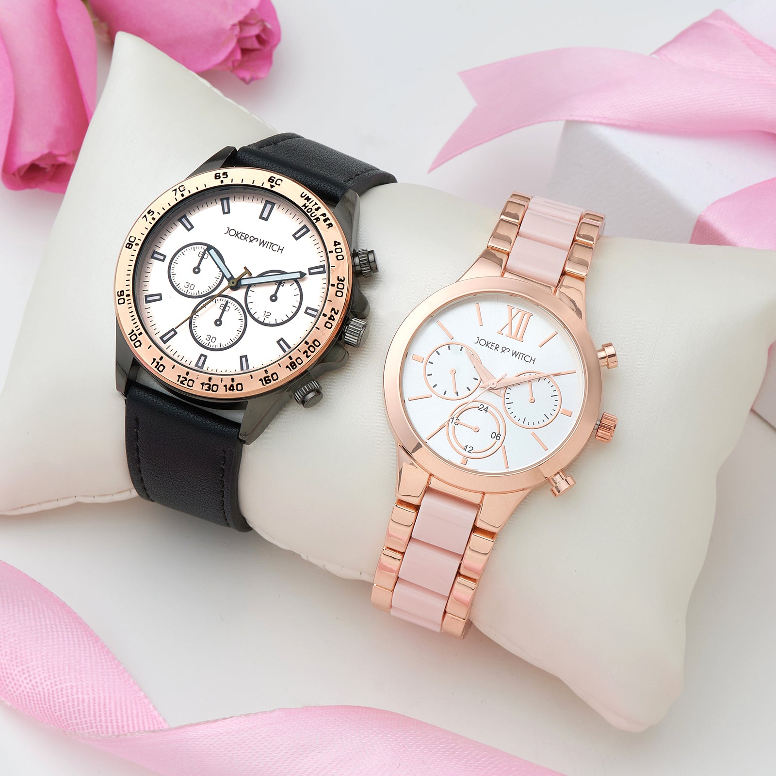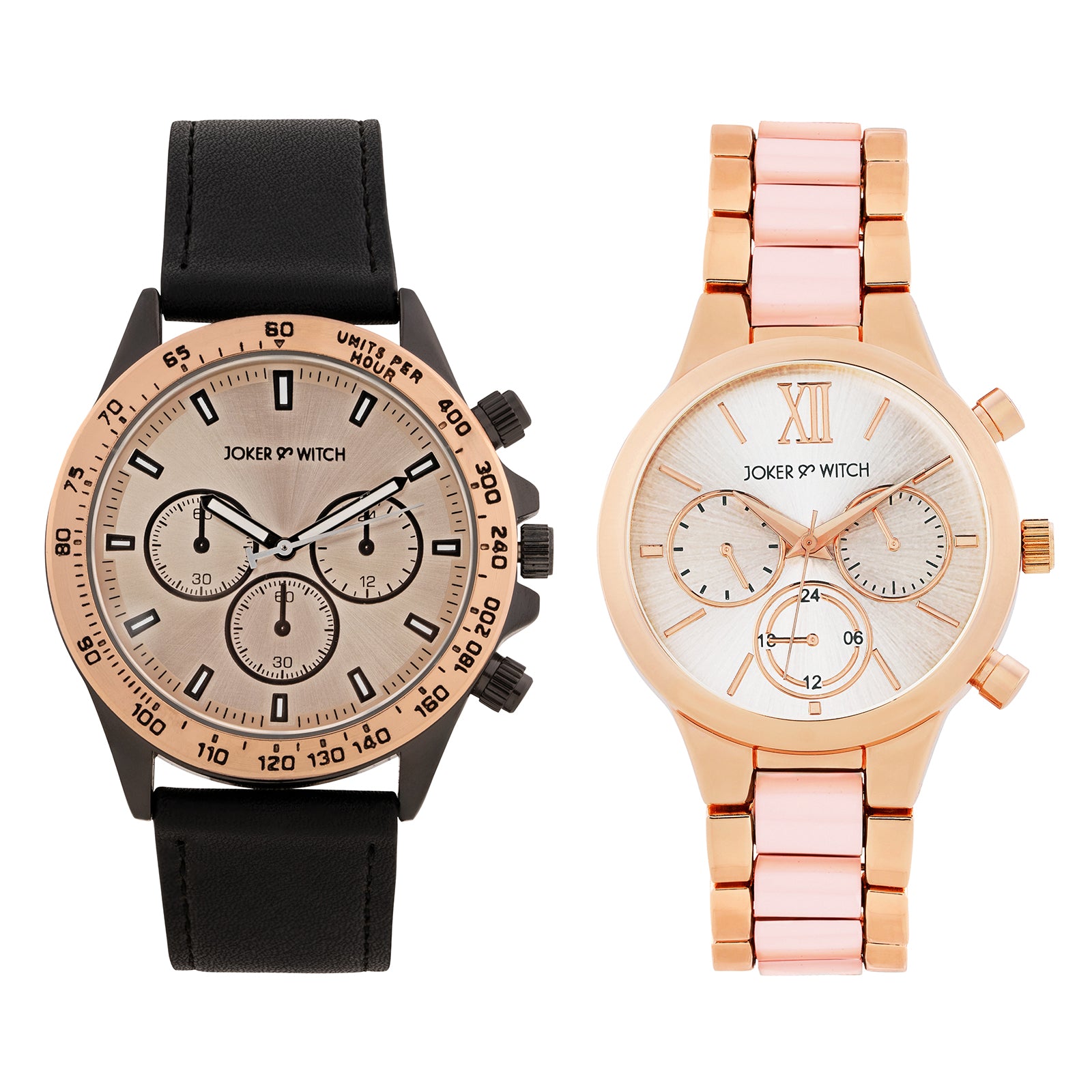 Women's Watch: Stainless Steel Men's Watch: Faux Leather |