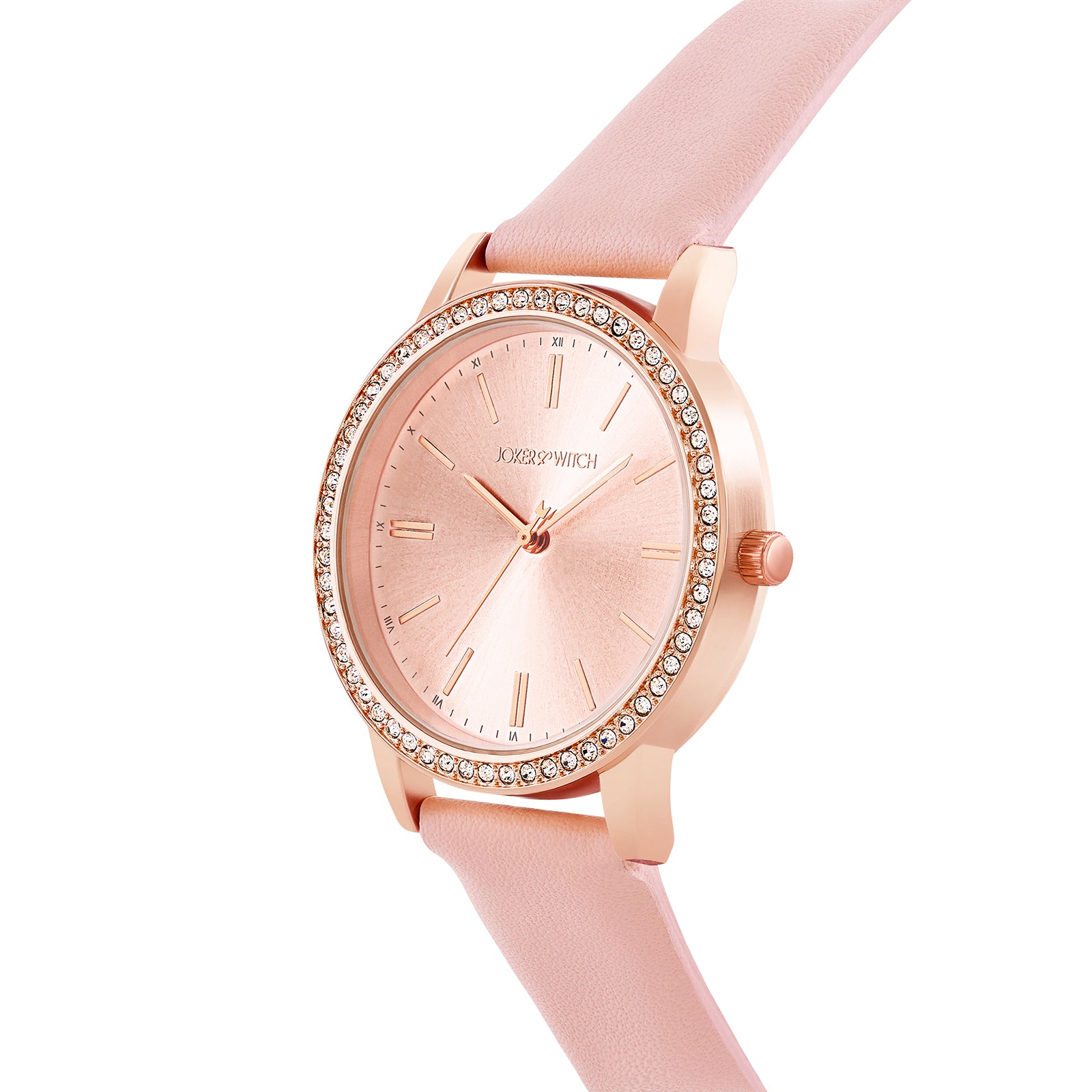 | Women's Watch | Halo Rosegold Sunray Large Rhinestone Dial Pink PU Strap Women's Watch |