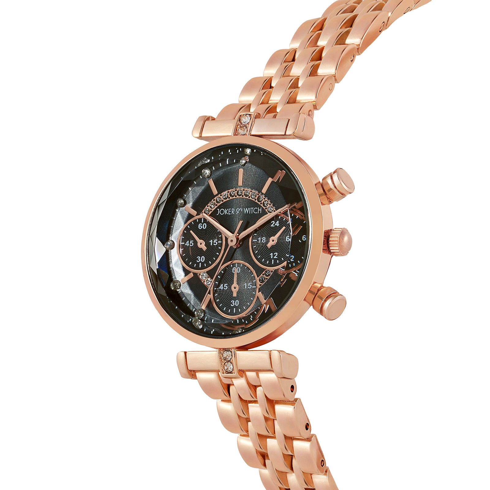 | Women's Watch | Solace Black Sunray Crystal Glass Small Dial Rosegold Metallic Strap Women's Watch |