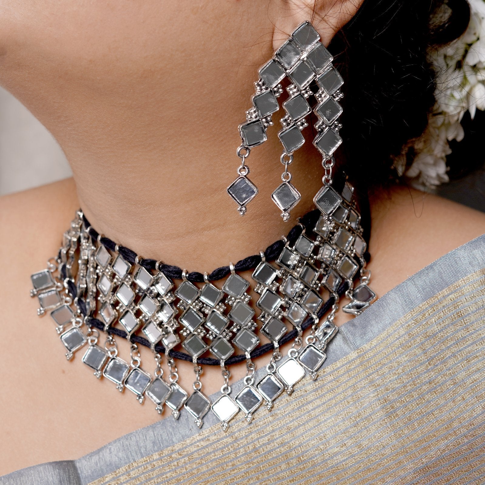 Necklace: Length - 12.5, Breadth - 6cm Earrings: Length- 7.5cm , Breadth - 3.5cm |