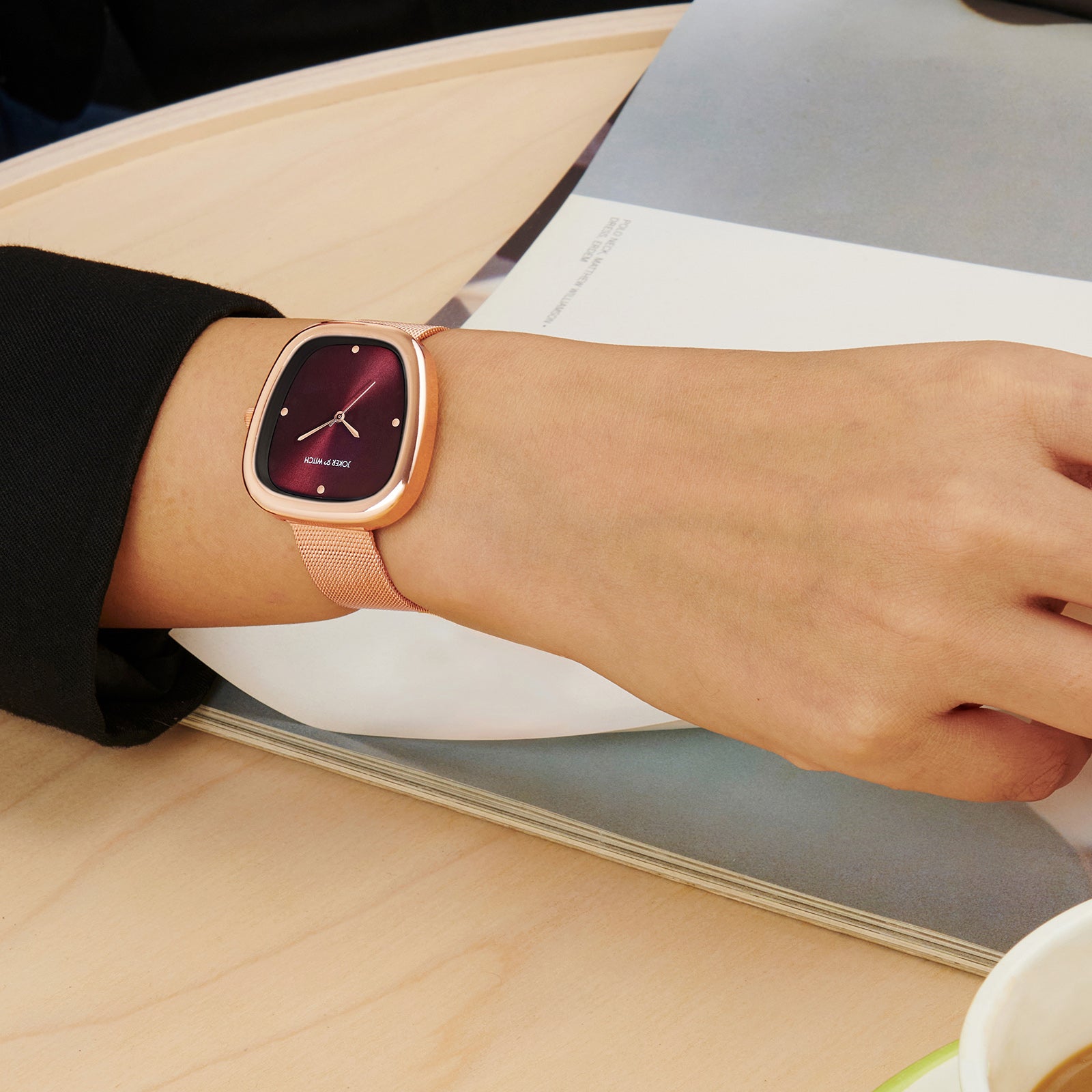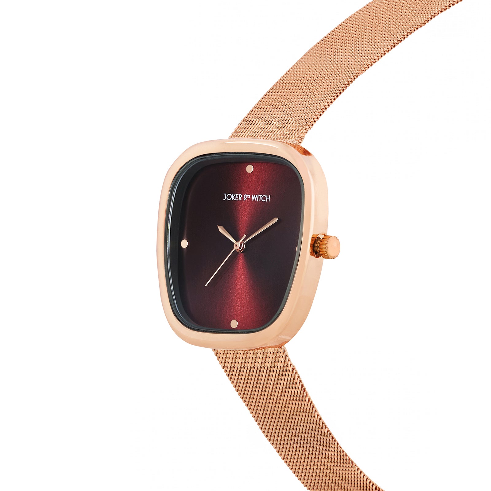 Classic with a modern twist. The Verity Maroon Sunray Medium Square Dial Rose Gold Mesh Strap Watch features a rich maroon sunray dial and rose gold mesh strap for an effortlessly sophisticated look. It’s timeless, just like you.