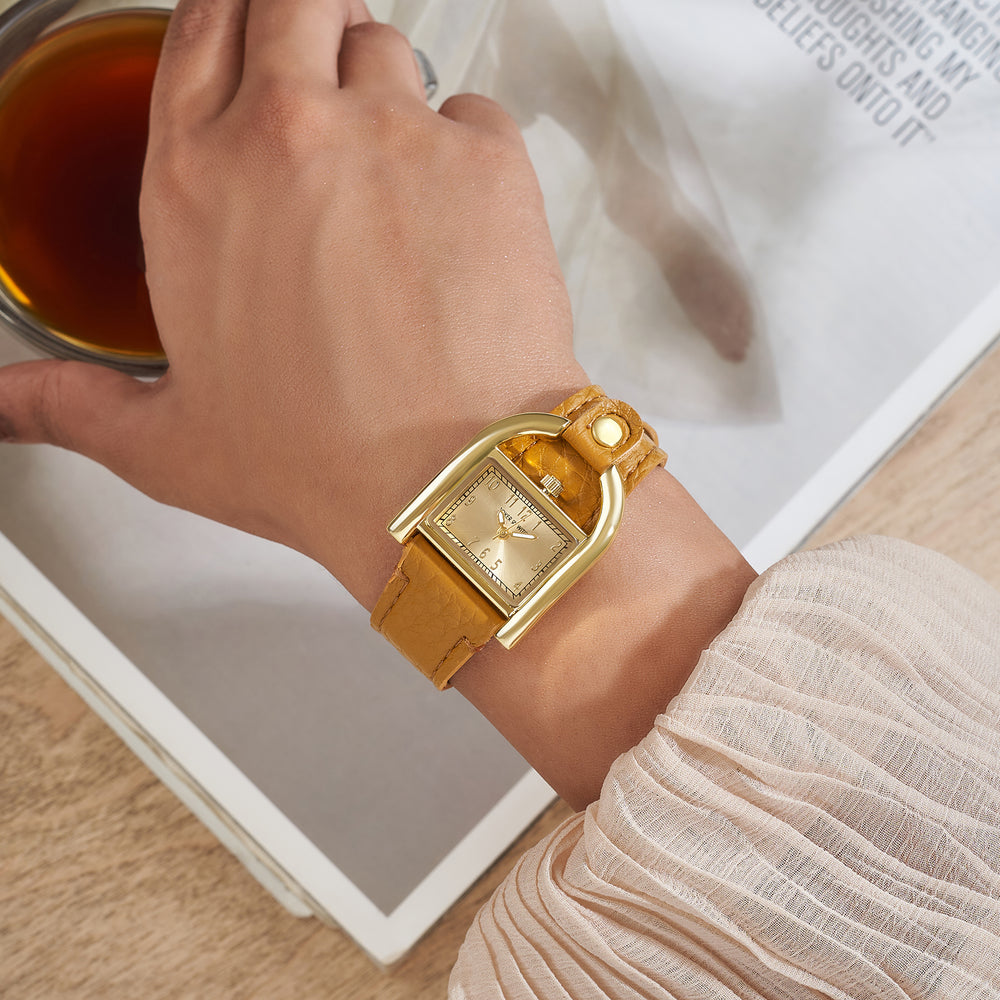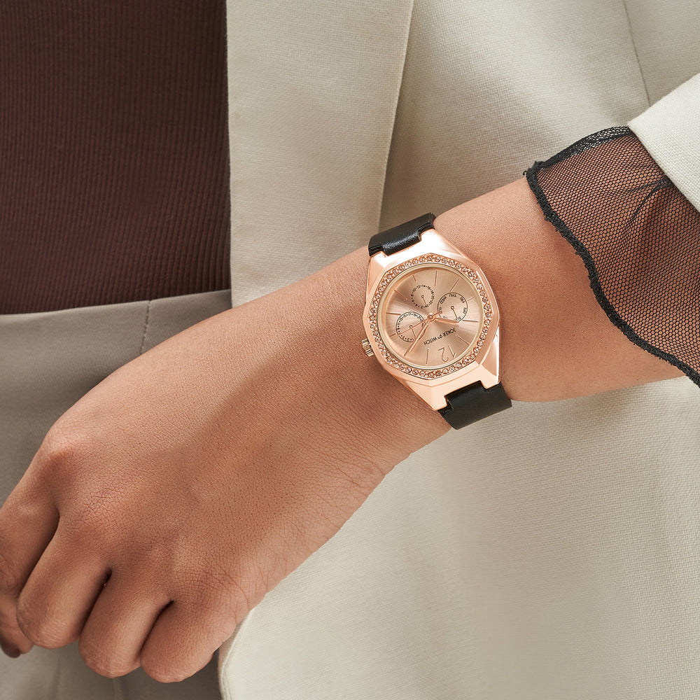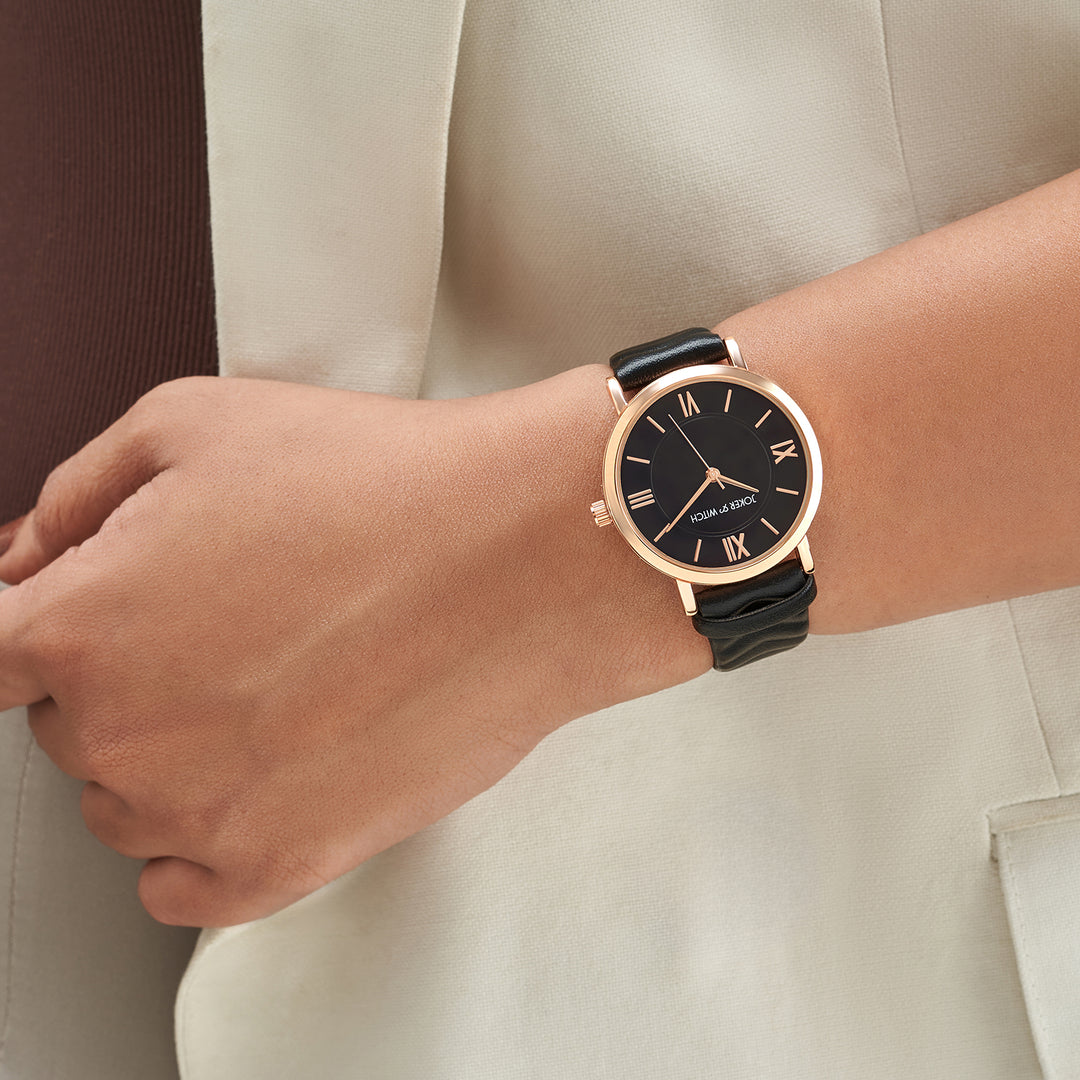 Dara Silver Medium Rectangle Dial Black PU Strap Women's Watch