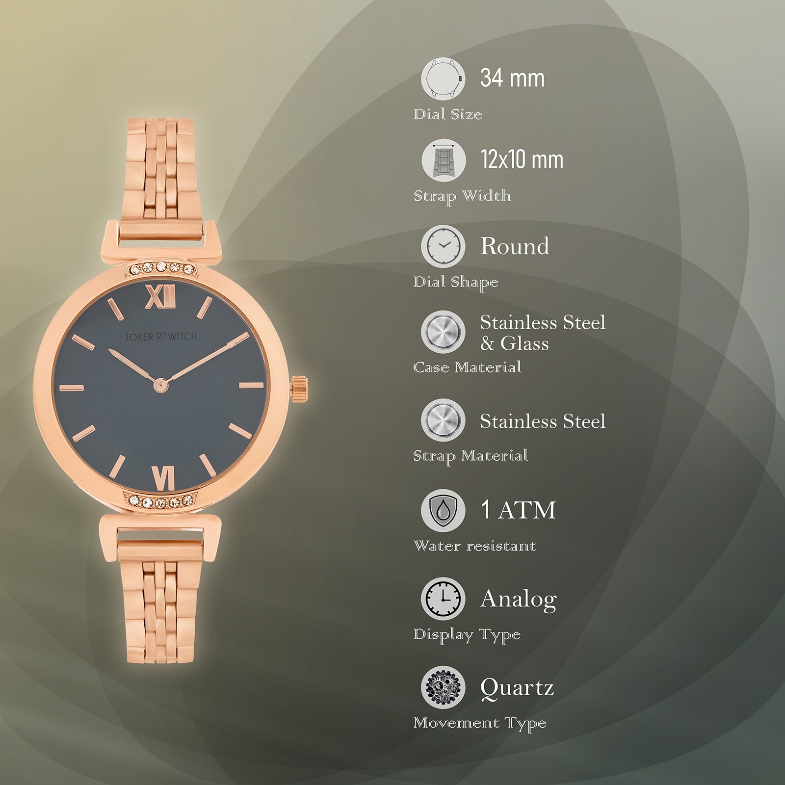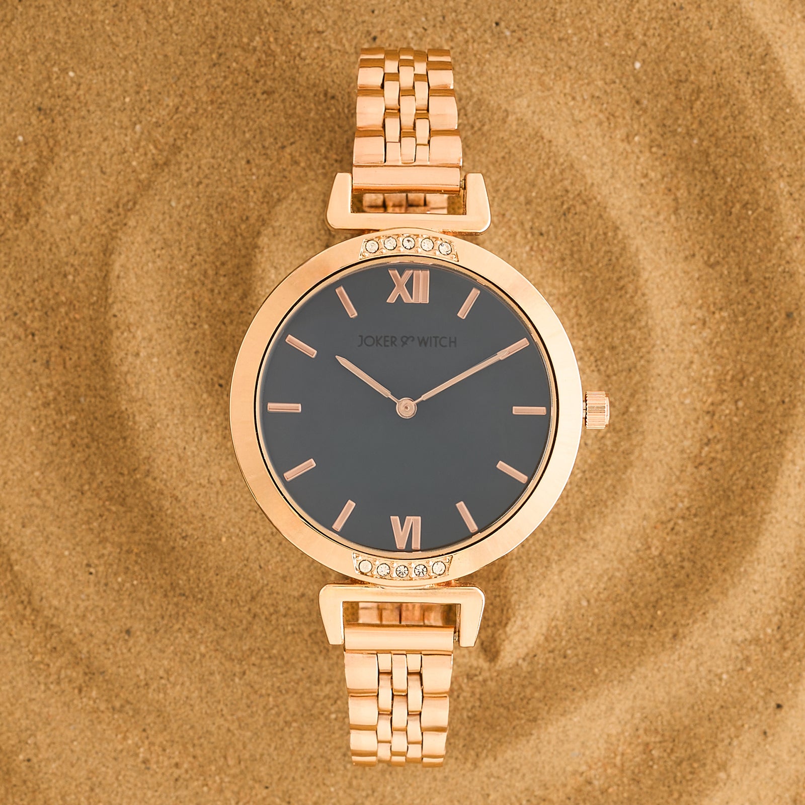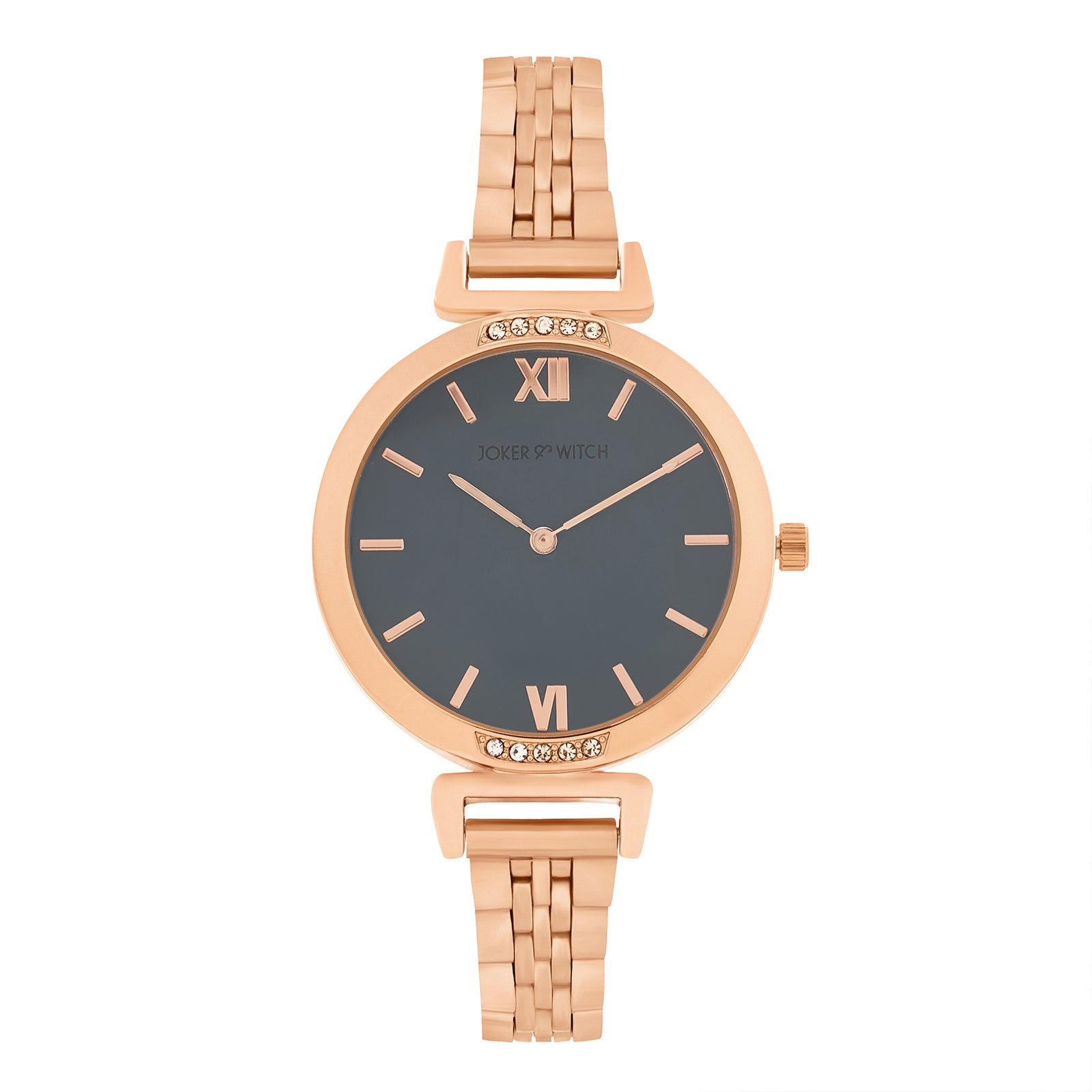 Petite Charcoal Medium Dial Rose Gold Linked Chain Strap Women's Watch