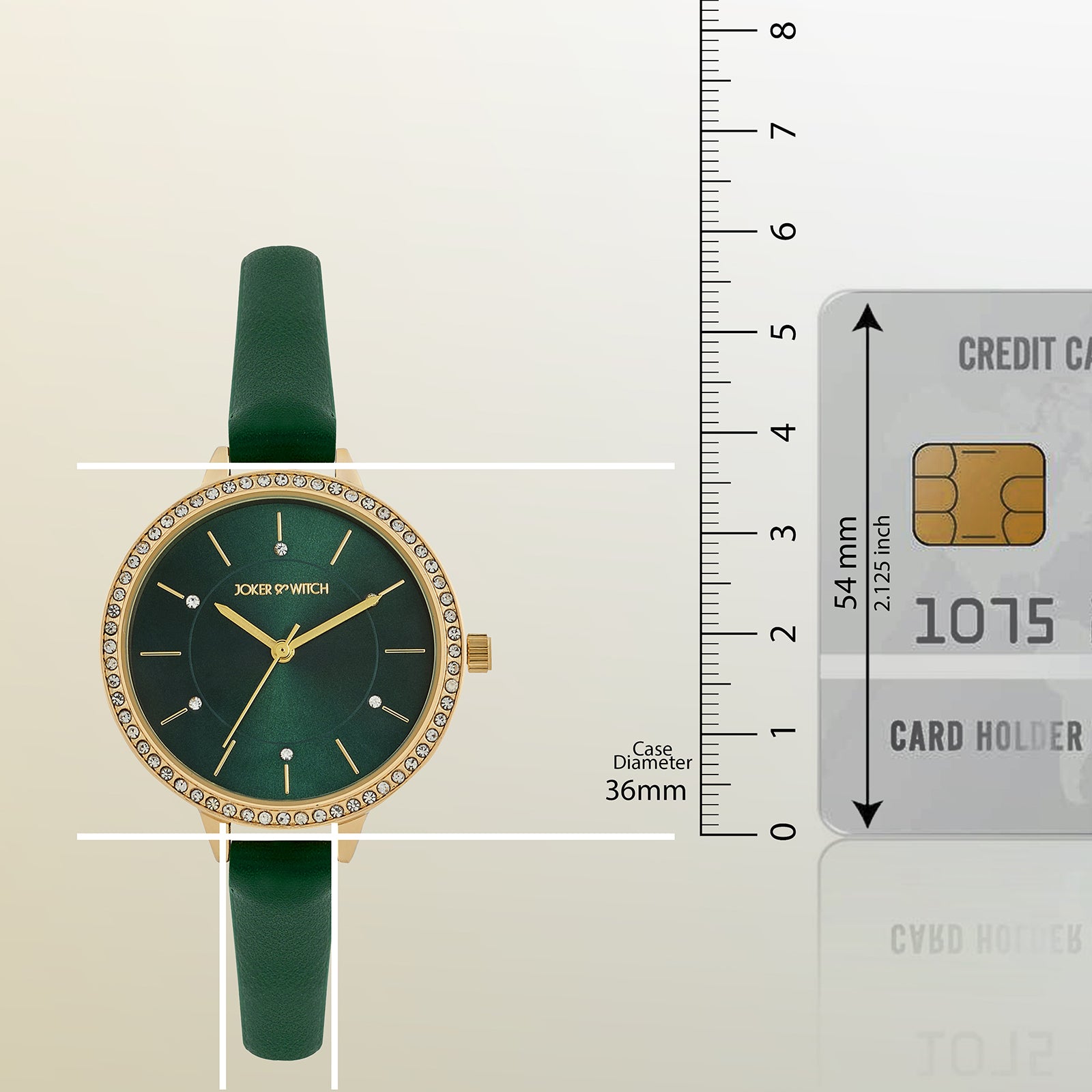 This chic timepiece features an ultra-thin case with rhinestones embellished on the bezzle of the watch, a sleek emerald PU strap, and thin markers that add a unique touch to the overall look. Be it your denim or summer florals, this timepiece is sure to fit every wrist and style!