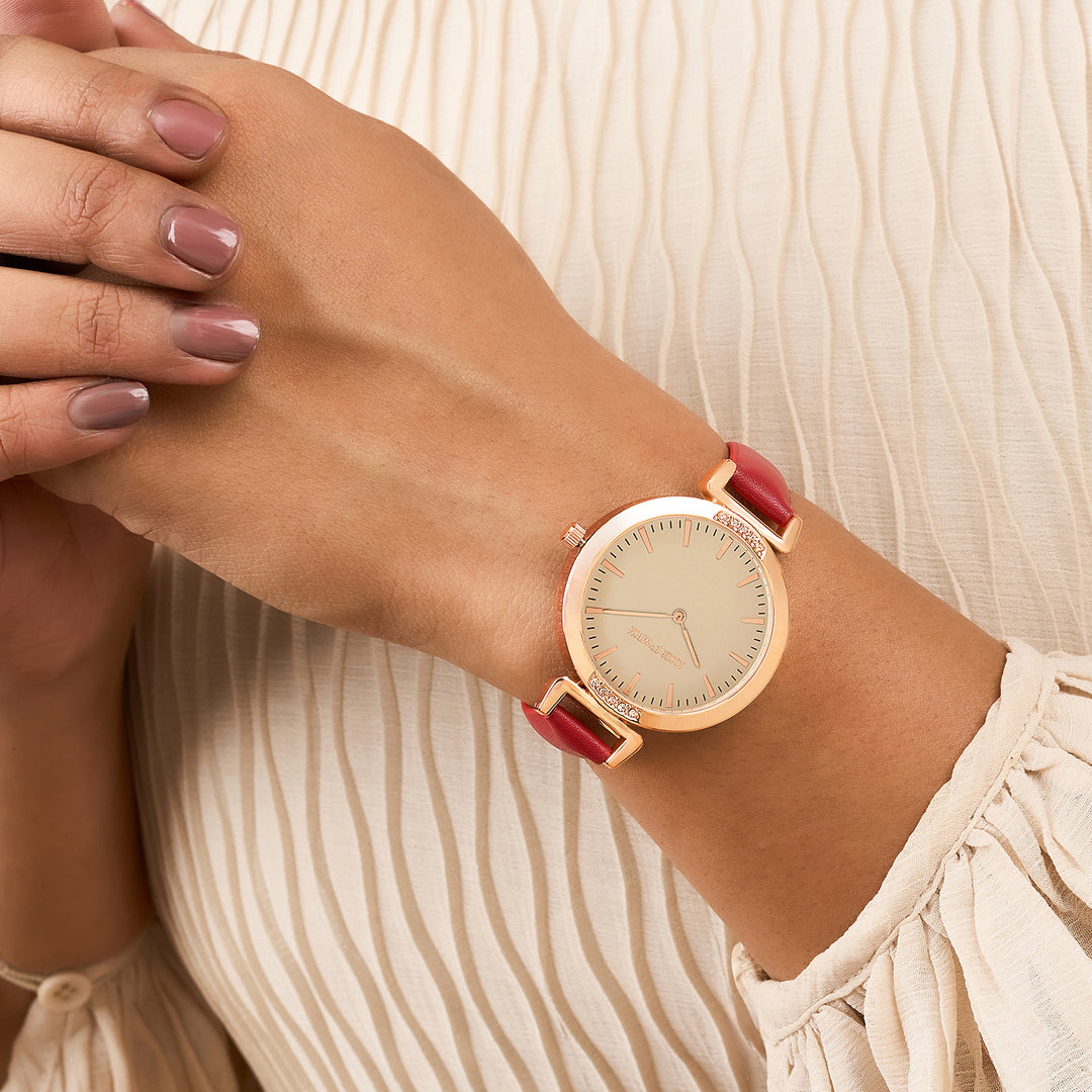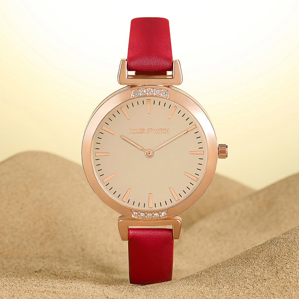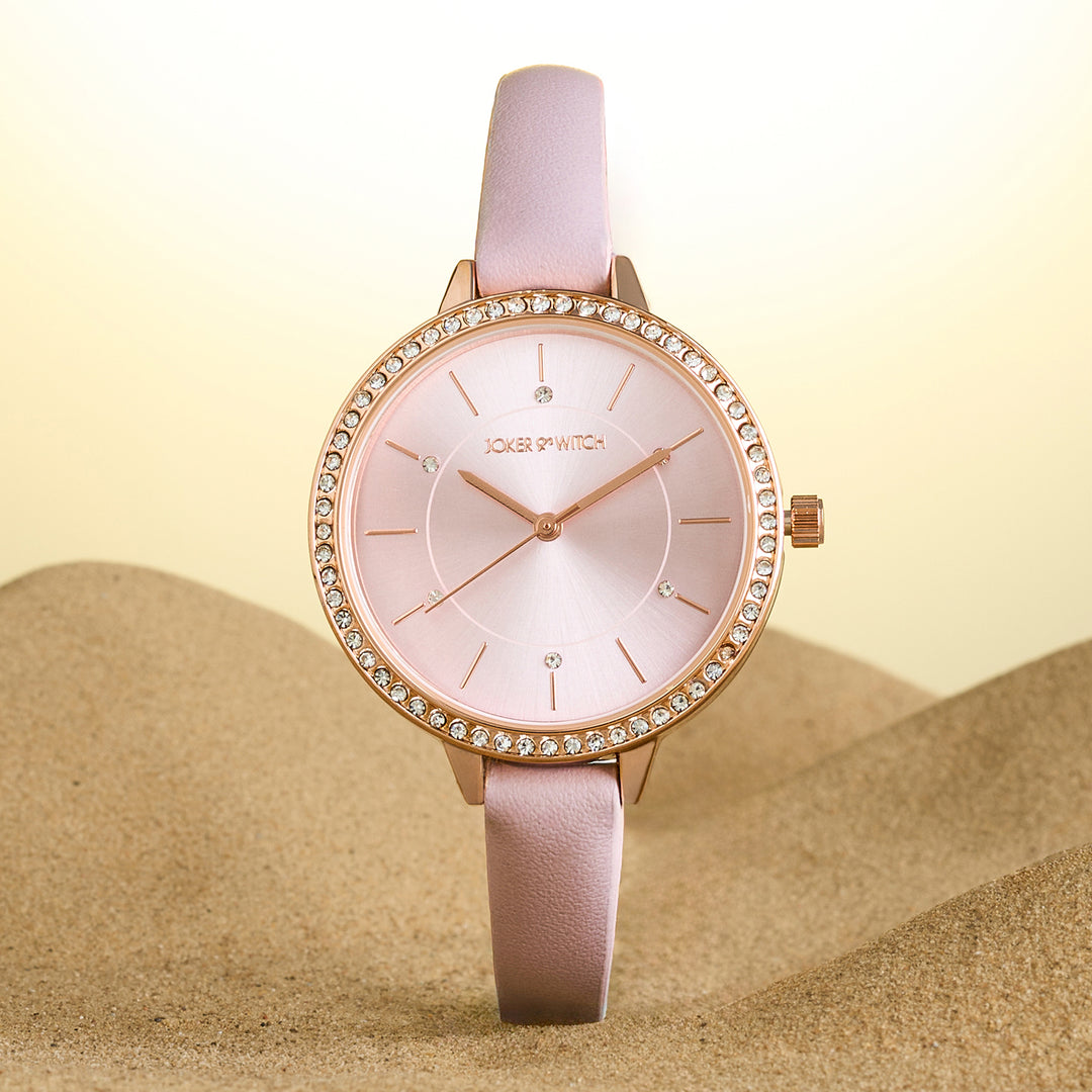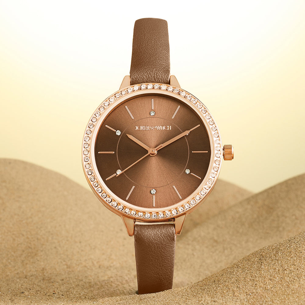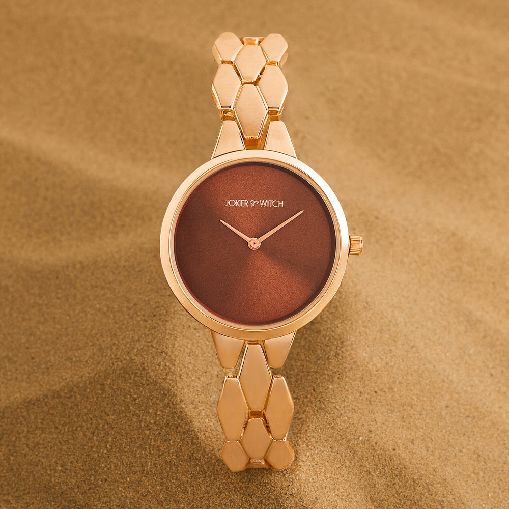 Halo Rose Gold Large Rhinestone Dial Linked Chain Strap Women's Watch