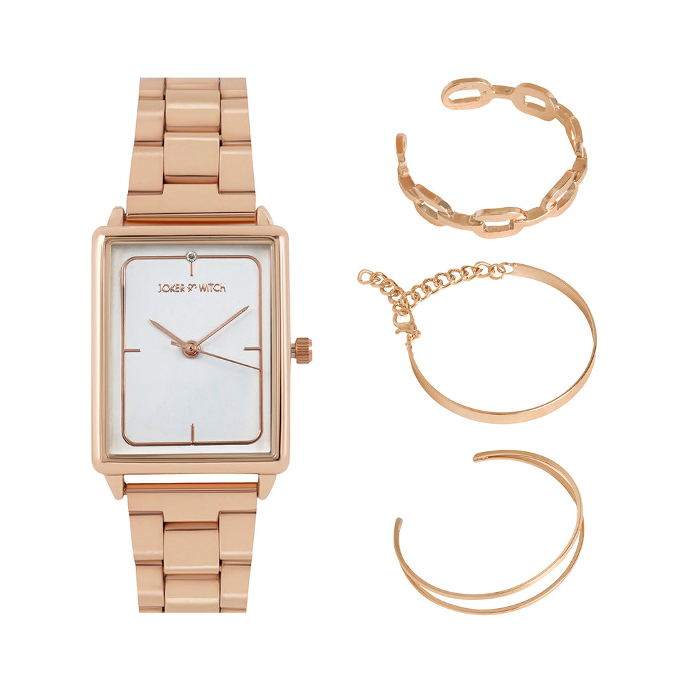 Sleek Black Large Dial Rose Gold Linked Chain Strap Women's Watch