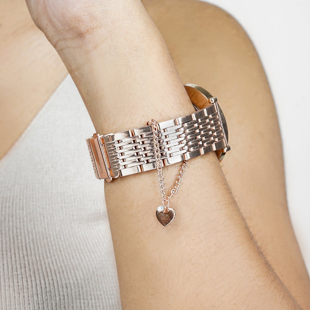 Suzanne White Large Rhinestone Dial Taupe Ceramic Linked Chain Strap Women's Watch