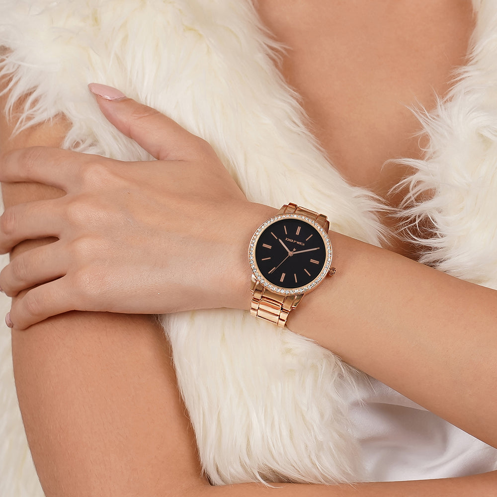 Halo Rose Gold Large Rhinestone Dial Linked Chain Strap Women's Watch