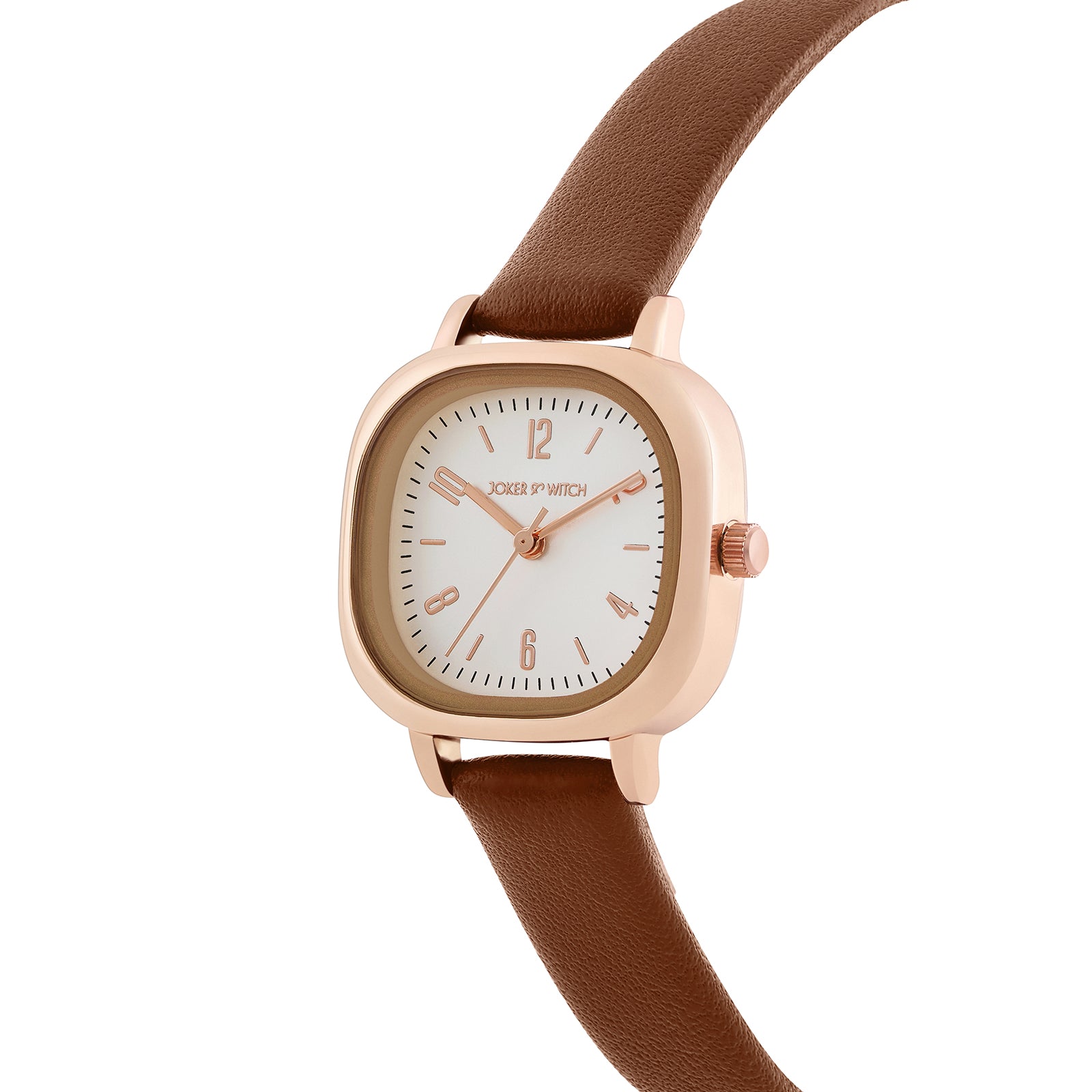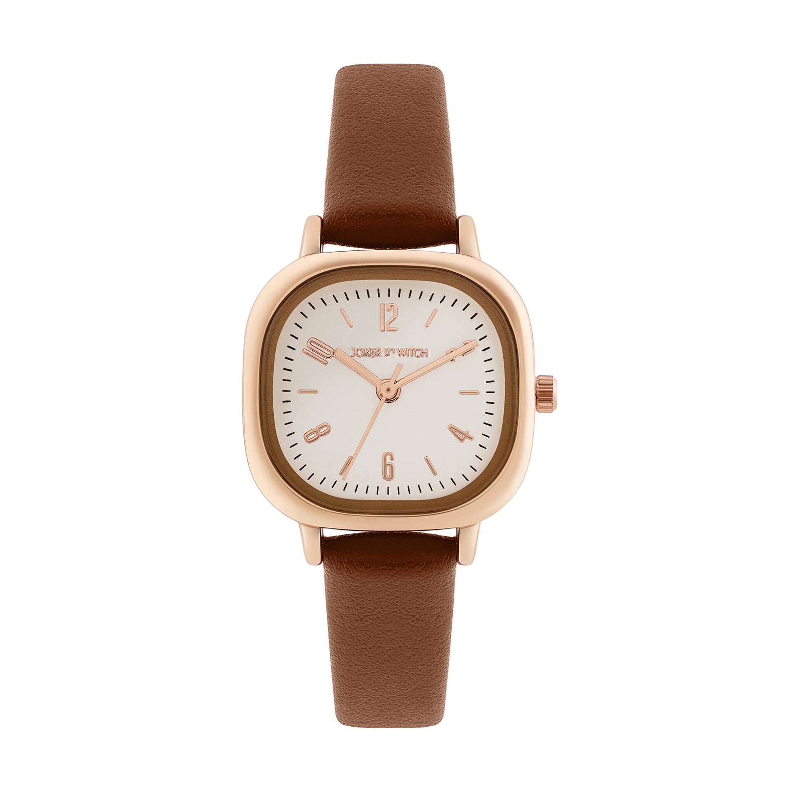 Cinque Cream Mini Square Dial Brown PU Strap Women&
