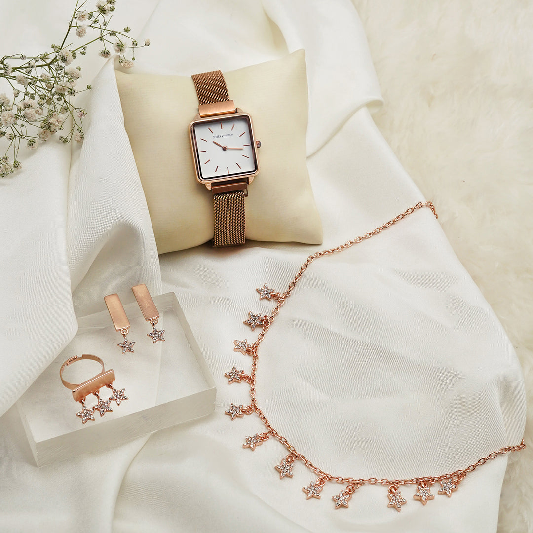 Arina Rose Gold Mini Dial Linked Chain Strap Women's Watch