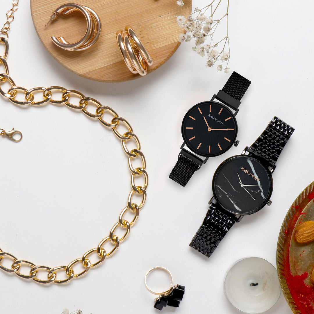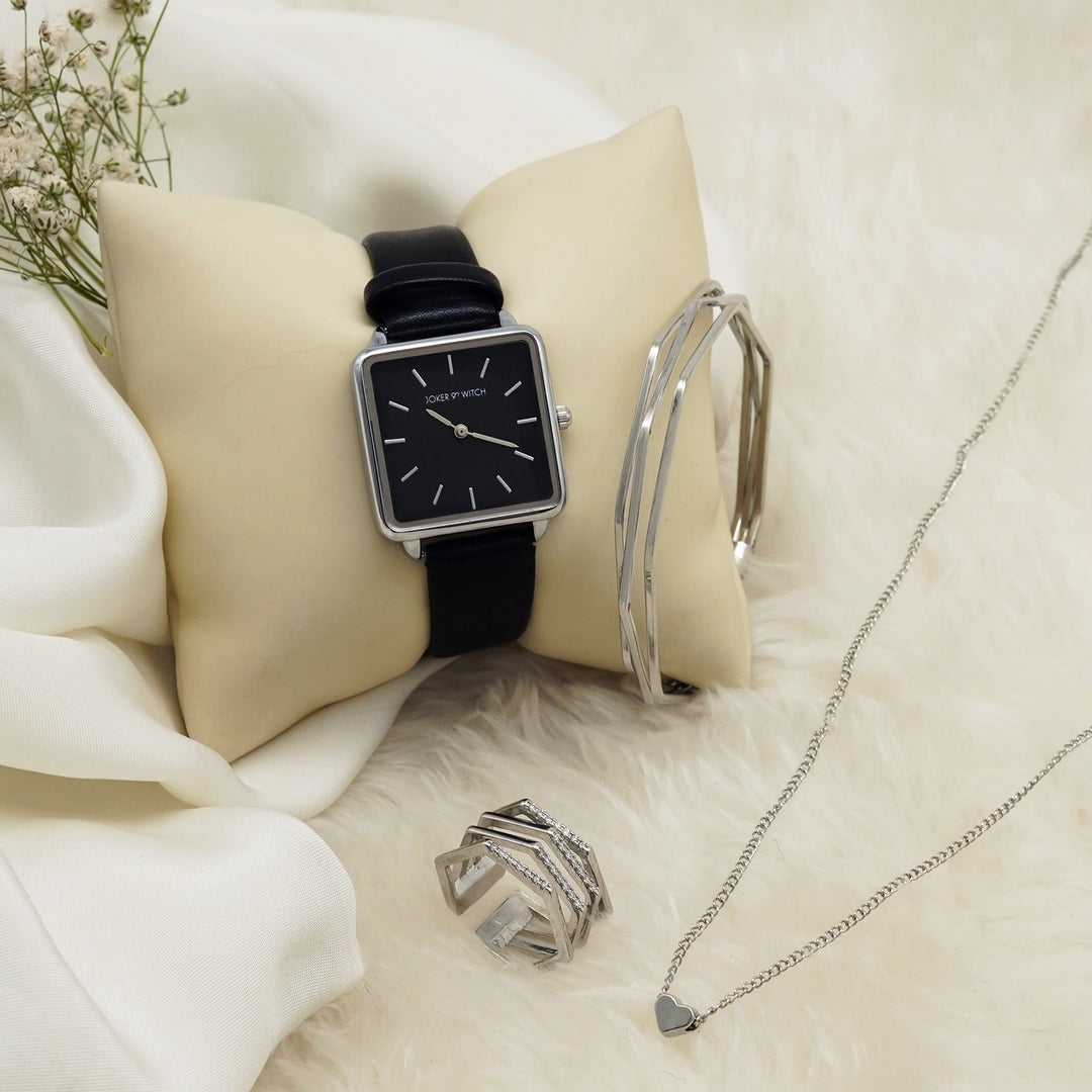 Athens Black Medium Dial Silver Bracelet Strap Women's Watch
