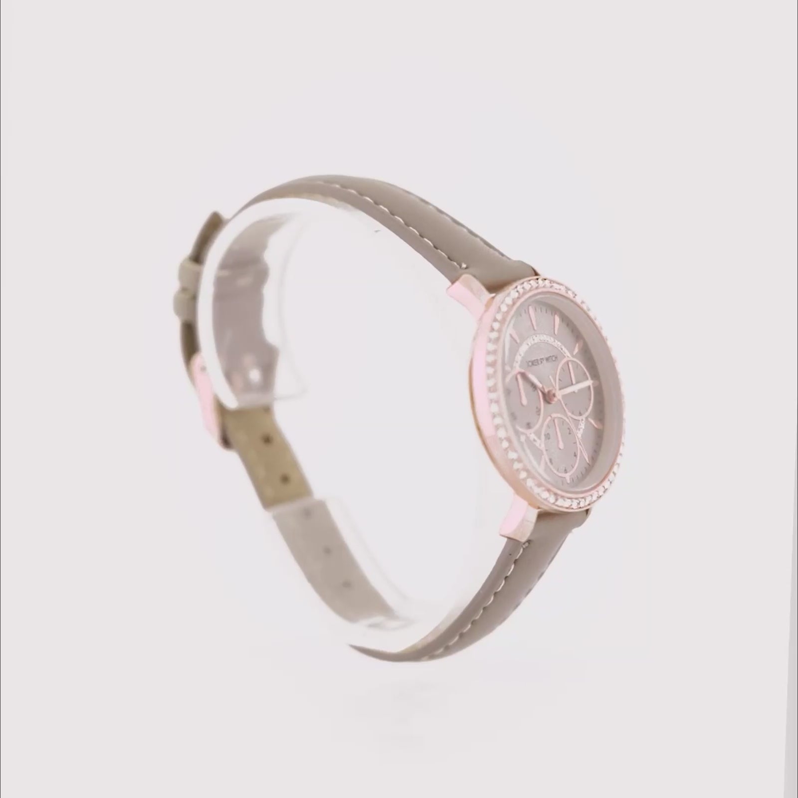Giselle Taupe Medium Rhinestone Dial PU Strap Women's Watch