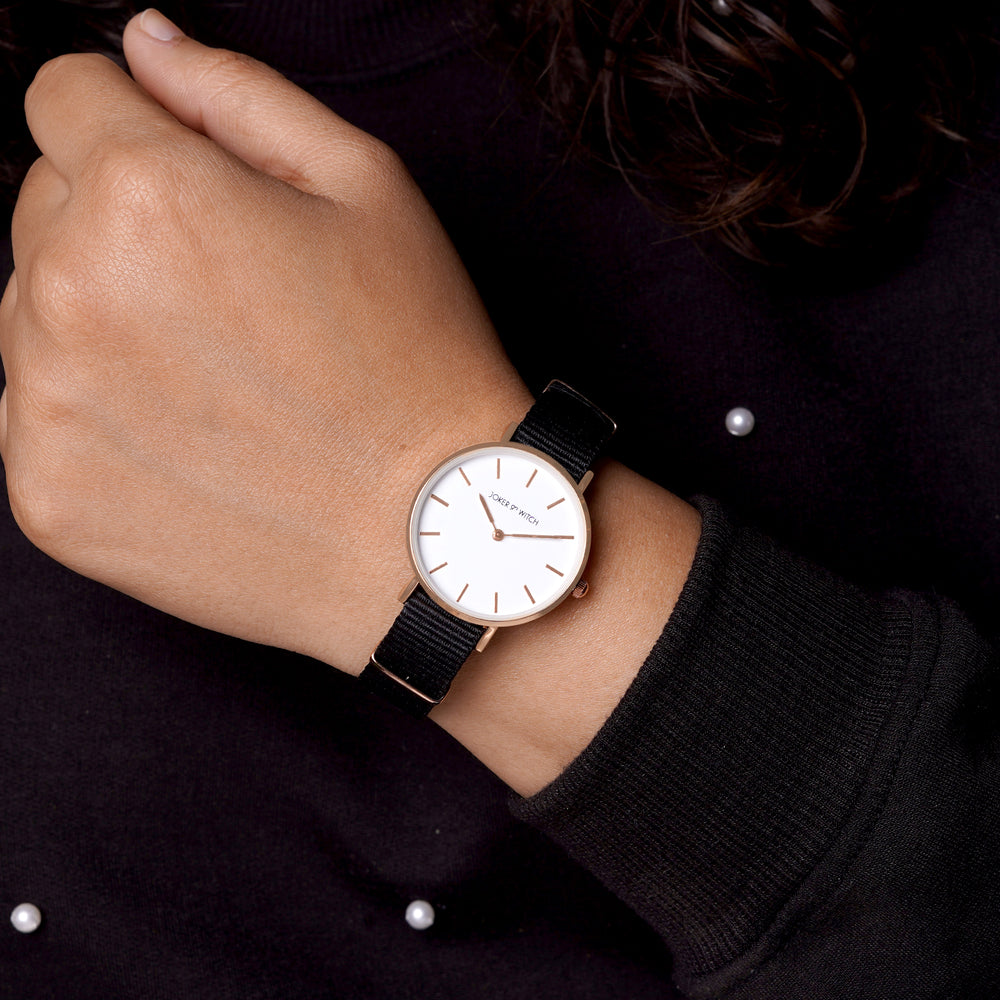 Futuristic Rose Gold White Large Dial White PU Strap Women's Watch