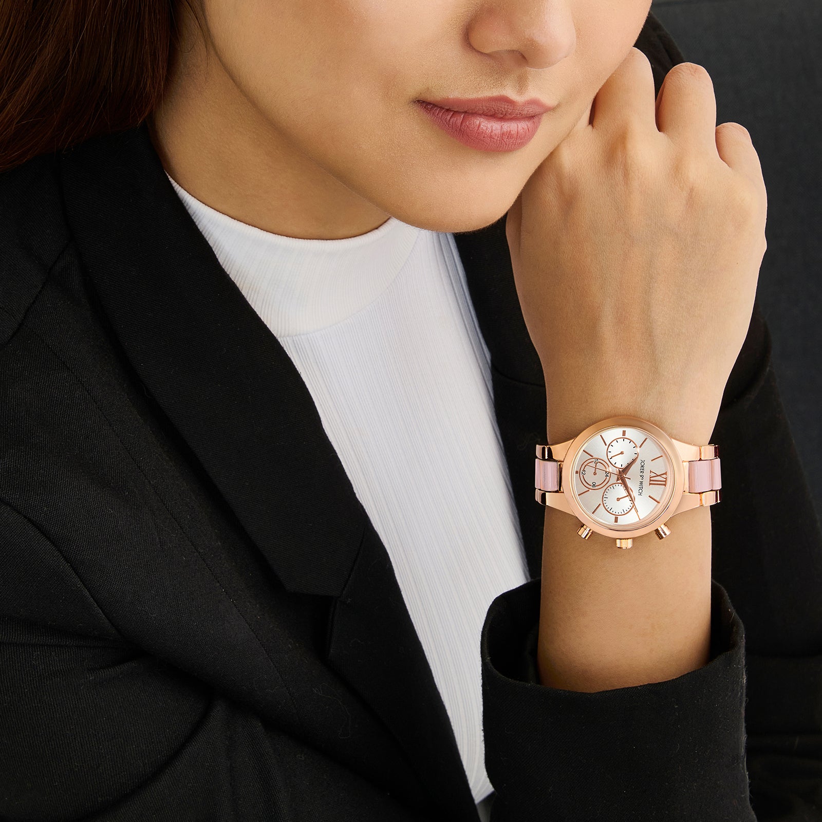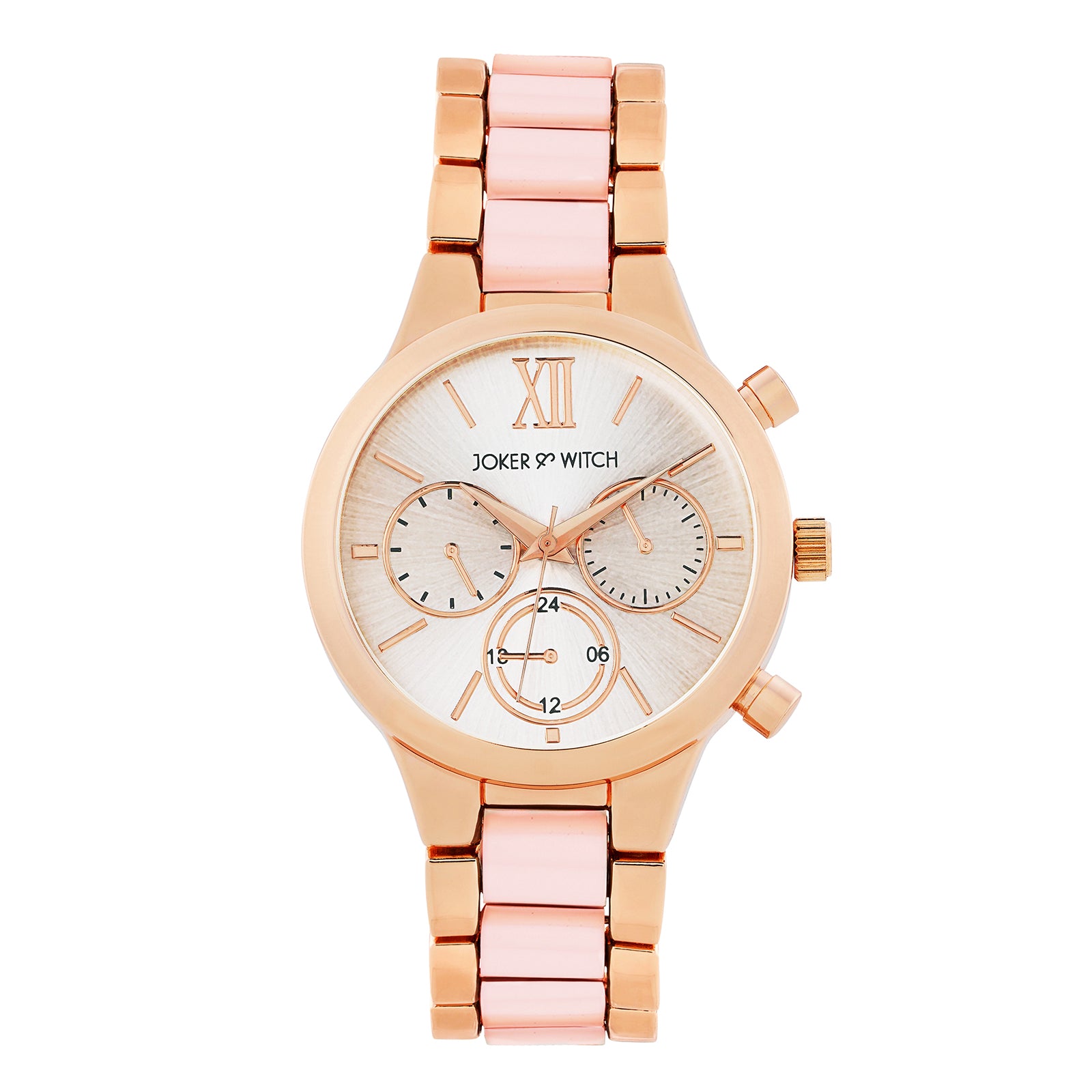 Sleek White Large Dial Rose Gold Linked Chain Strap Women's Watch