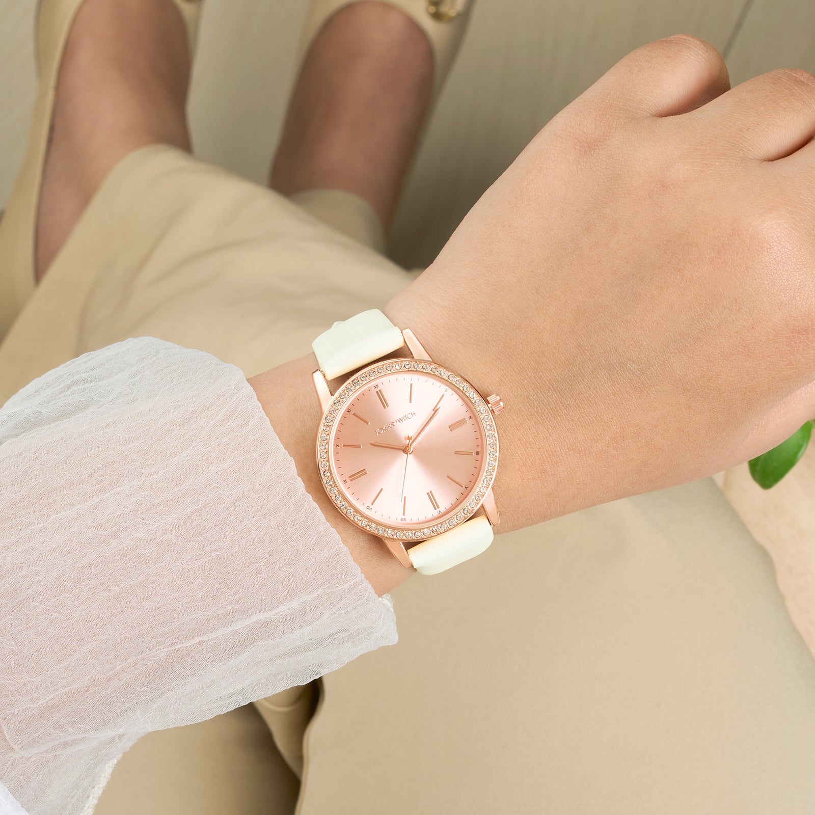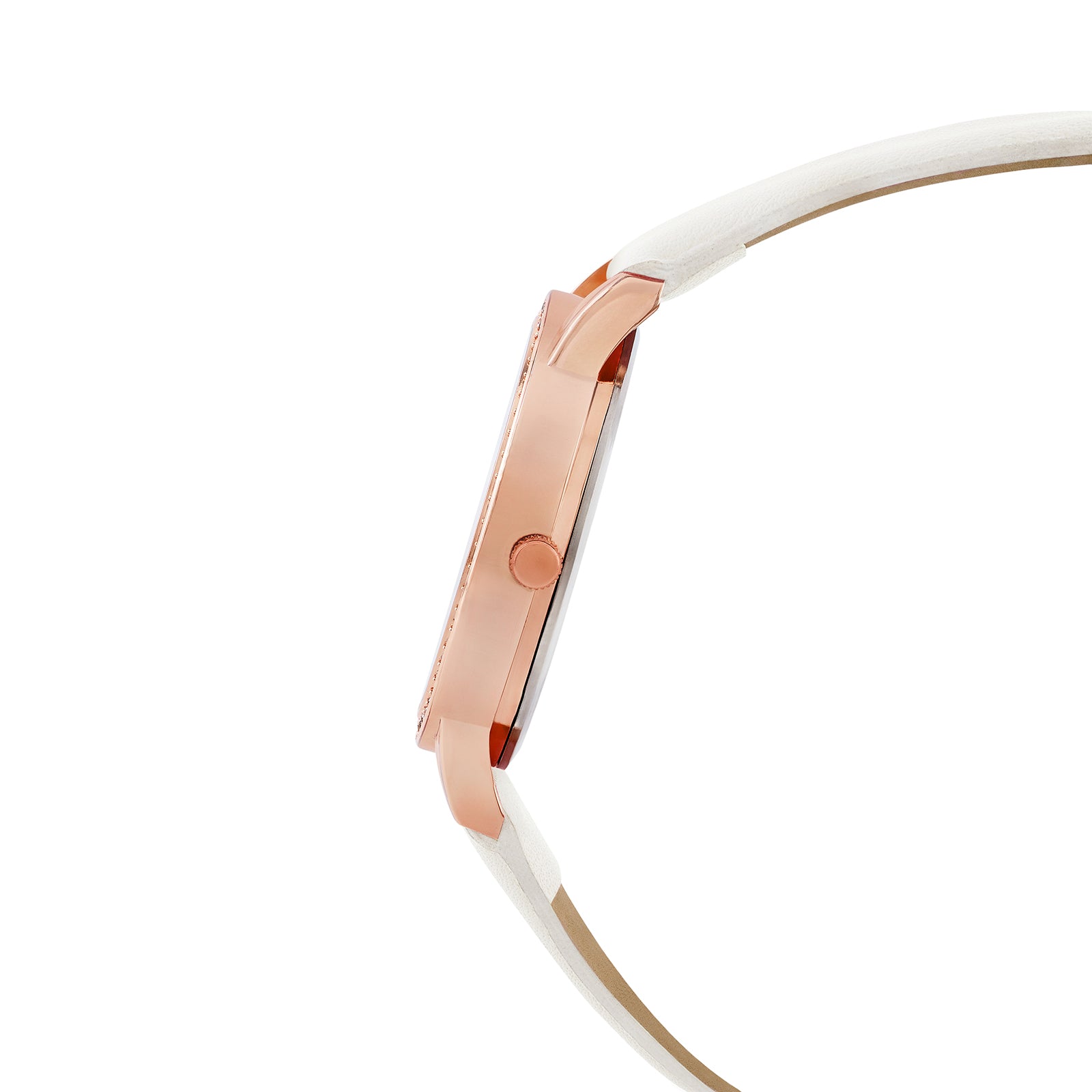 Sleek White Large Dial Rose Gold Linked Chain Strap Women's Watch