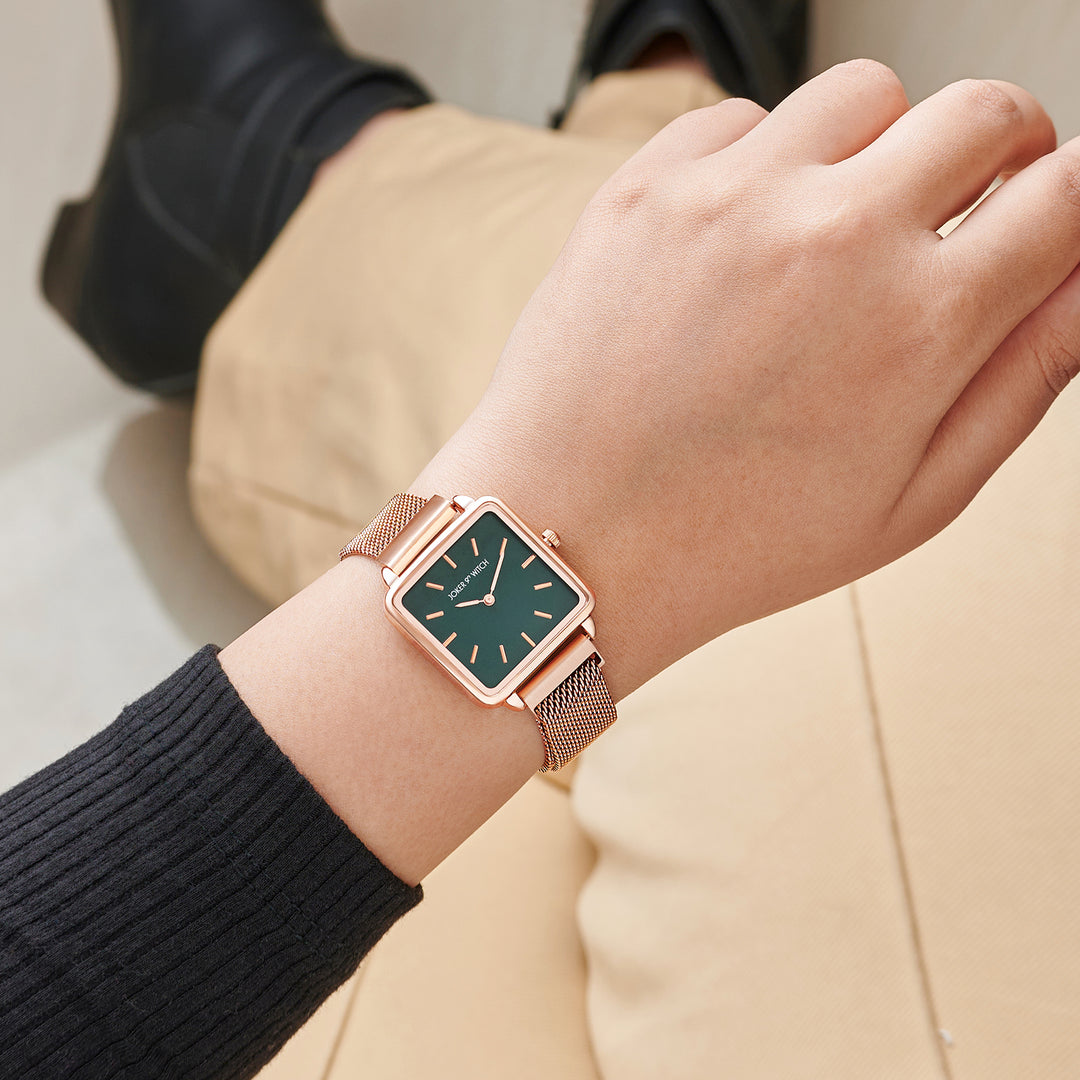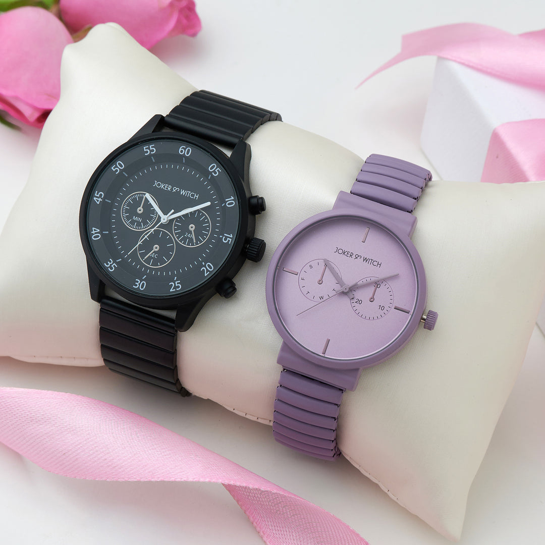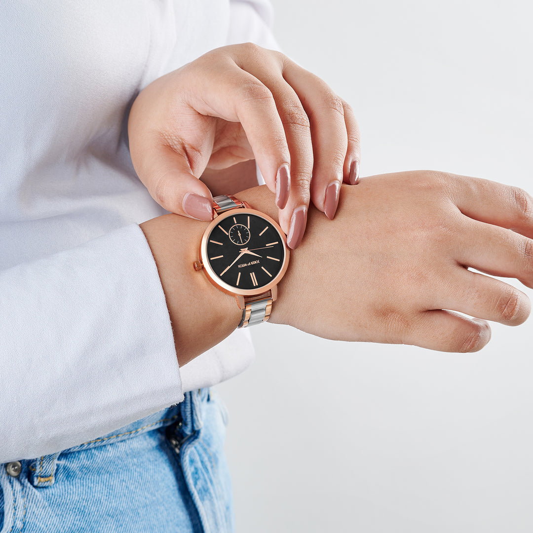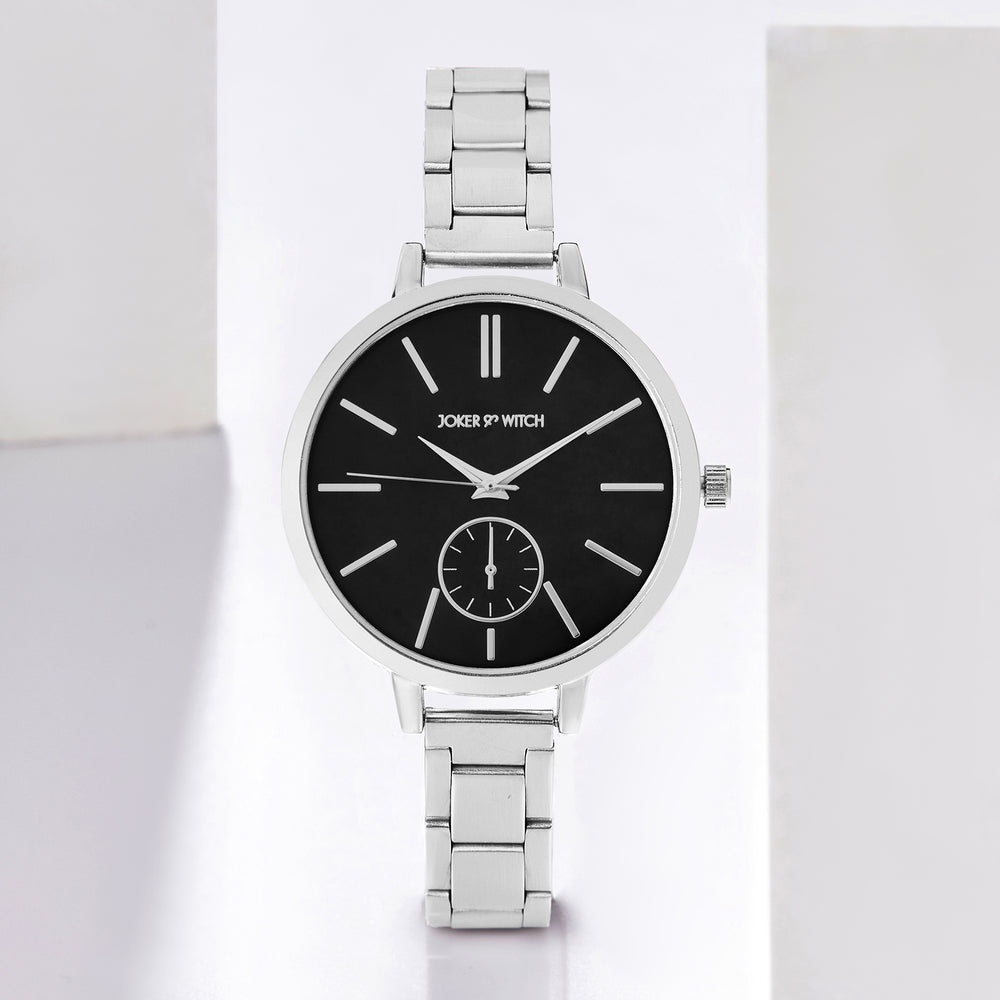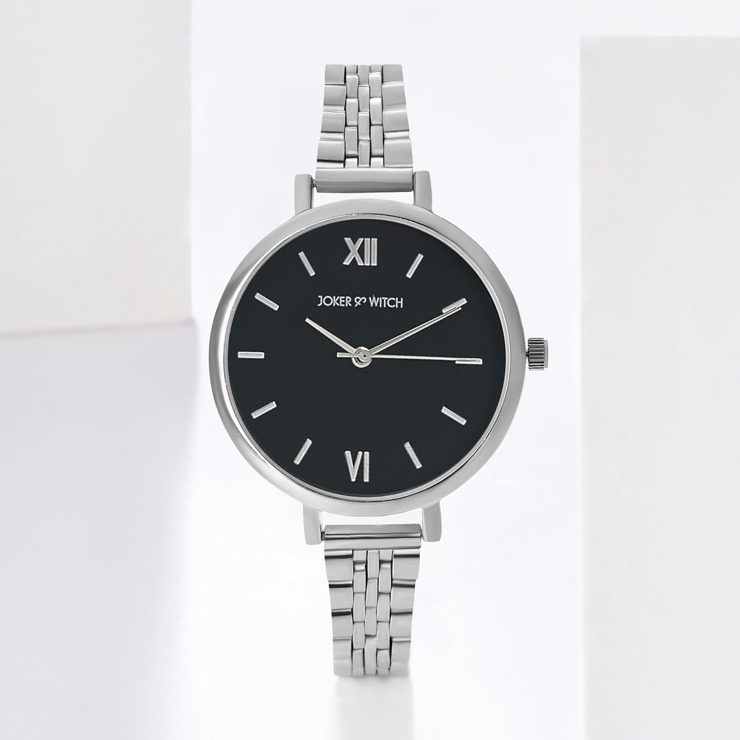 Ella Black Medium Dial Silver Linked Chain Strap Women's Watch