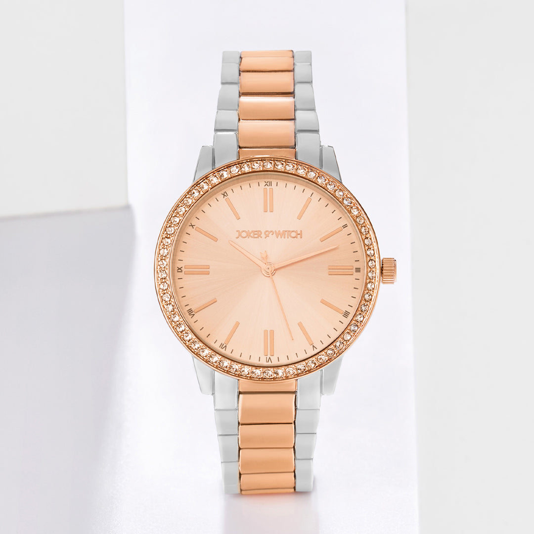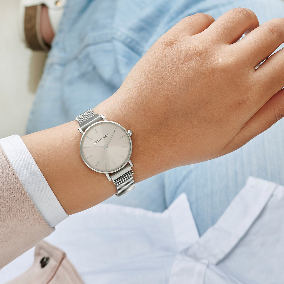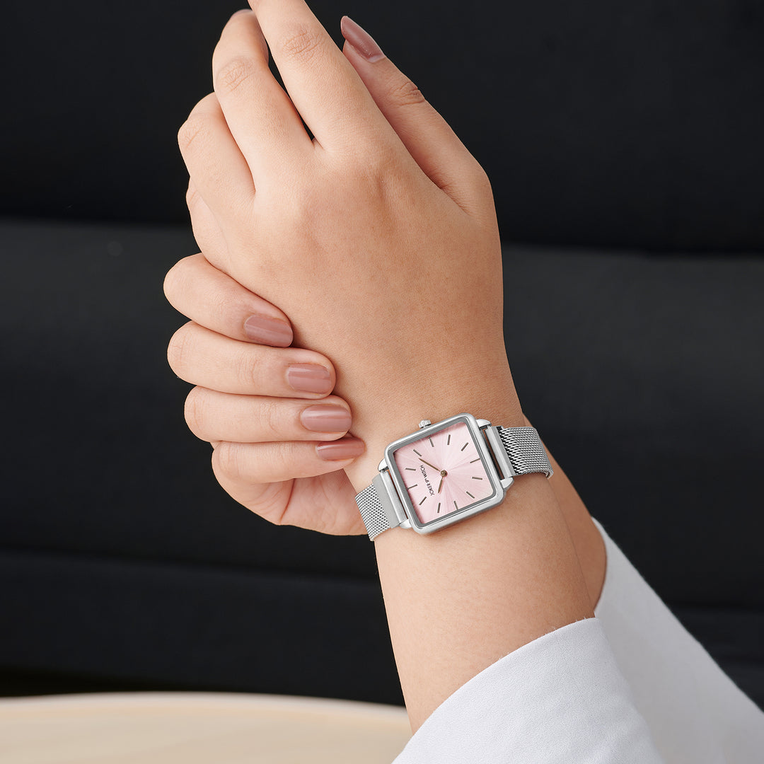 Clara Silver Large Dial Pink Linked Chain Strap Women's Watch