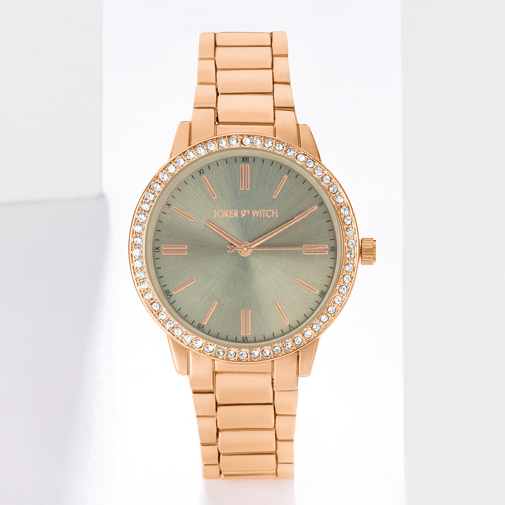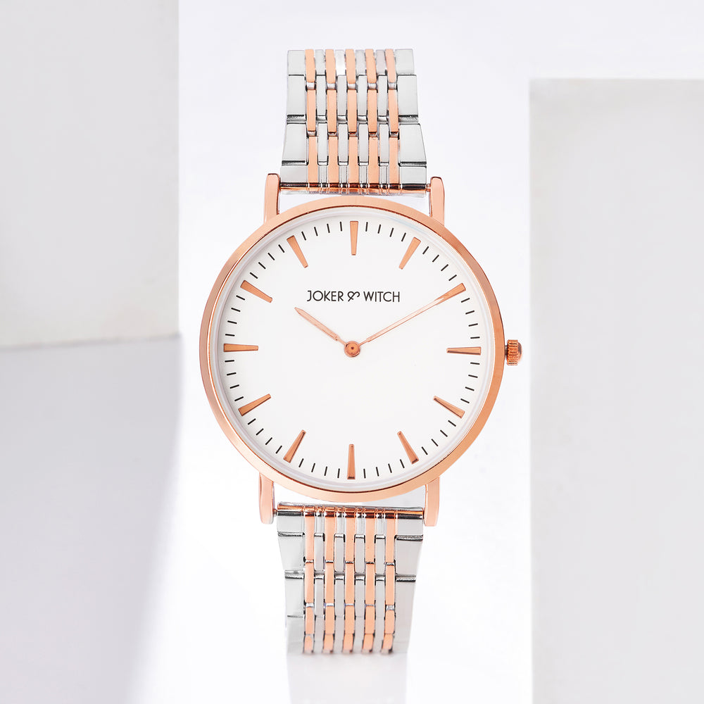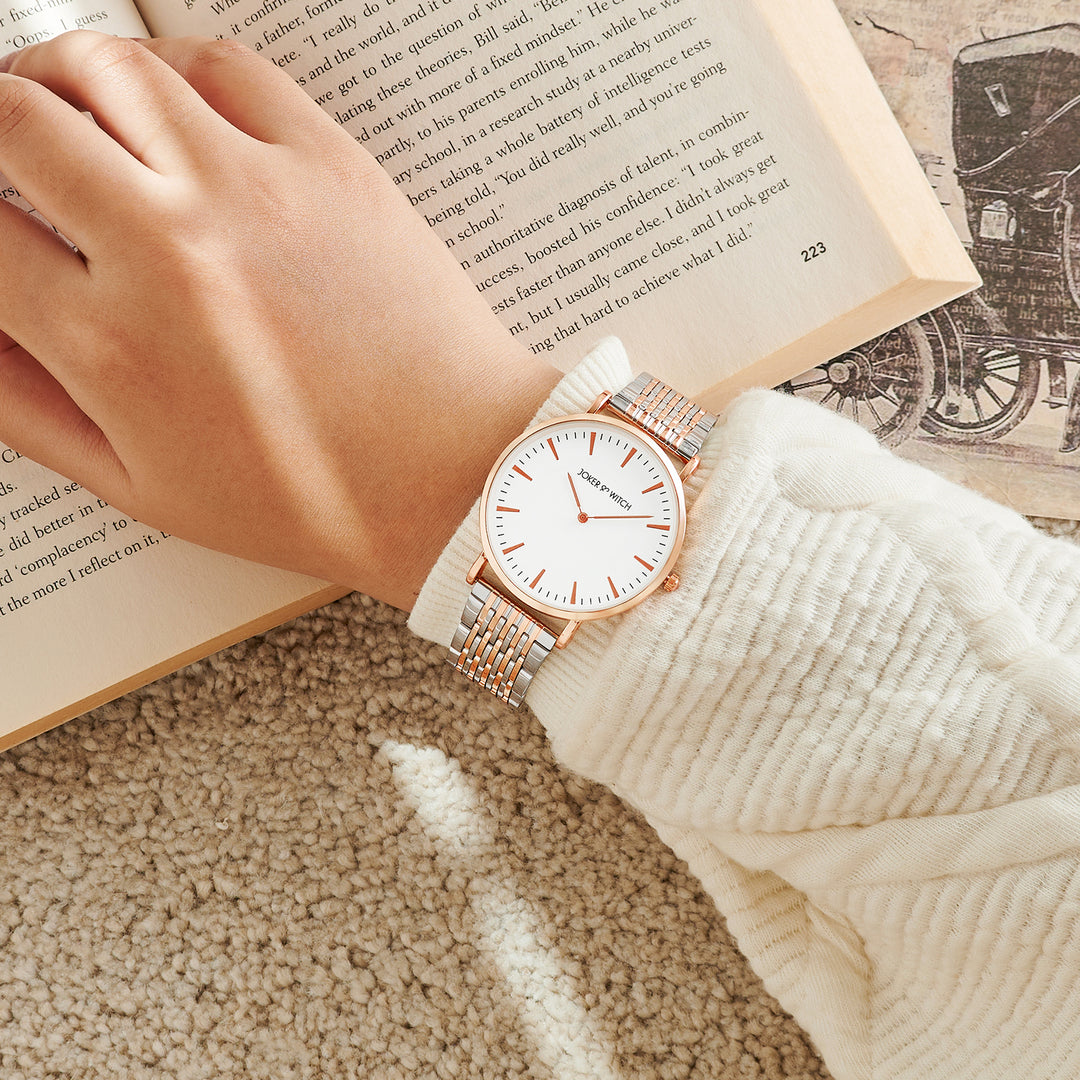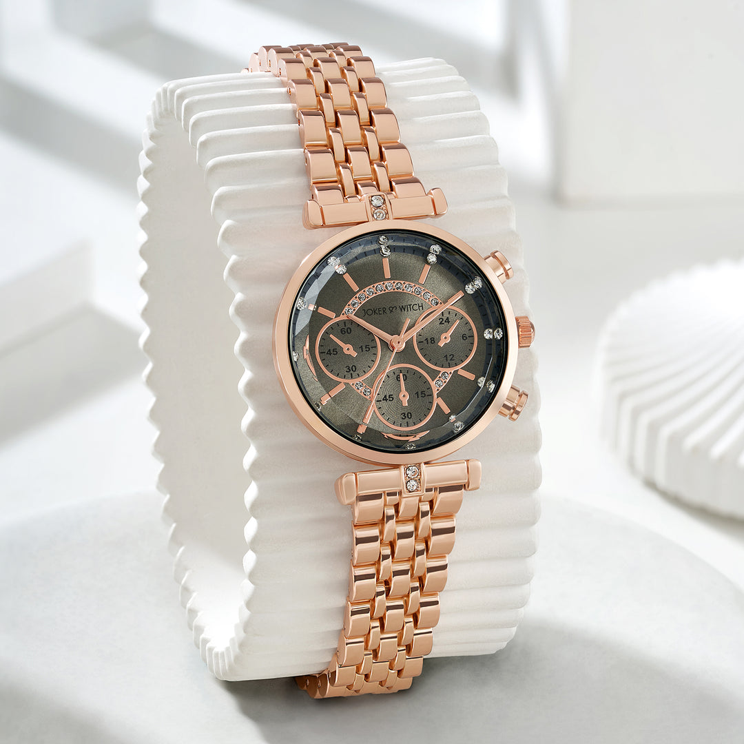 Clara Silver Large Dial Pink Linked Chain Strap Women's Watch