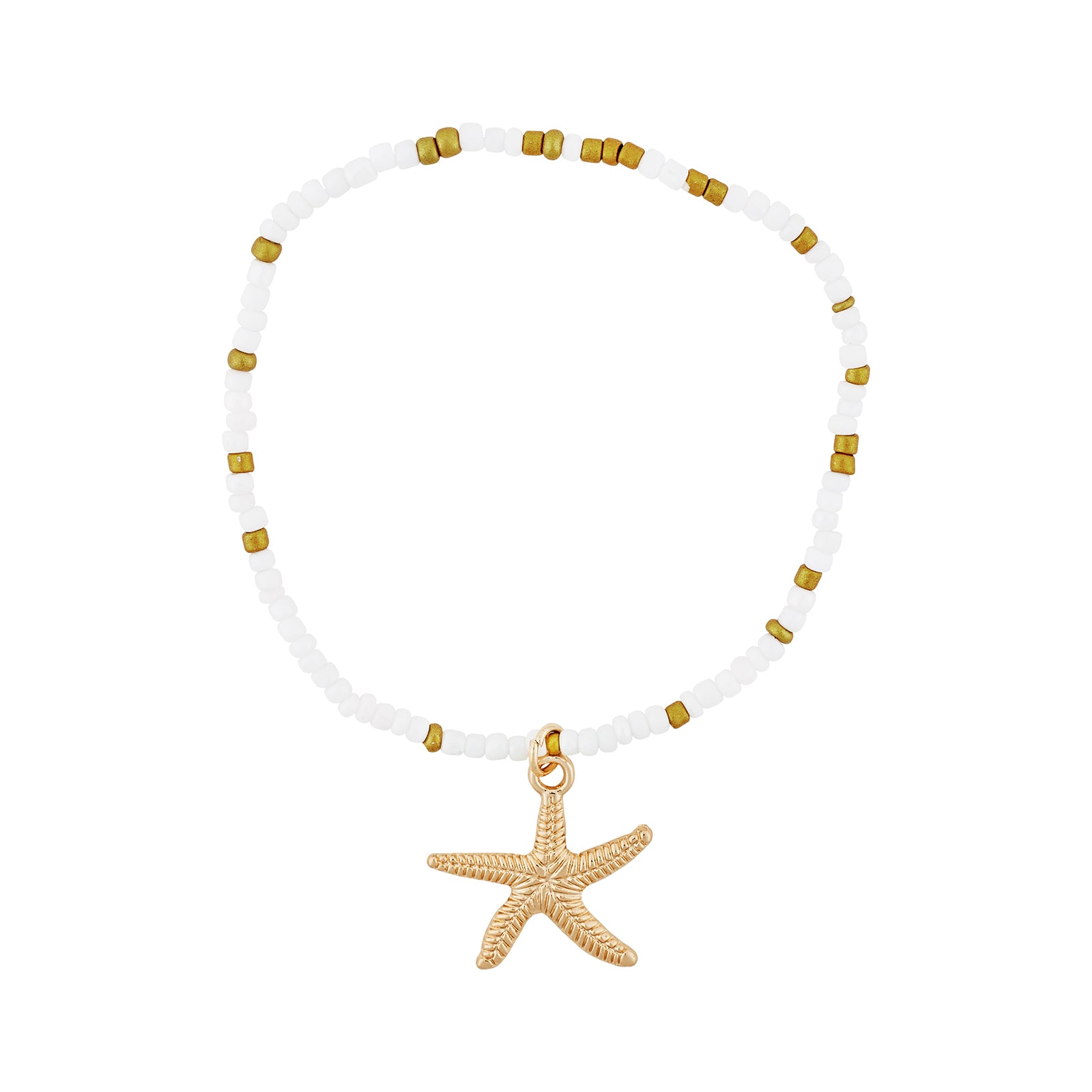This layered Seashells bracelet beautifully combines gold-toned accents with soft white beads and shell-inspired details. Perfect for elevating casual outfits or complementing resort wear.