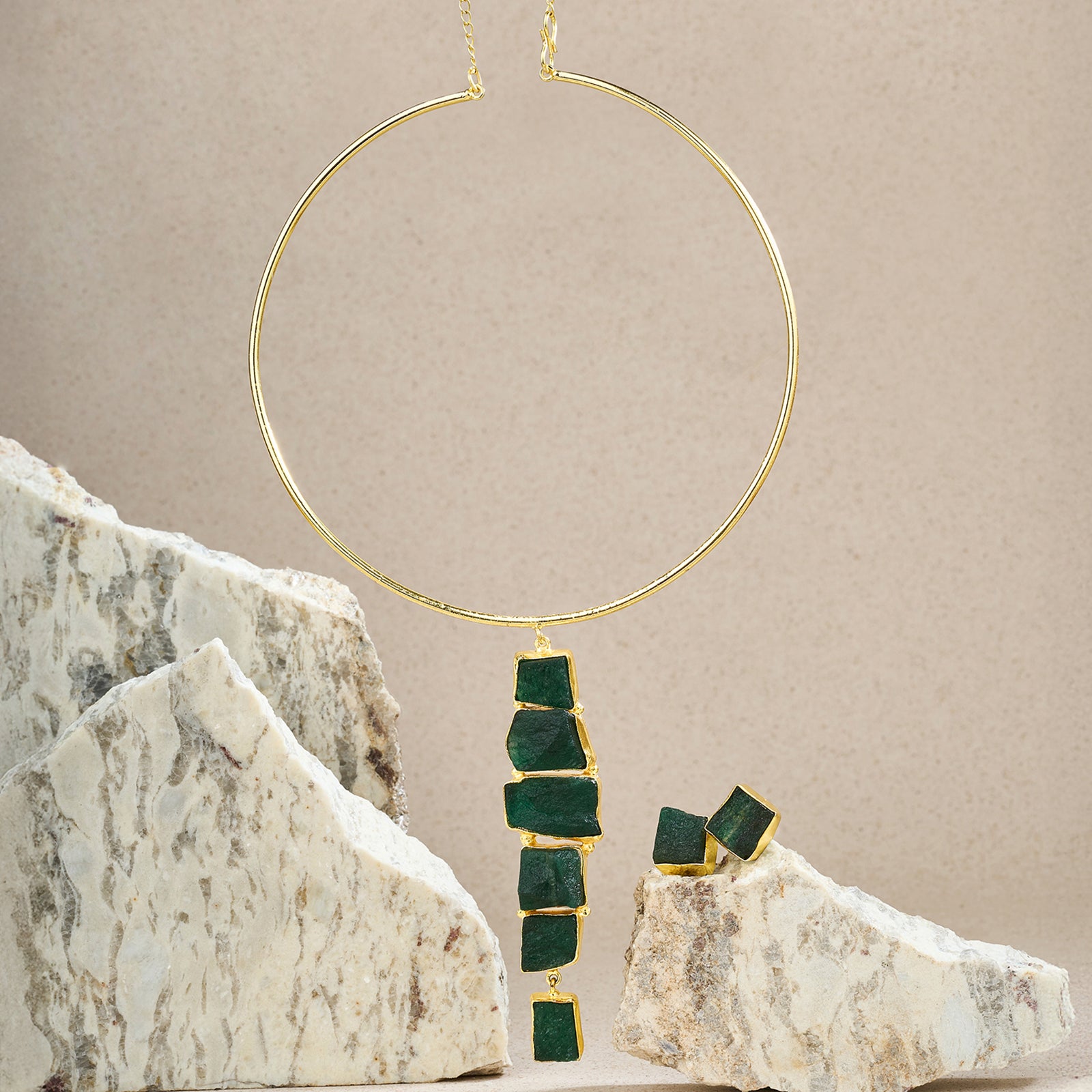 Soléa Dark Green Natural Stone Hasli Necklace Set
