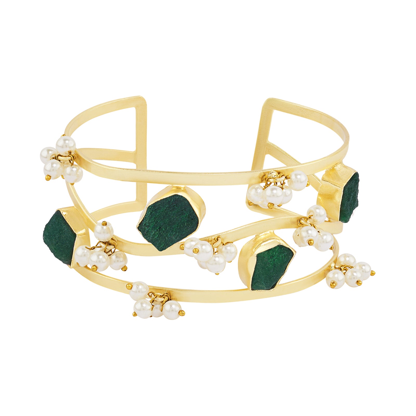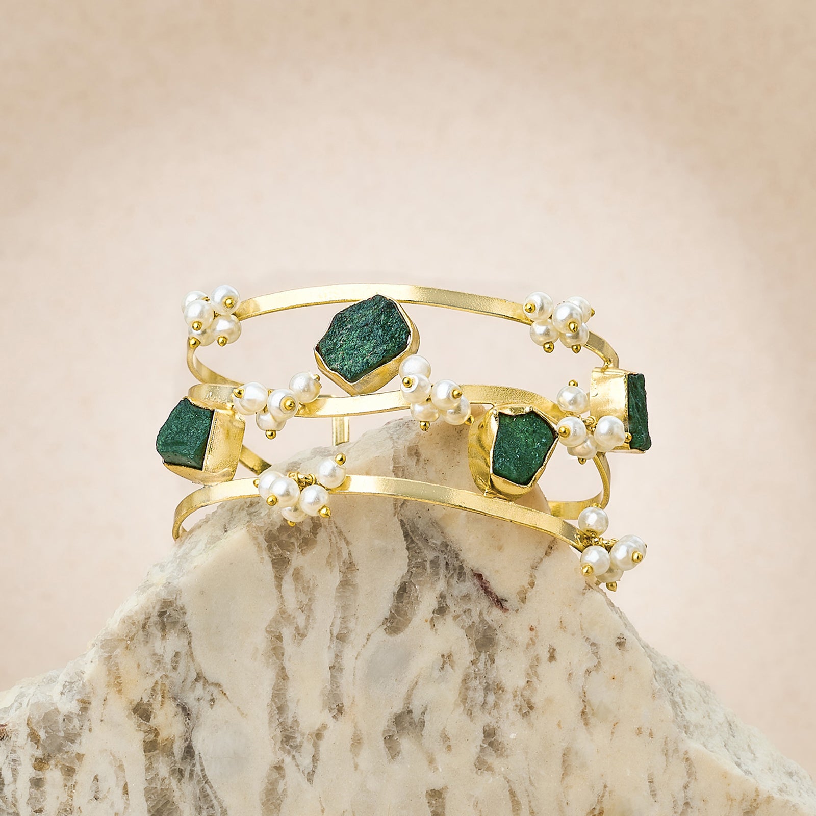 Soléa Dark Green Natural Stone Pearl Cuff Bracelet