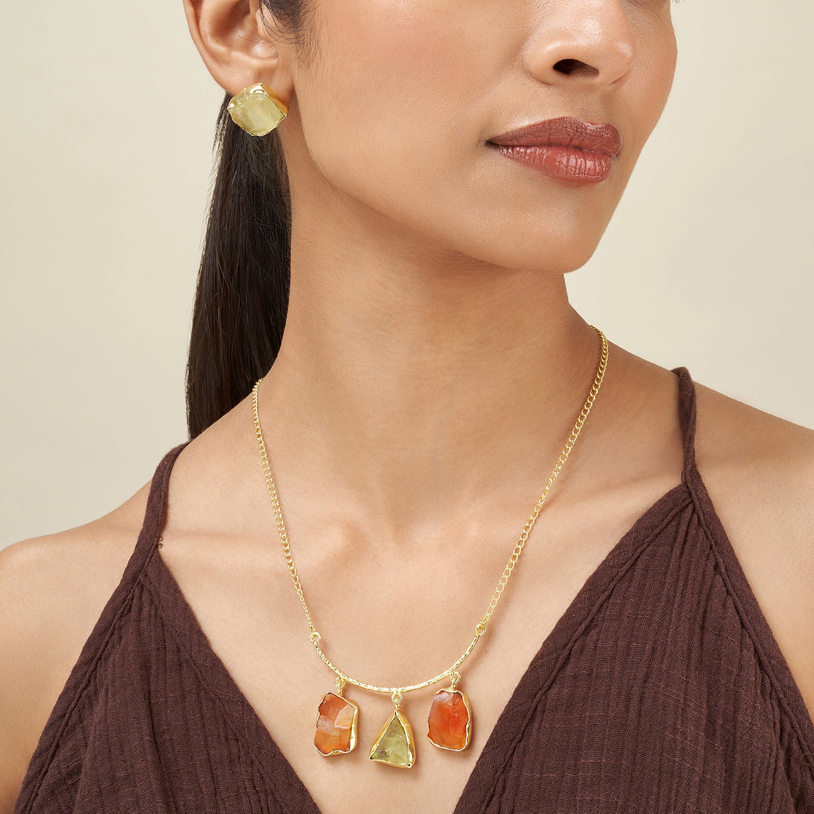 Soléa Orange & Yellow Trio Natural Necklace Set