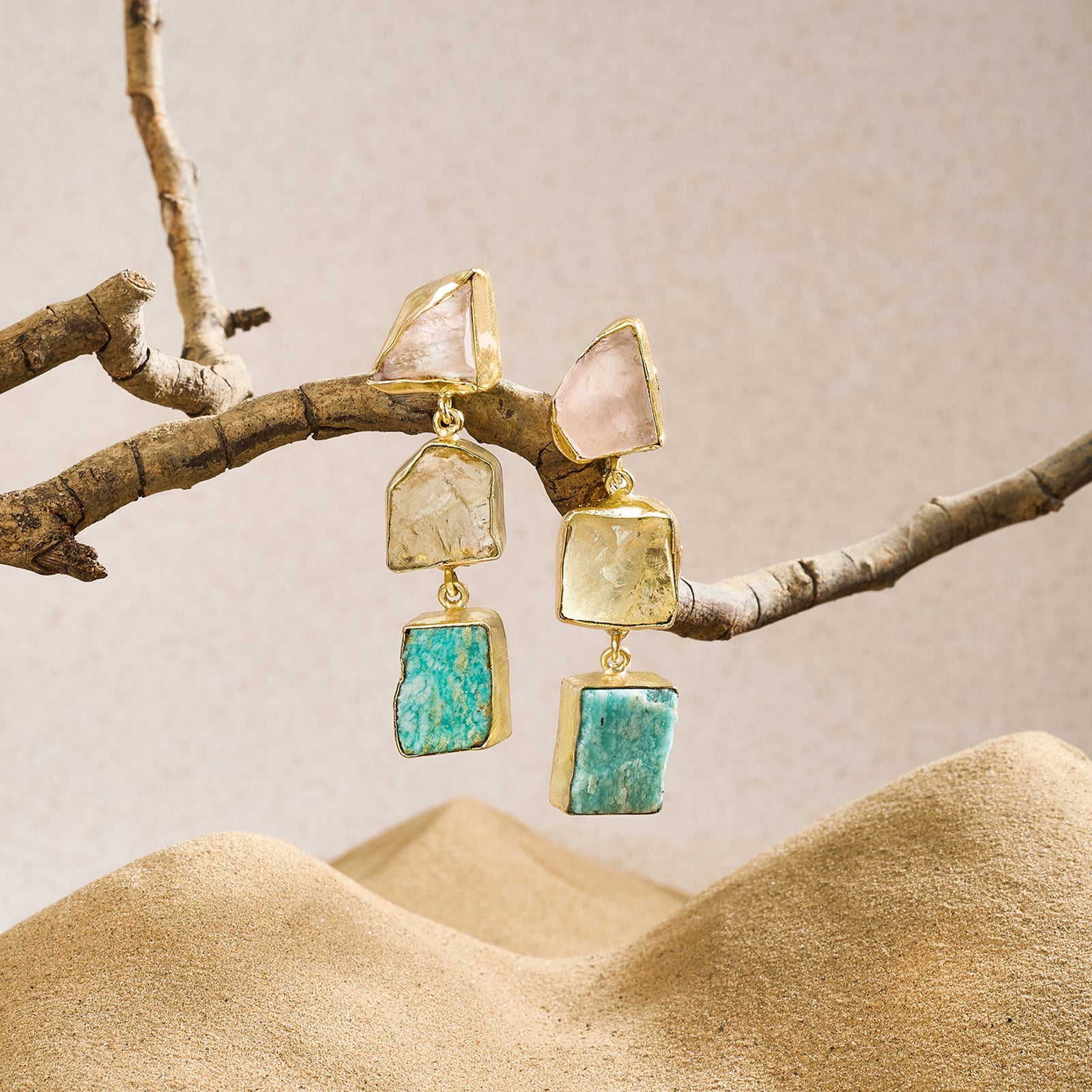 Dainty earrings made from natural stones with a raw edge. The perfect go-to when you want your look to stay low-key but special.