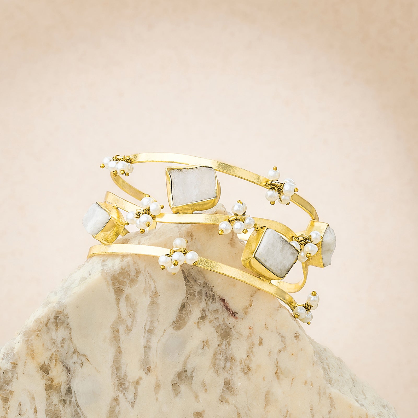 A bracelet that blends soft colors and raw edges for a laid-back yet elegant statement, that can be paired with a kurti or a flowy dress.